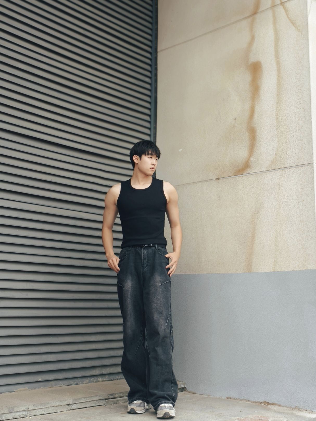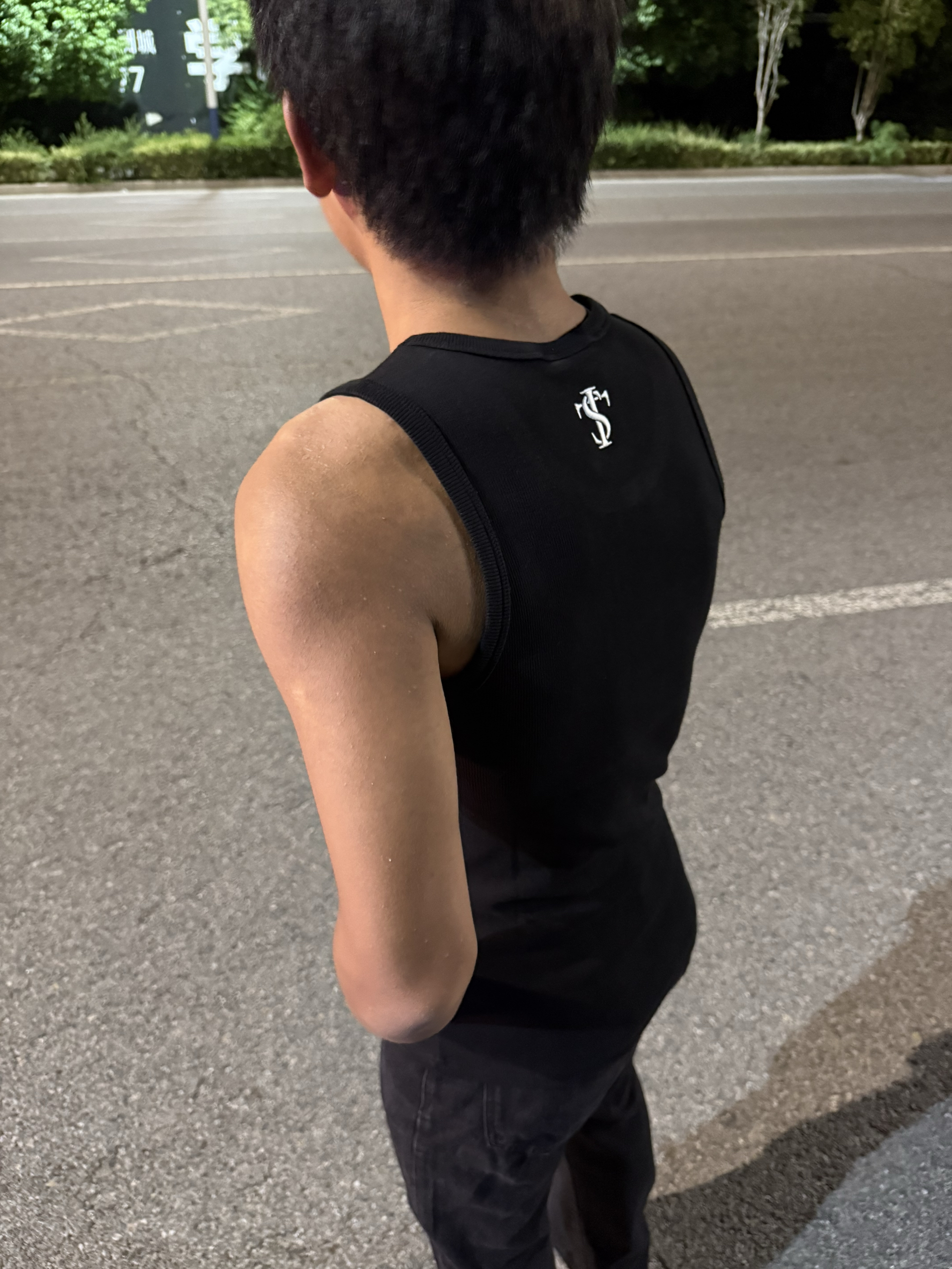 ASEN 同款基无袖背心 背心就是男生夏季的必备单品 黑色无袖背心 自带显瘦buff 把手臂线条衬得超好看, 内搭潮美式嘻哈瘦子穿了也很帅! 以黑色健身背心为内核,外搭牛仔裤 整体一身清爽美式感