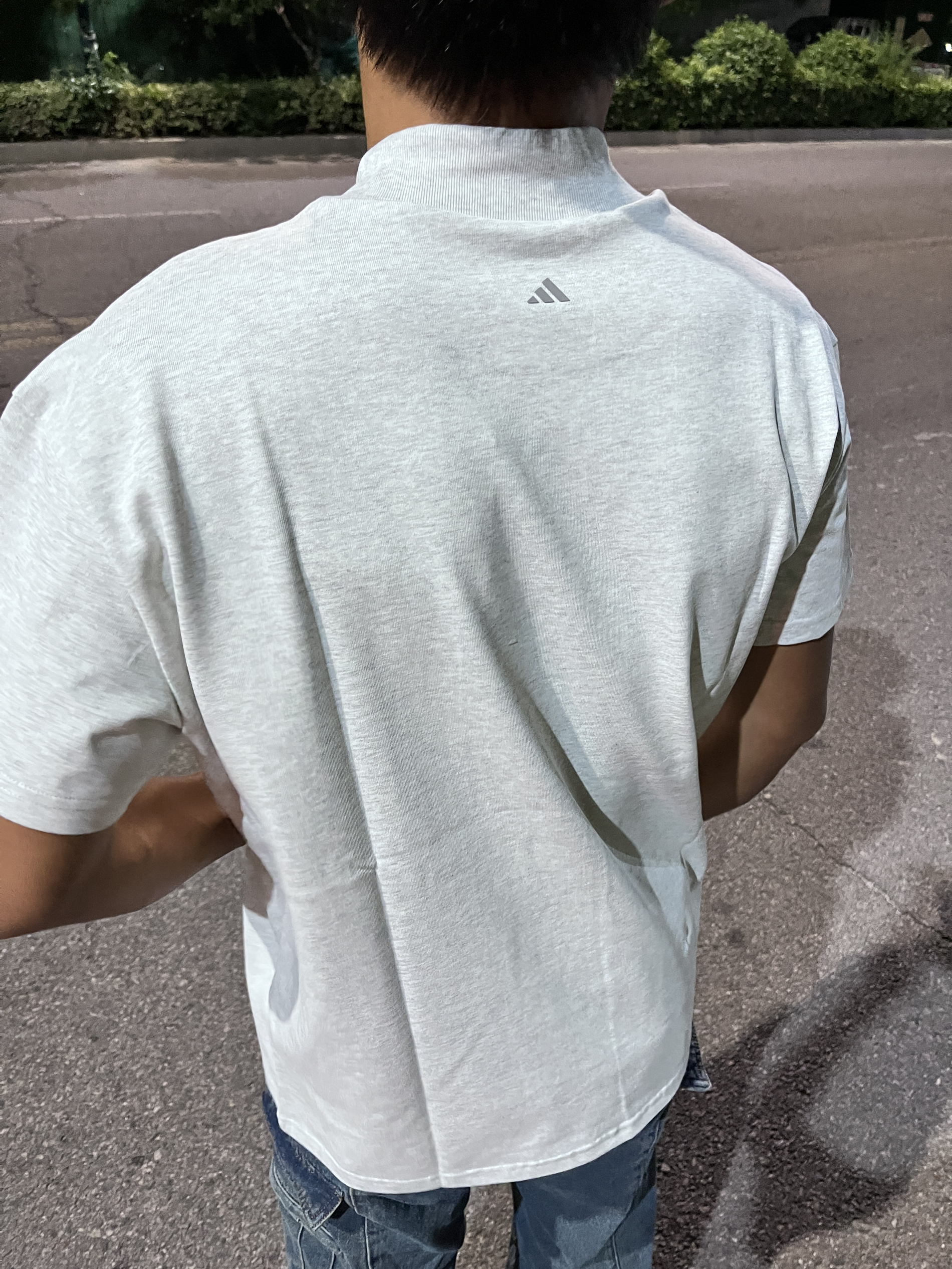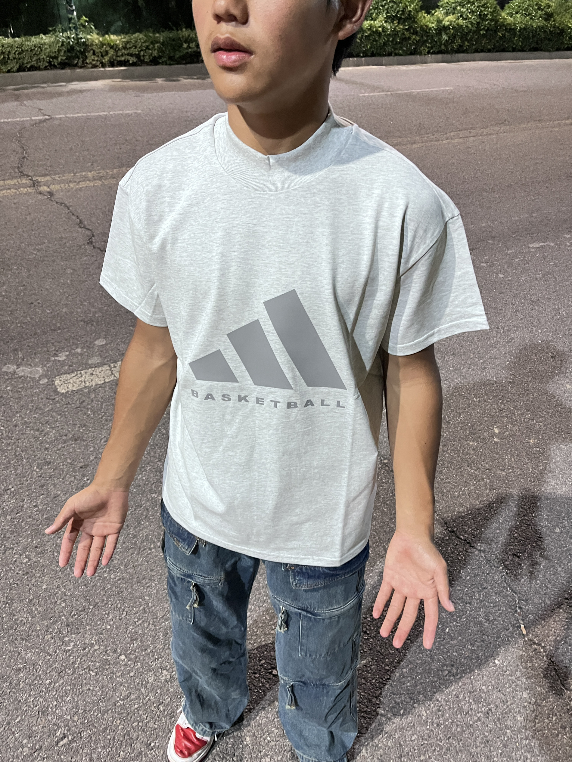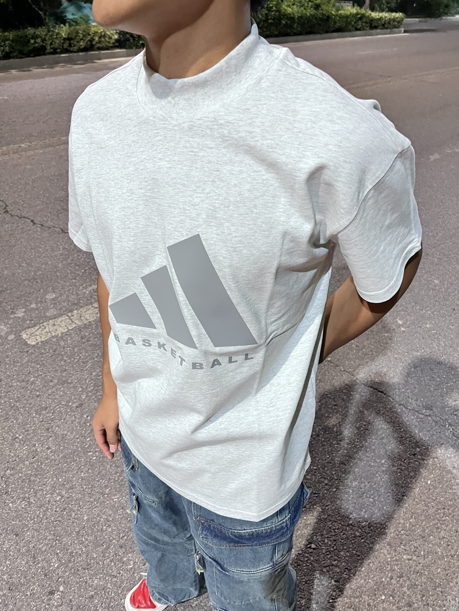 今日份的adidas黑皮帅哥穿搭来啦 Basketball 这个系列短袖真的超级火 每次到的款式都很受欢迎 灰色系 Adidas短袖+牛仔工装裤有运动感的同时也好好看~ 颜色干净舒适,延续极简主义美学。 版型偏宽松轮廓裁剪很棒! 同样也是巴黎世家平替款!显眼的logo 再加上宽大的剪裁oversize