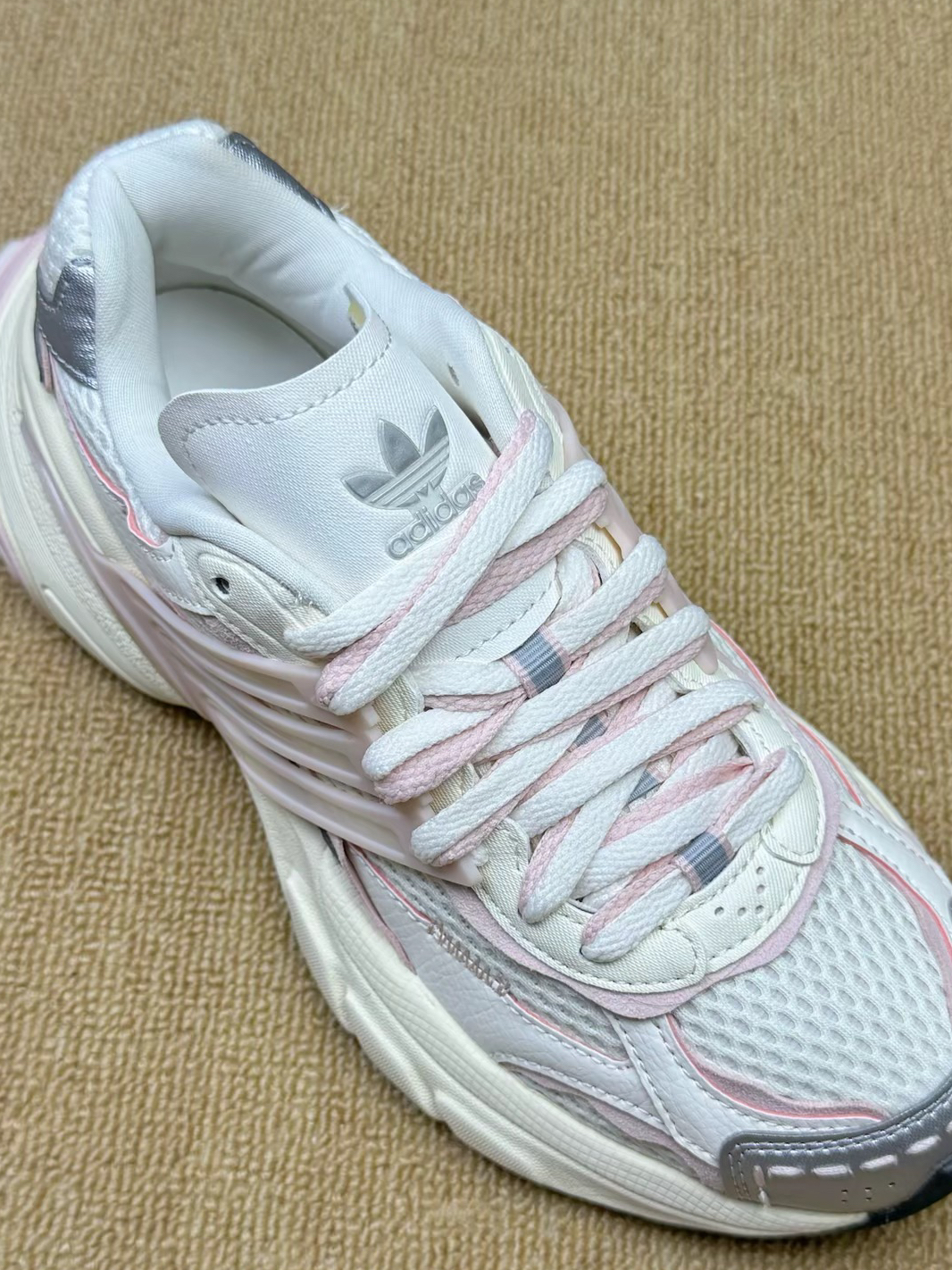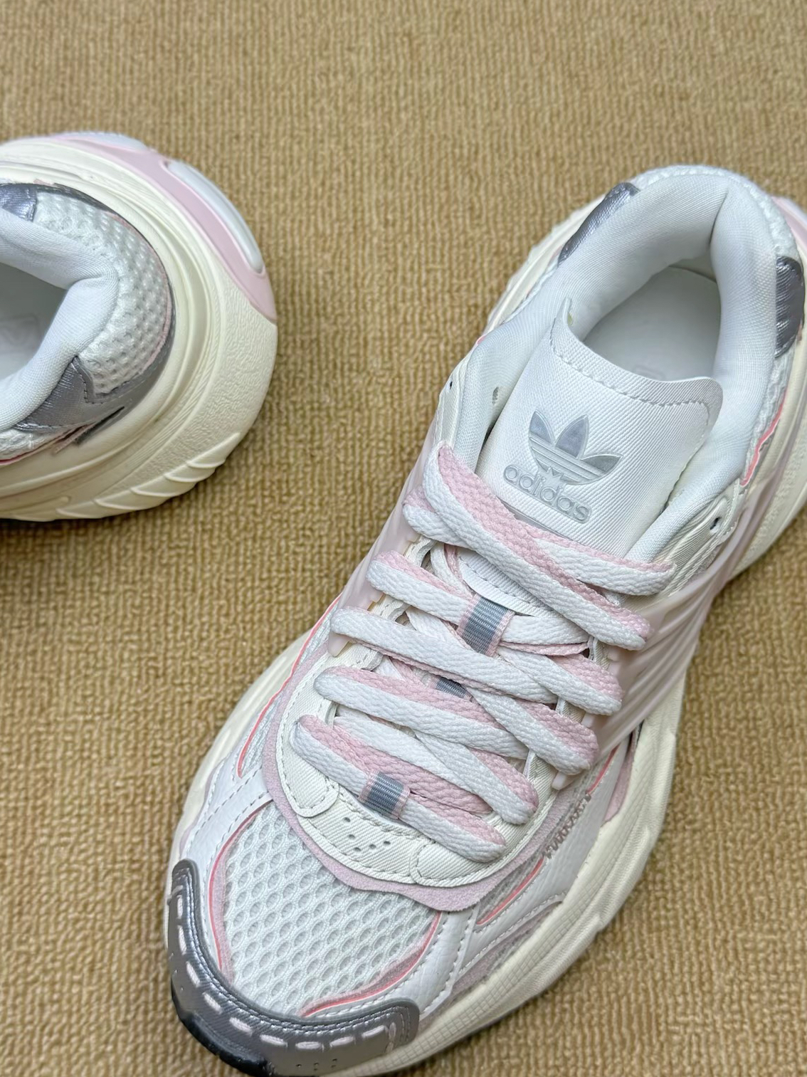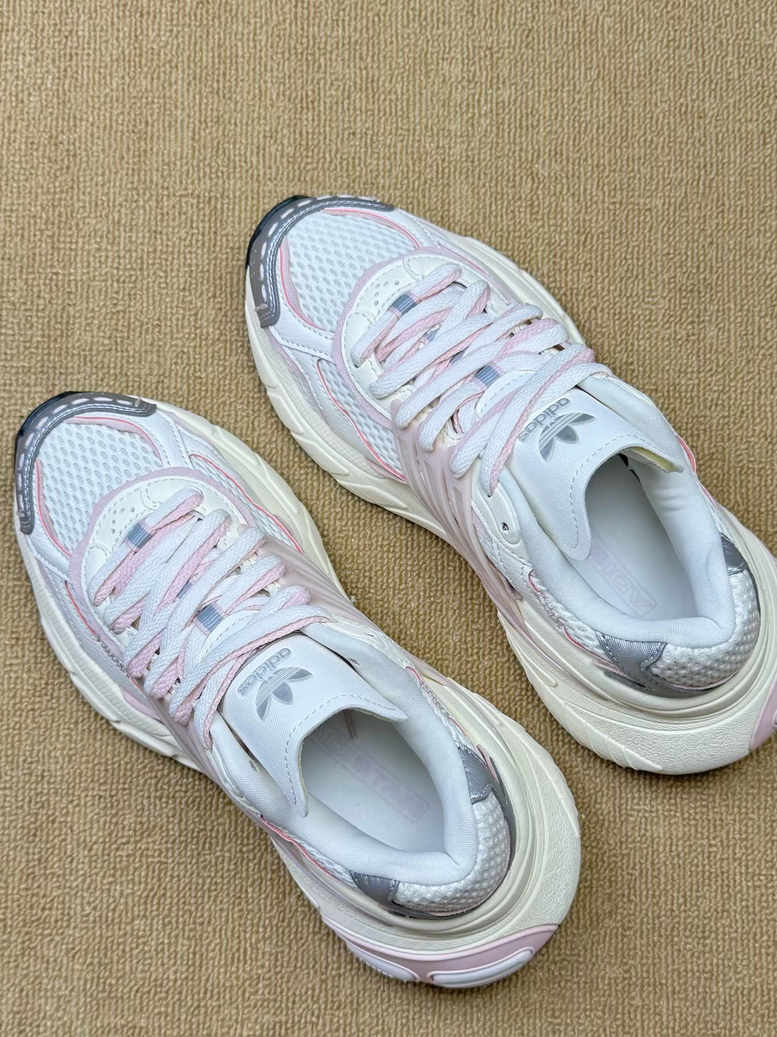 三叶草老爹鞋系列,是真的没有丑款~ 粉色➕酷酷的设计,是真的眼前一亮~ 上脚颜值高,侧面正面都耐看,赞一个~ 舒适度高,不伤脚,浅色好搭配,白裤子hin行~ 双鞋带是真的蛮特别的哈,挺吸引人的~ 七夕节送对象再合适不过了