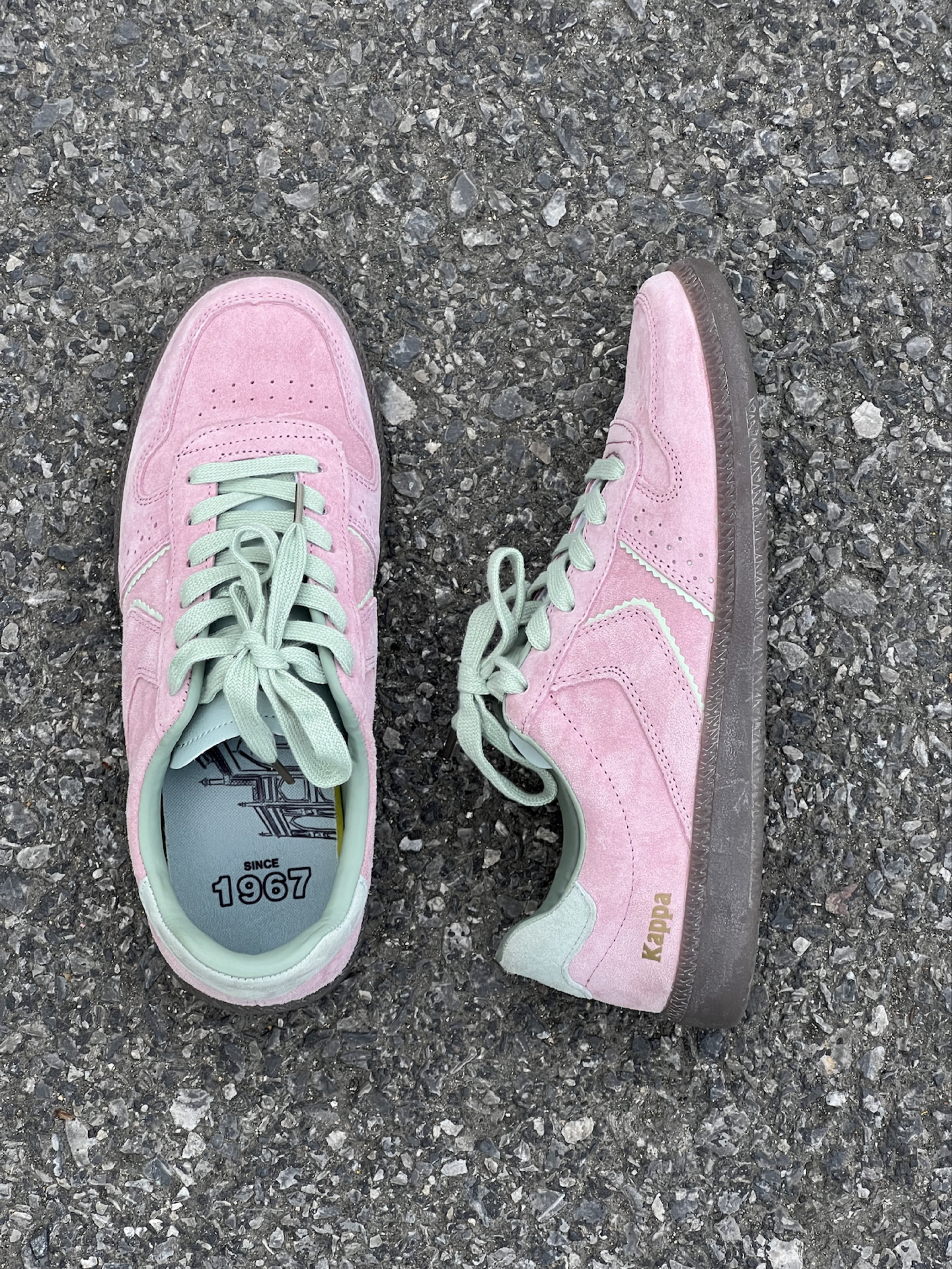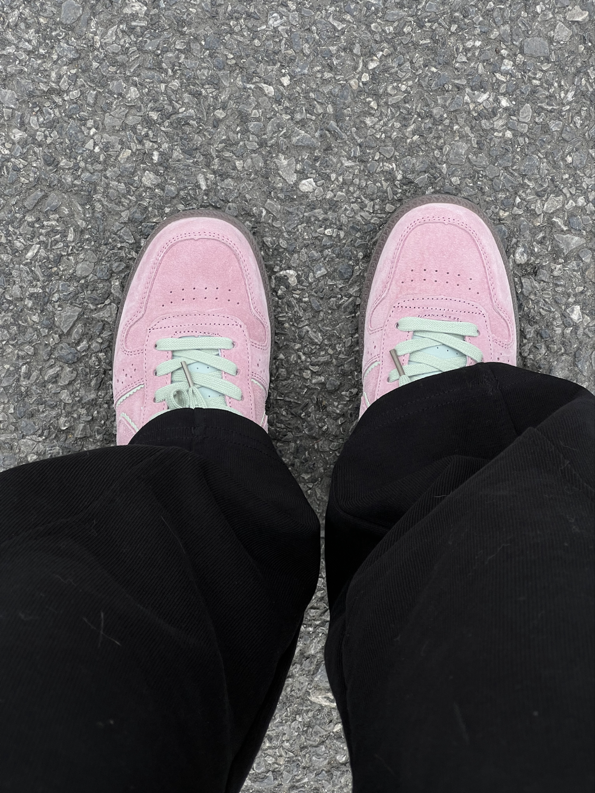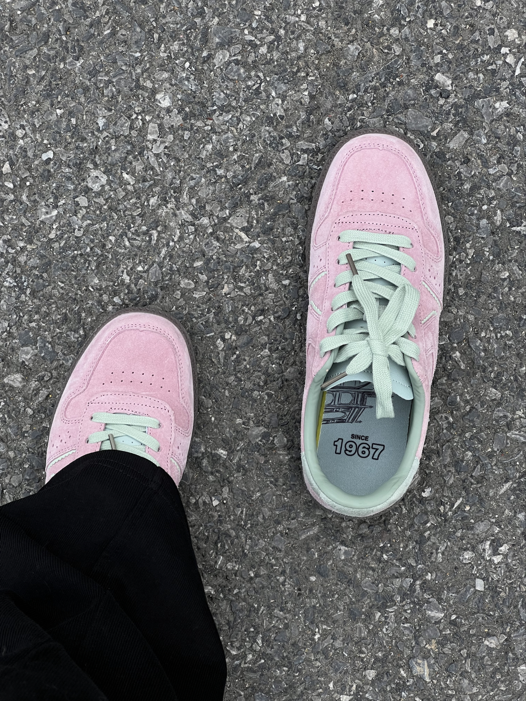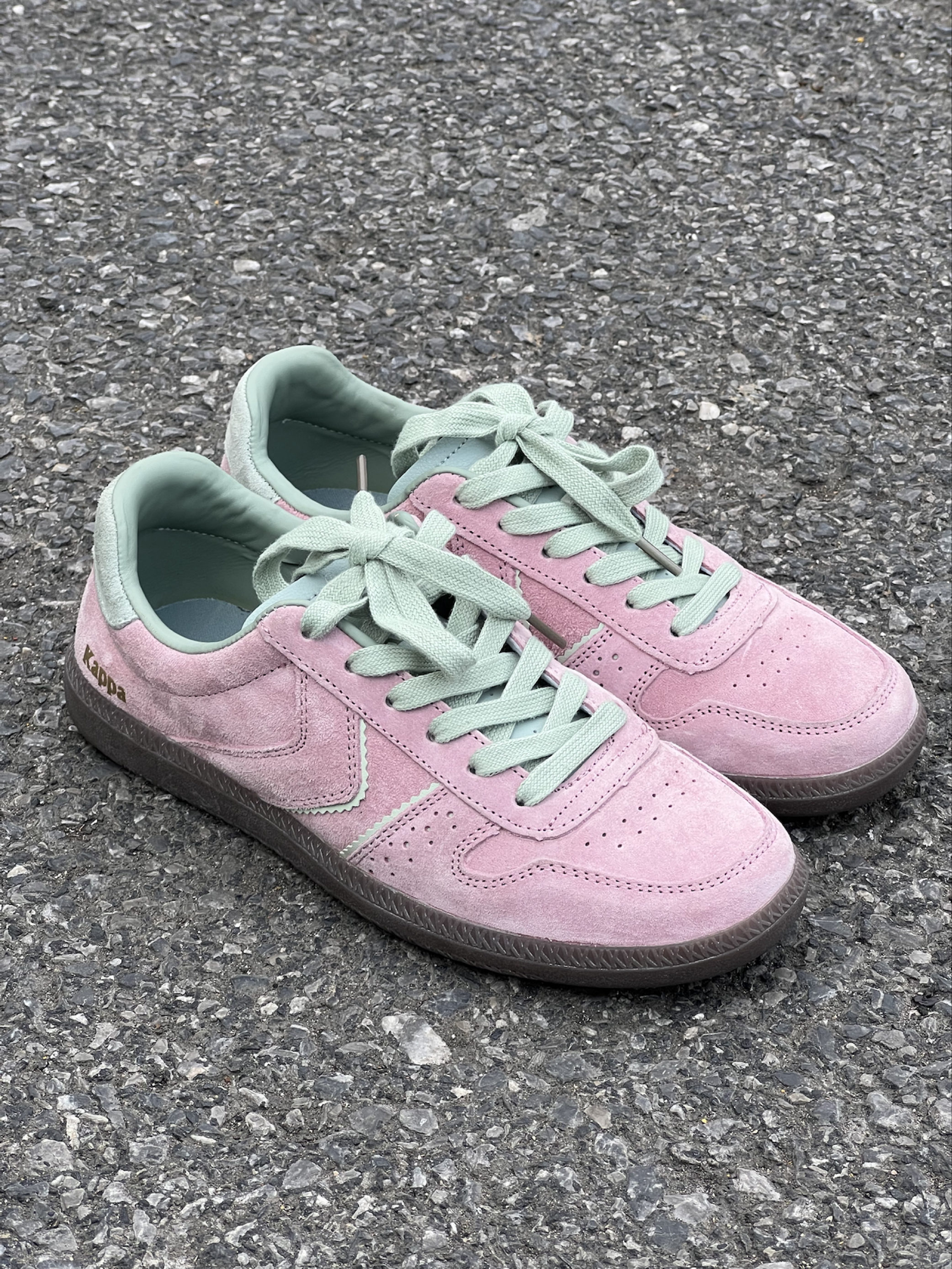 嘿嘿后悔为什么这么晚才发现小粉德训鞋 粉绿💗🟢 果然很搭!是属于春天的鞋子! 首先它超级轻,皮子特别软!质感很好走路很轻便又百搭! 舒服是最重要的!其次这个颜色饱和度不是很高的艳粉,特别好看,麂皮超级有质感,刚开始还担心会不会不耐脏,现在穿了一段时间发现比一般粉色耐脏,脏了有一种灰粉感很高级!粉绿配色真的绝绝子而且不显脚大 缺点是反口里(鞋内的绿色皮质部分)会掉皮… 图4中下面👇的那只鞋带附近的白...