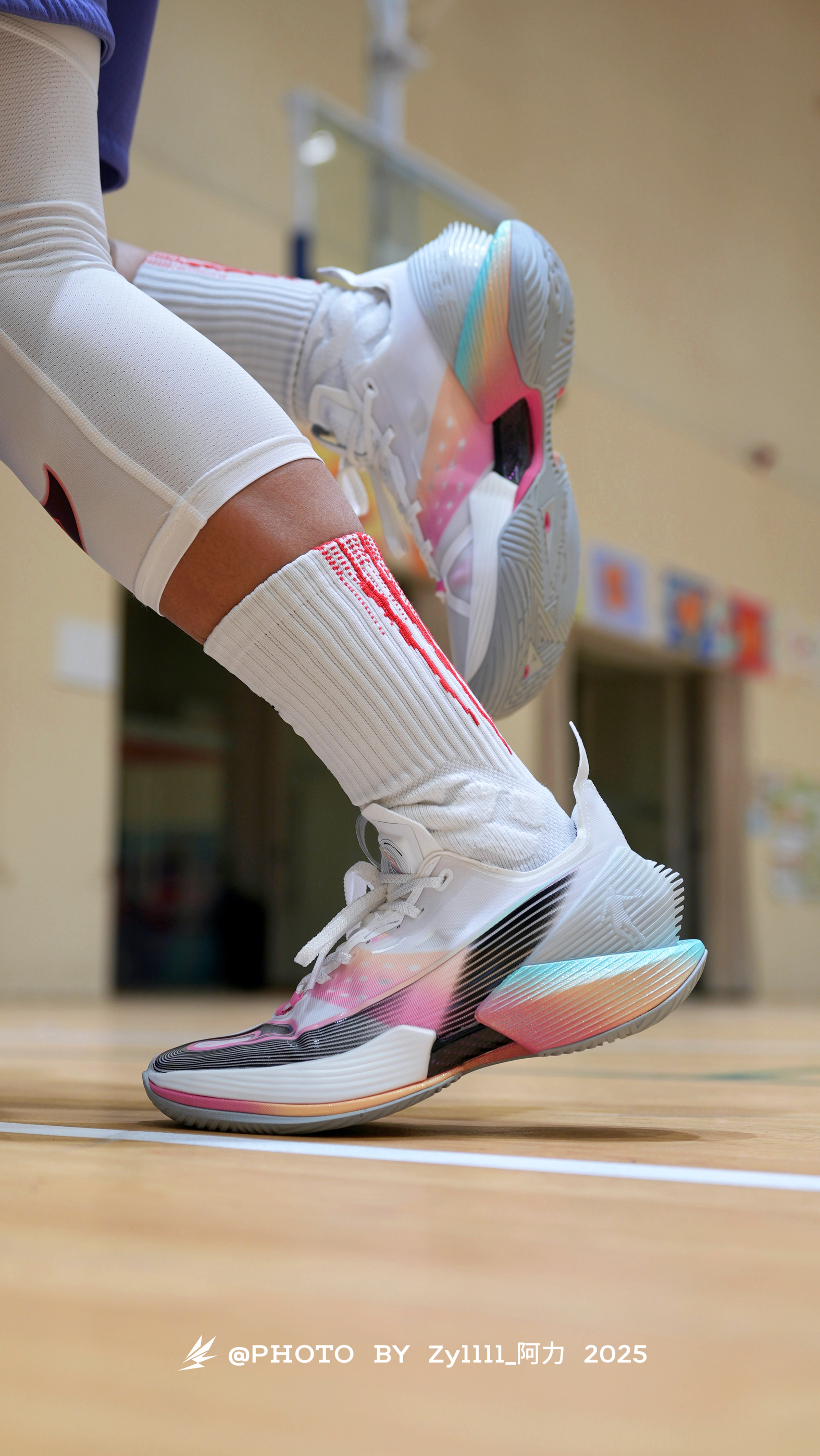 中乔FE Rise 总算要开始正式开售了 之前约翰逊中国行我就一直关注这双 双密度中底➕前插碳板,这性能真的蛮强了 有几点上脚感受也来说一说 顶级瘦鞋楦,高脚背试穿之后再选择,可能是为了极致的包裹感,所以就连我正常脚穿上都会很紧 后跟填充很厚实,脚踝锁定特别强 侧向支撑不错,做横移动作很放心 其他需要实战过后再来分享