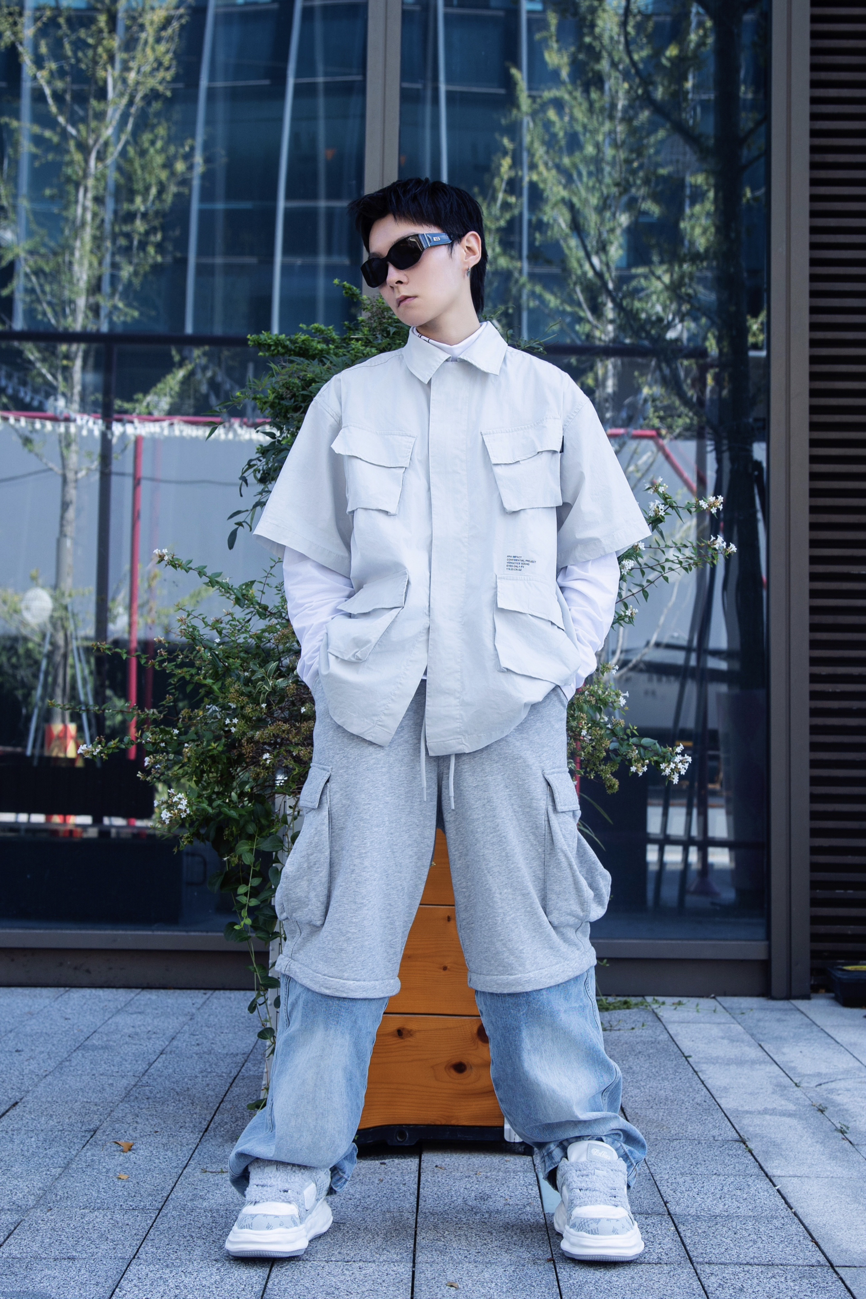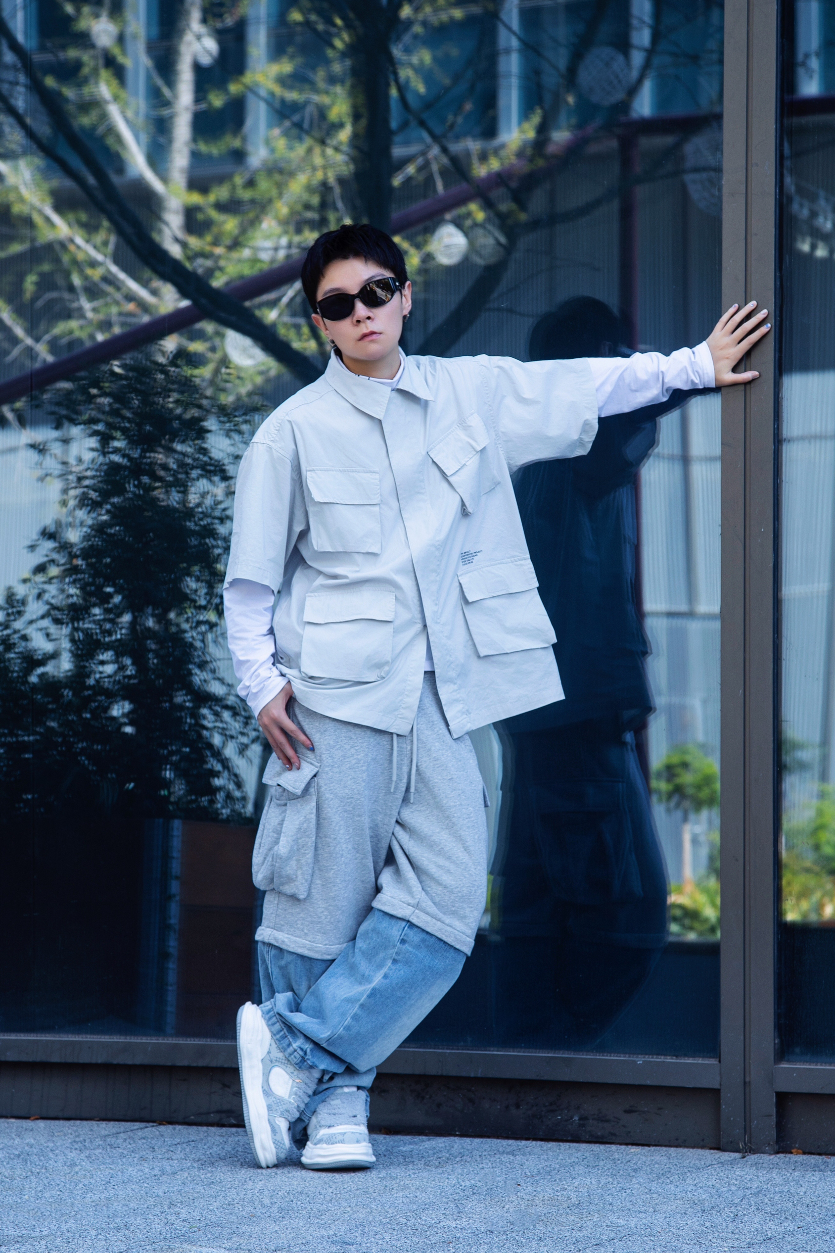 秋日的街头需要一点格雷vibe 穿搭指南: 上身一件白色长袖T恤打底 外搭一件灰色短袖衬衫叠穿一下 多口袋工装设计 是户外的感觉 配一条蓝灰拼接牛仔裤街头感十足 假两条设计还蛮有个性的 上脚tcellars休闲板鞋 灰白拼接搭配绒绒的鞋带 适合秋冬 厚鞋底增高又温暖 整体蓝色灰色叠加有层次有呼应