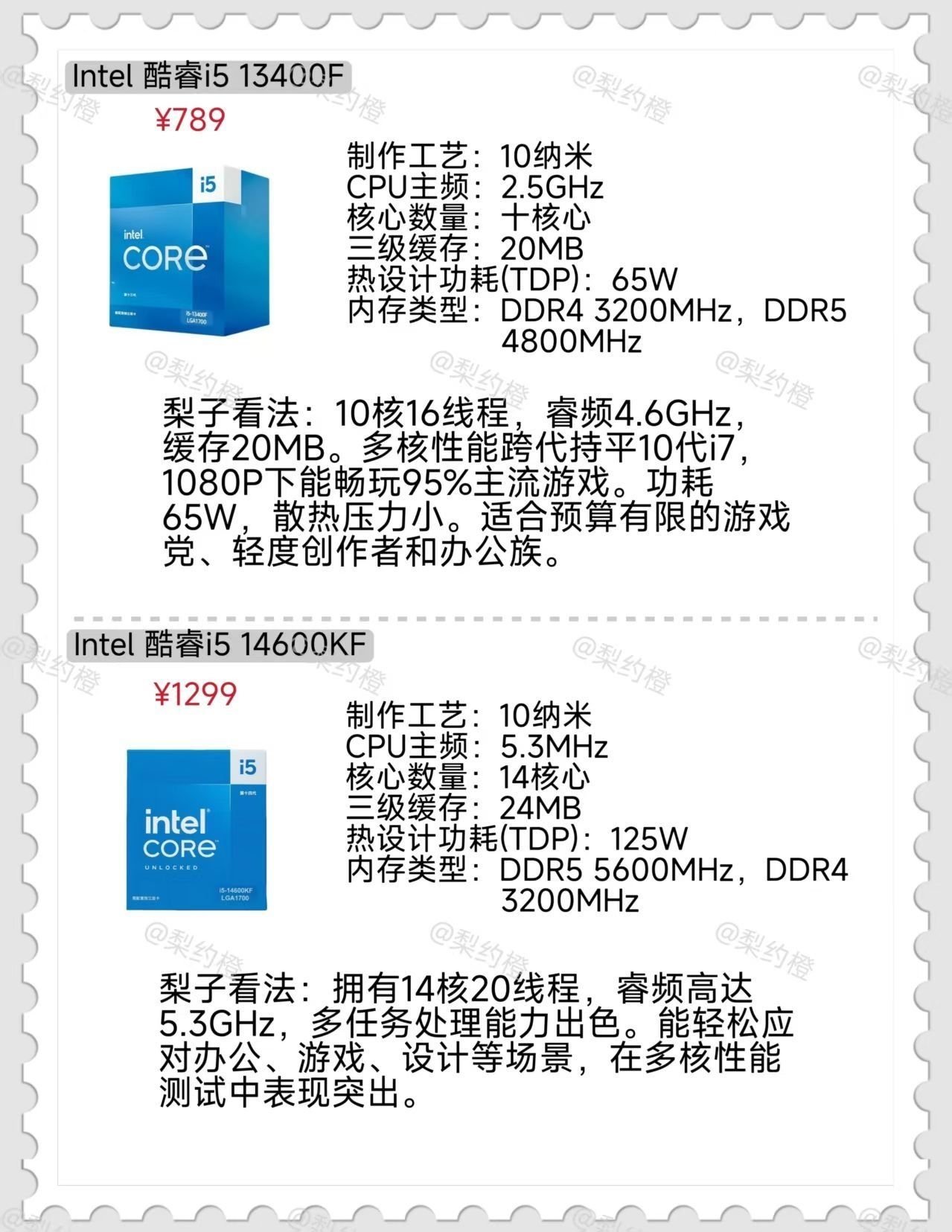 本篇笔记关联了Intel/英特尔 i5-14600KF 酷睿14代CPU处理器 超强性能 需要独立显卡 i5-14600KF 盒装、AMD R7-9800X3D 锐龙9代处理器 8核16线程 104MB游戏缓存 加速频率至高5.2GHz R7-9800X3D散片、AMD R7-7800X3D 锐龙7代CPU处理器 8大核16大线程 104MB游戏缓存 加速频率5.0Ghz R7 7800X3D散片等商品,为用户提供真实的使用体验和购买参考。