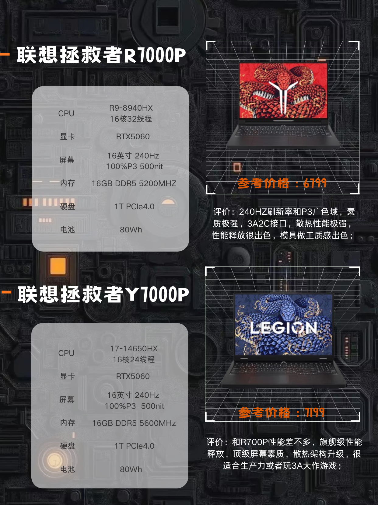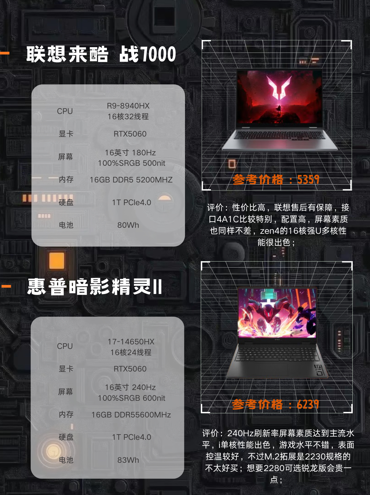 开学季想买游戏本!还在纠结RTX40系和50系显卡怎么选?这篇帮你彻底搞懂!高性价比机型按需购入不踩雷! 💰4K价位入门高性价比(RTX4060) ✅ 火影T6K ✅ 机械革命蛟龙15K ⚡ 5K-7K价位性能与性价比平衡(RTX5060) 🔥 机械革命蛟龙16Pro 🔥机械革命极光X 🔥 联想来酷 战7000 🔥 惠普暗影精灵11 🔥 华硕天选6 锐龙版 🔥 华硕天选6 Pro 🔥 联想拯救...