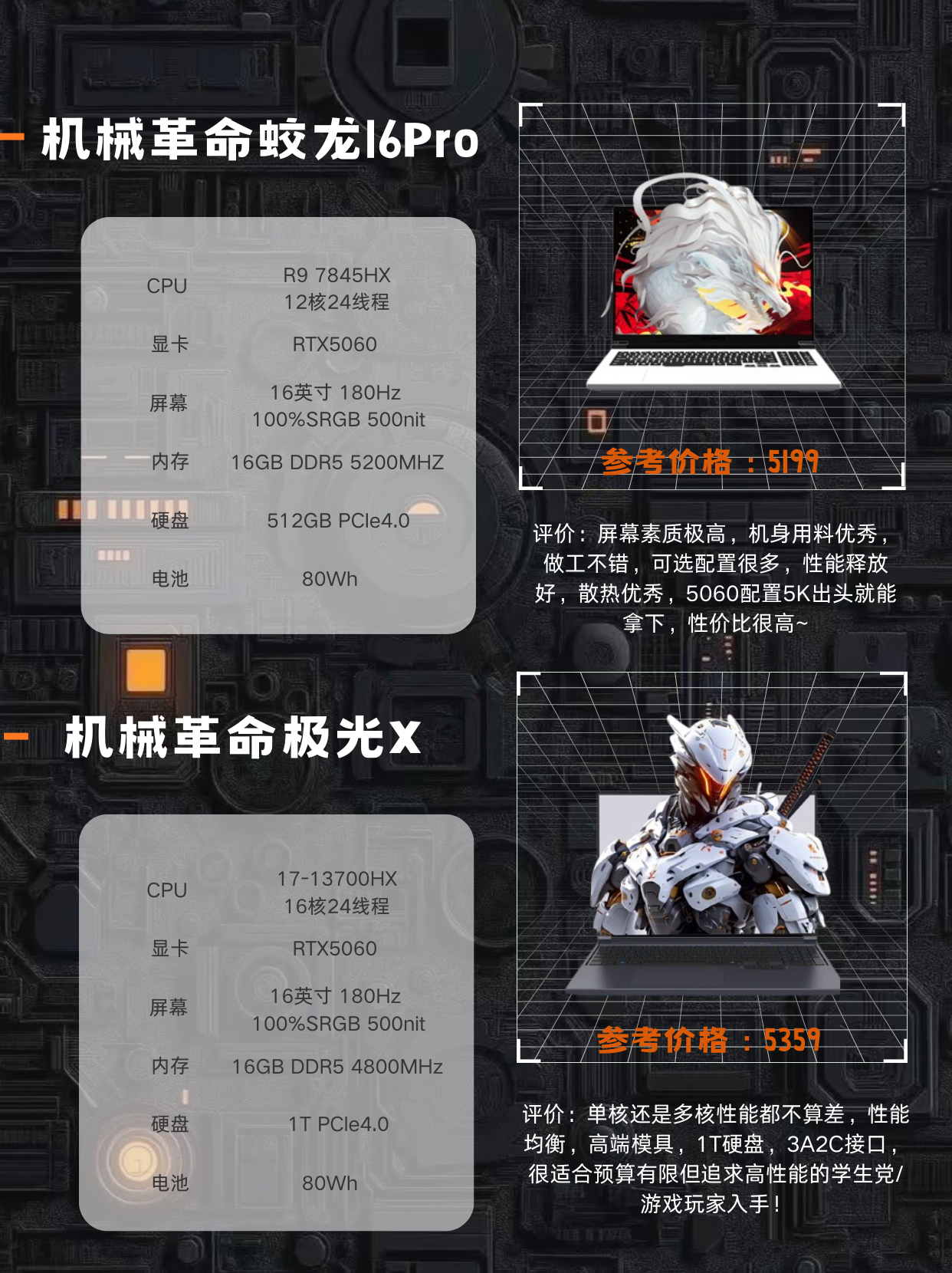 本篇笔记关联了MECHREVO/机械革命 蛟龙15K RTX4060显卡 2024款 15.6英寸 游戏本 满功耗 高性能 强芯 高刷新率 蓝牙连接 满血 独显 光追 标压 灰色、FireBat/火影 T6K RTX4060显卡 2024款 16英寸 游戏本 轻薄 高刷电竞屏 办公 高性能 黑色、Lenovo/联想 拯救者Y7000P RTX5060显卡 2025款 16英寸 游戏本 2.5K 240Hz 80Wh电池 散热系统 广色域 办公设计 碳晶黑等商品,为用户提供真实的使用体验和购买参考。
