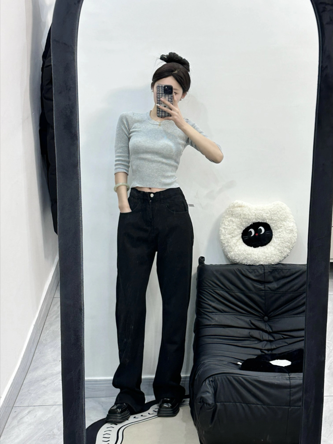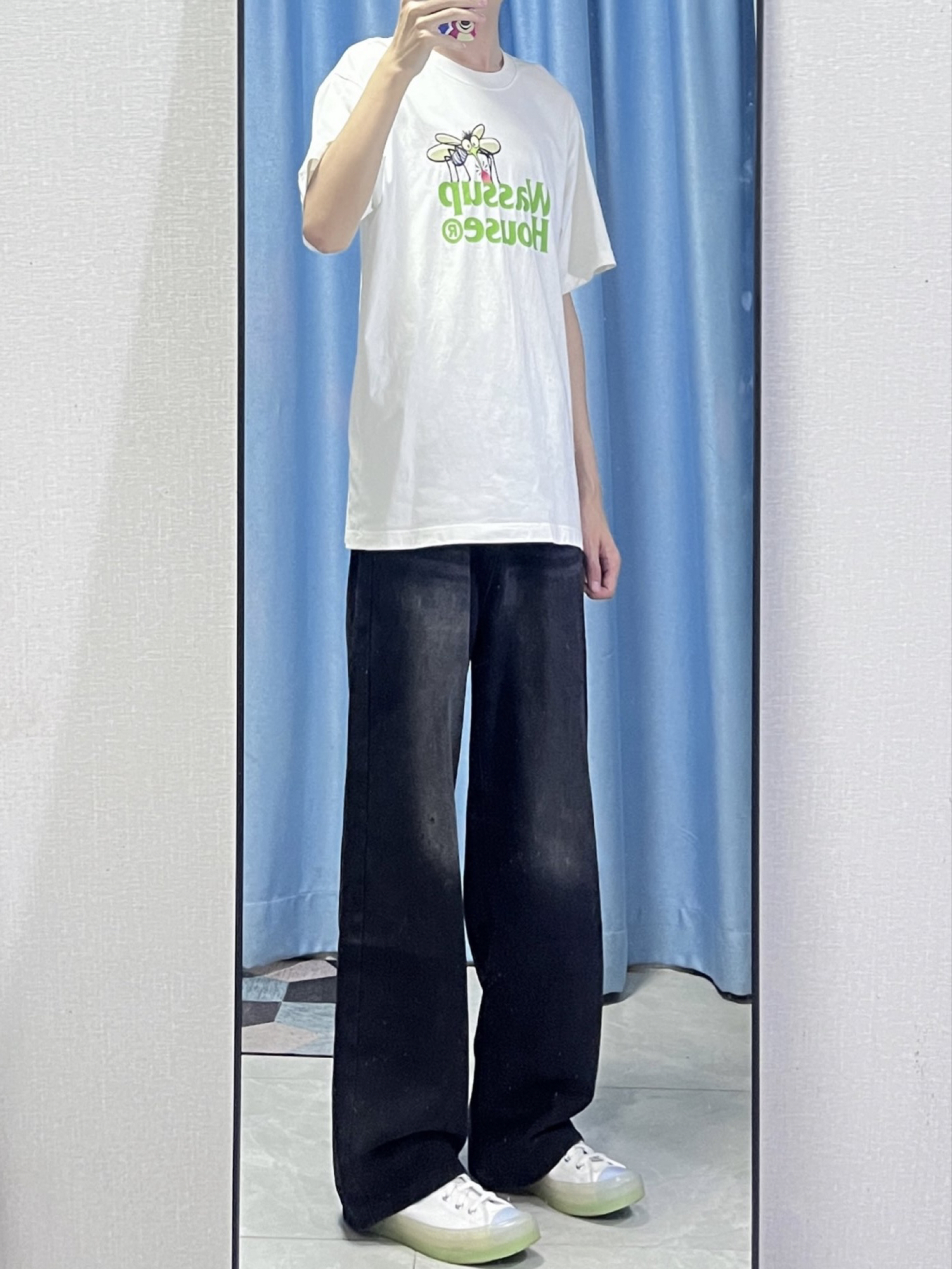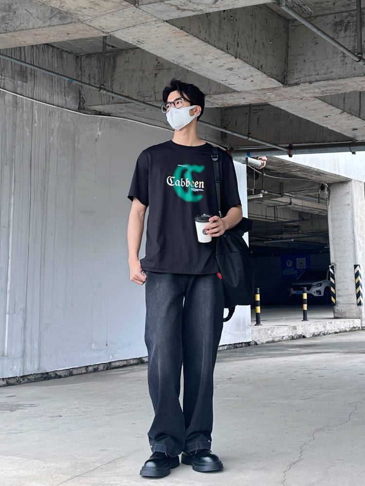 秋季开学真的很适合穿牛仔裤👖 男生衣柜里必备的一条就是黑色牛仔裤🌟 宽松直筒的版型上身效果很好 秋季也比较百搭好看🤩