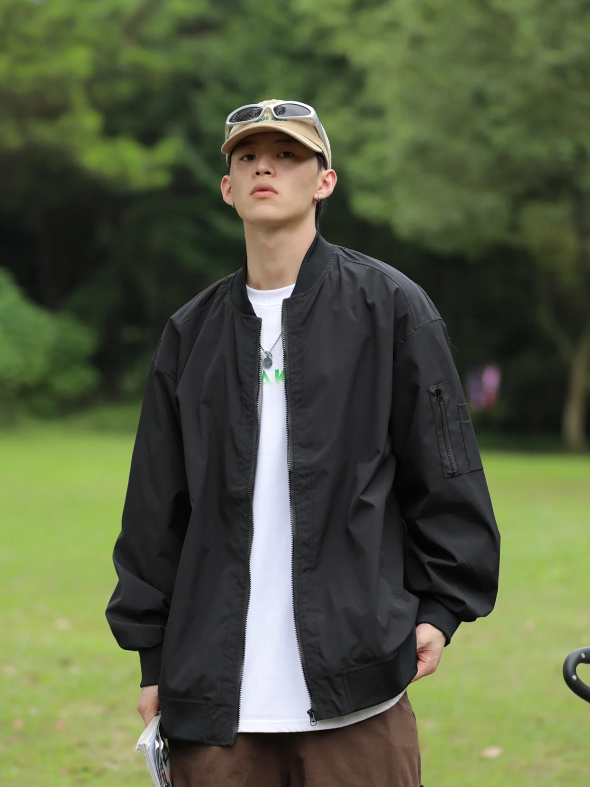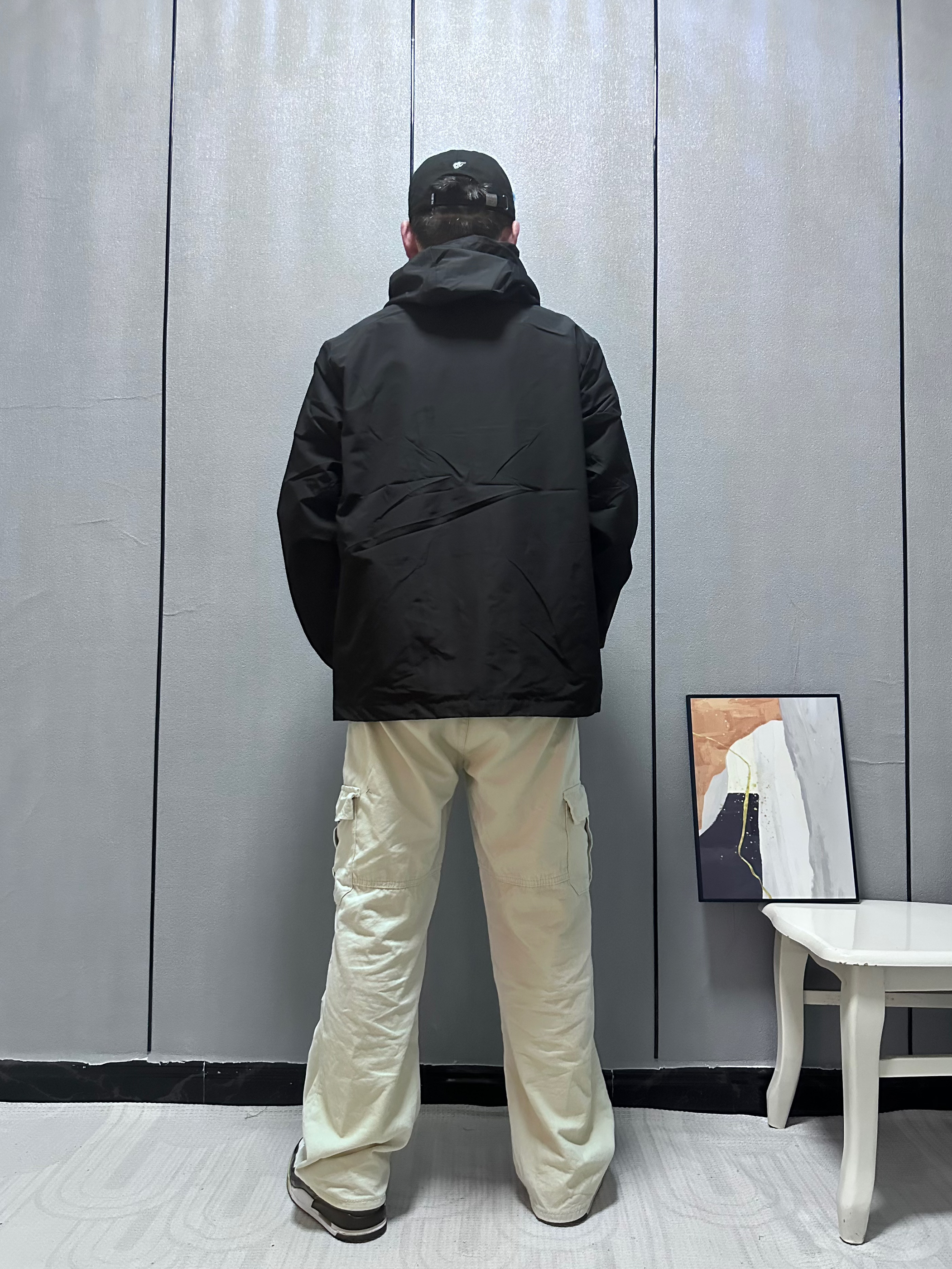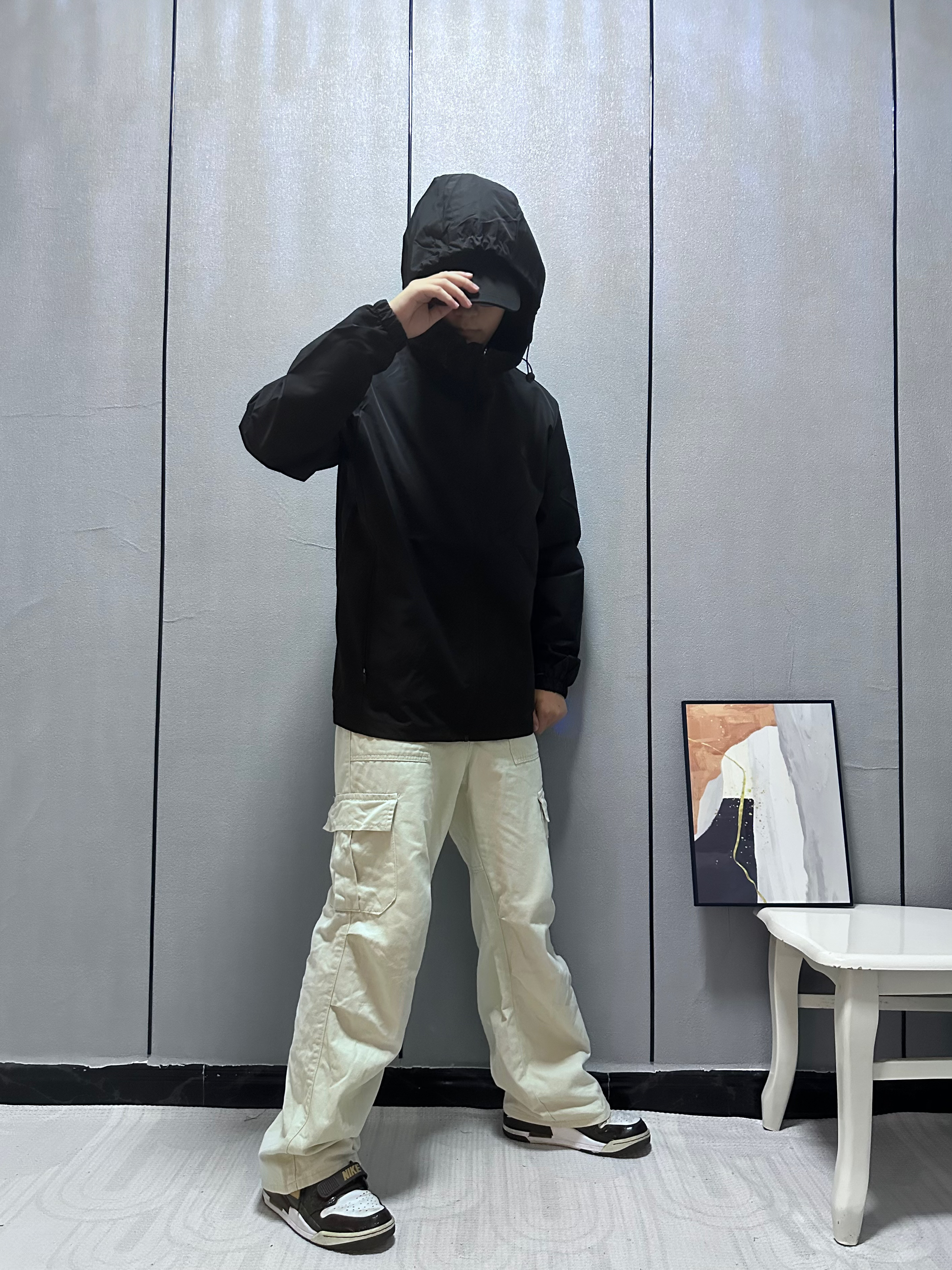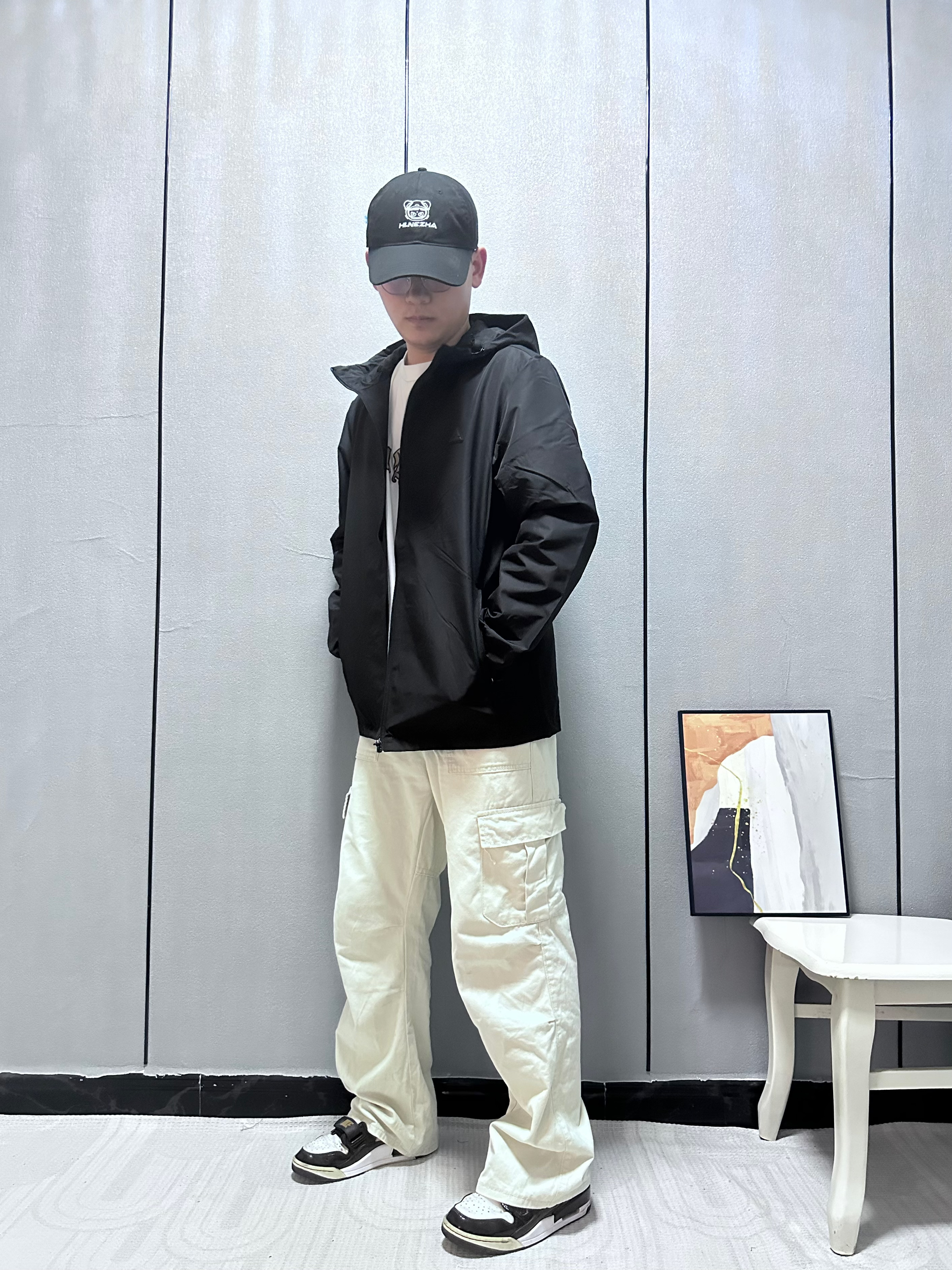 换季天气说变就变 幸好最近准备了这件防风夹克🌫️ 驭科技材质轻薄却扛风防泼水 雨天穿梭校园也无压力 廓形利落,一身黑色搭配卡其工装裤 机能风那味就有了,实用和帅气我都要
