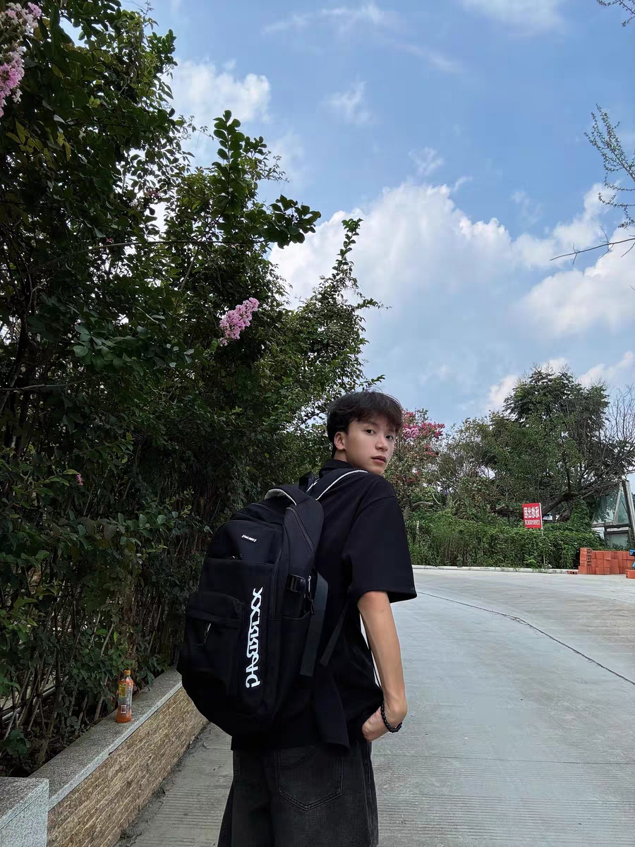 ✨双肩包背着也太好看了吧 黑色真的超百搭呀啊 没有偏色,也很有质感,整个设计很酷很极简~ ✨而且容量很大 可以放下超多东西 差不多能装下10本书➕一些零碎东西~ 日常上课通勤或出去玩都适合的 包身很也硬挺 随便一放也不会软塌塌的 ✨放假或出门旅游背着都好看~