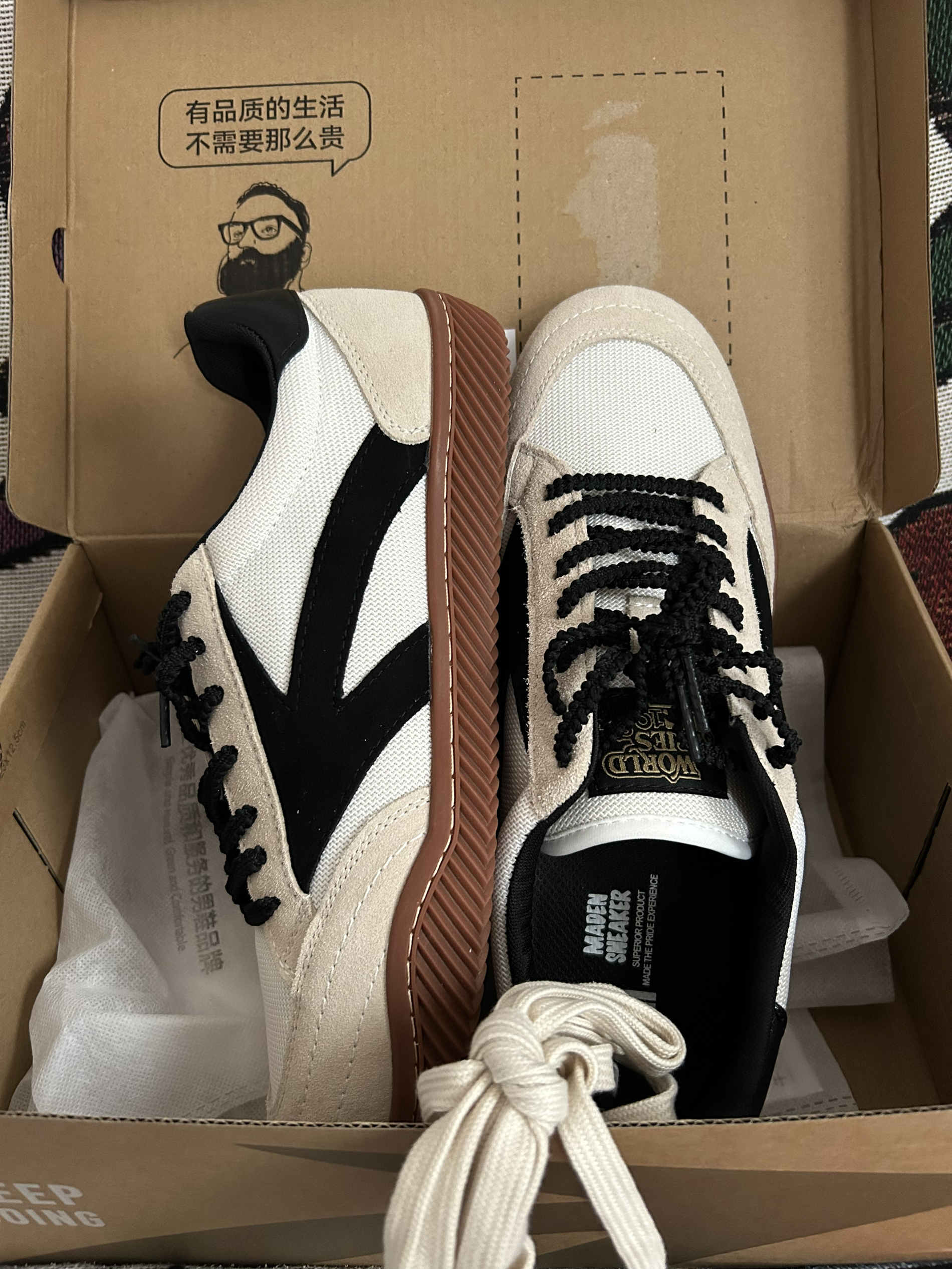 很经典的款式,好看也好穿(尺码偏大),鞋盒内的包装很细节~