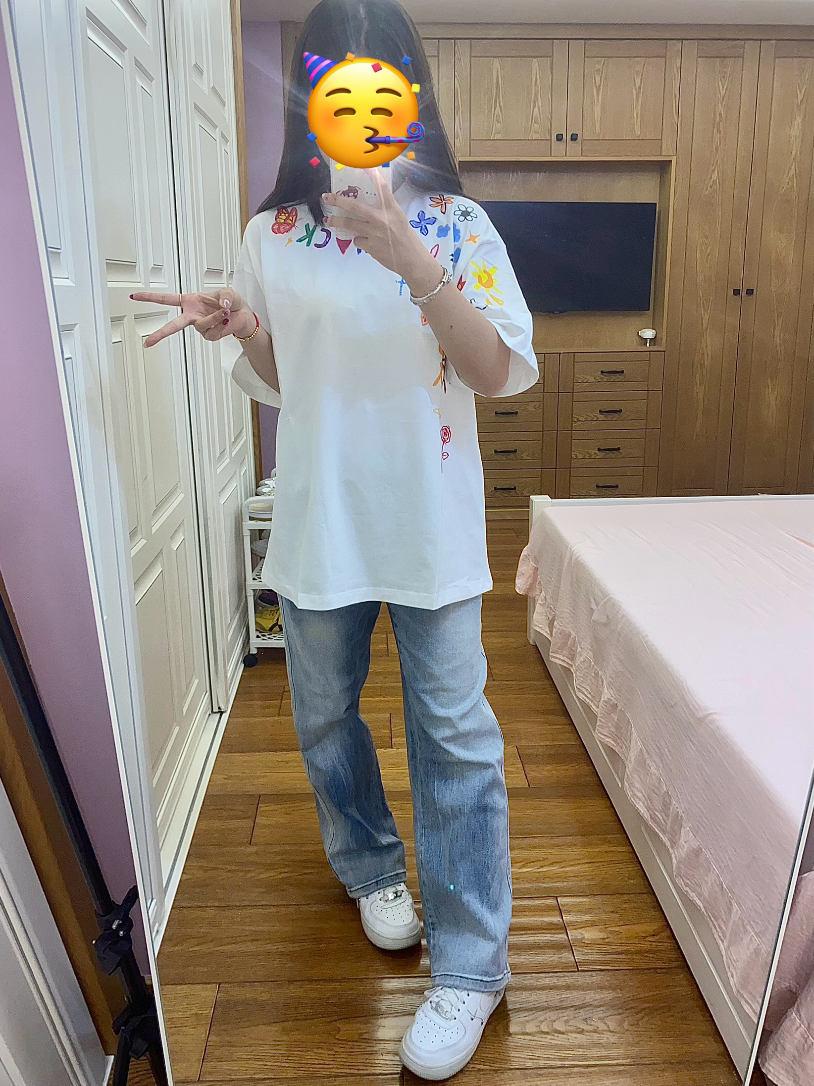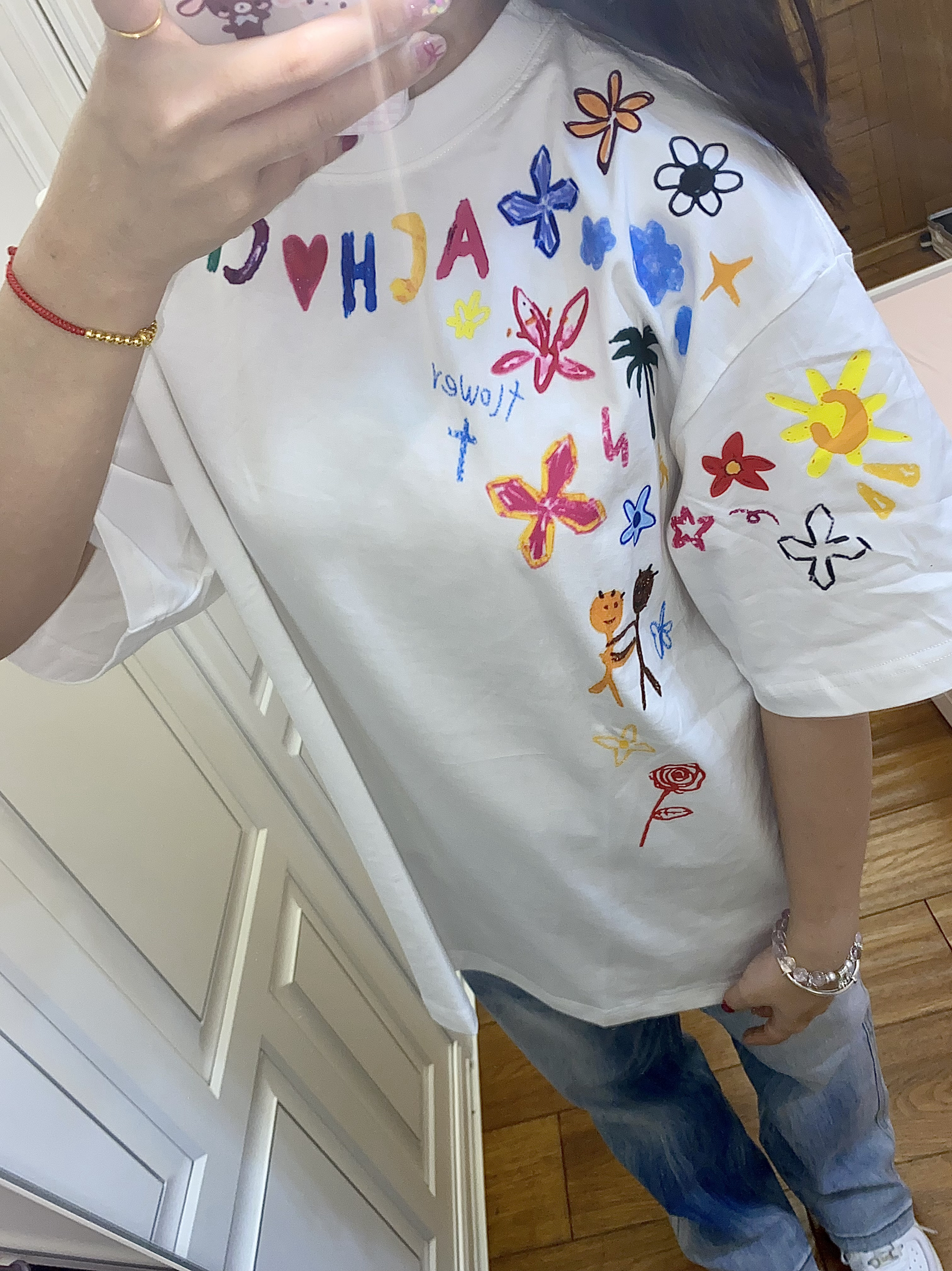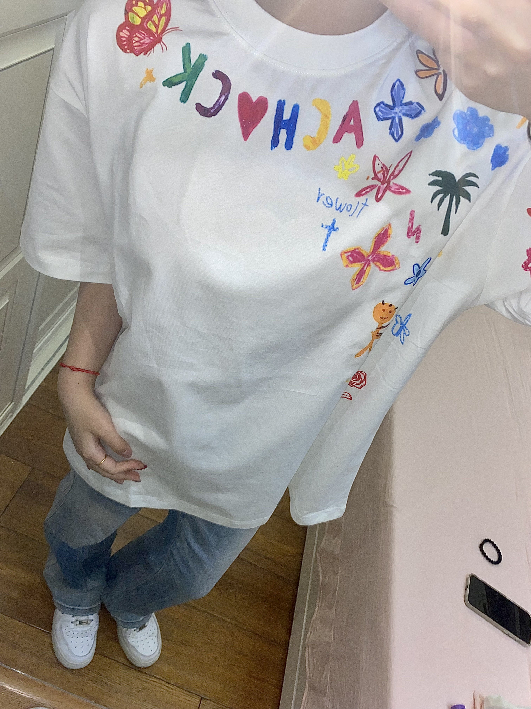 今日份穿搭分享来啦! 今天上衣出穿的是 A chock 家滴 白色搭配涂鸦滴设计很有夏日活力! 衣服版型是宽松的 很百搭 夏日随便搭配一条牛仔裤也是很好看滴 衣服面料也很舒服 夏日穿真的太舒服啦