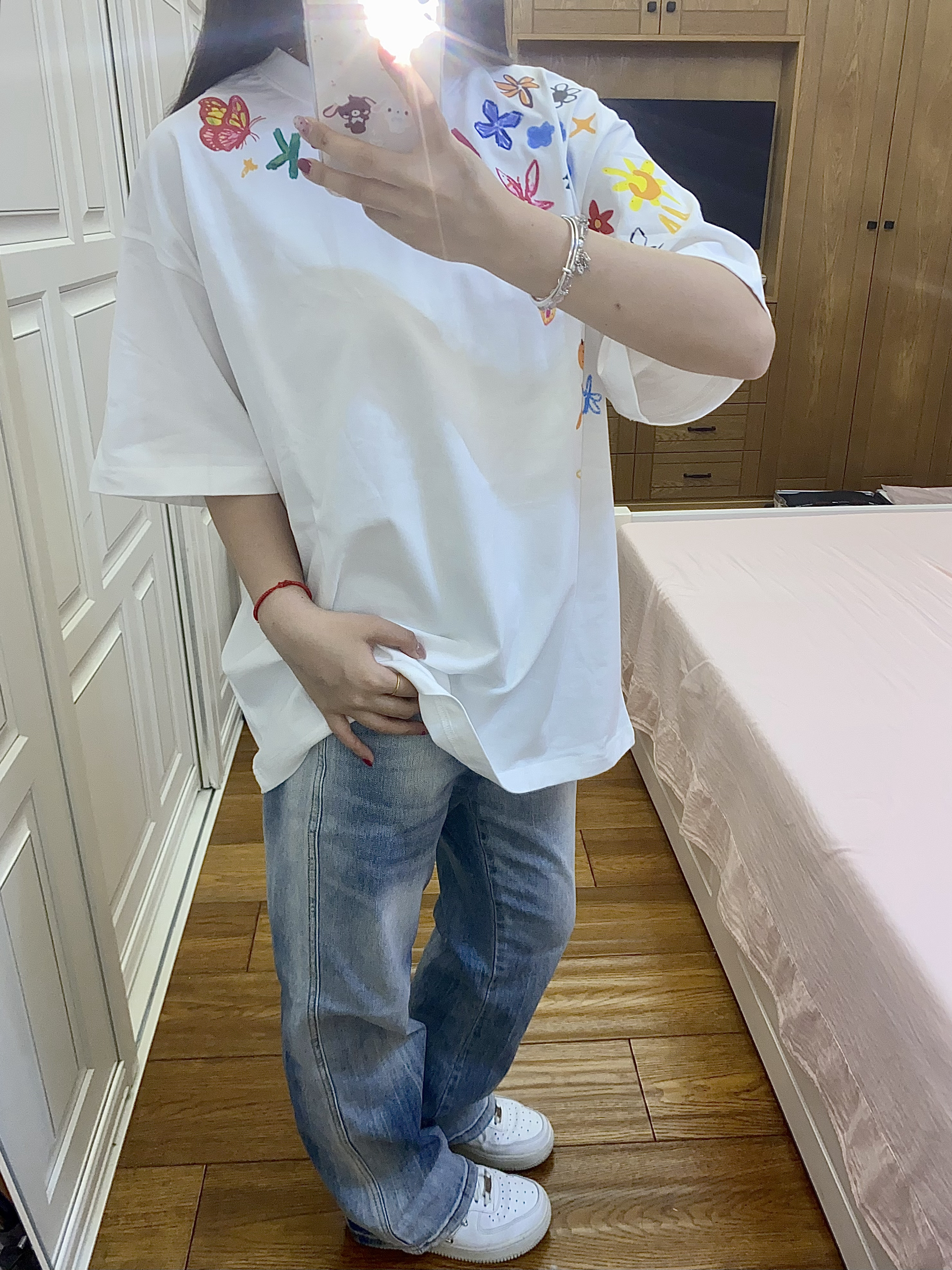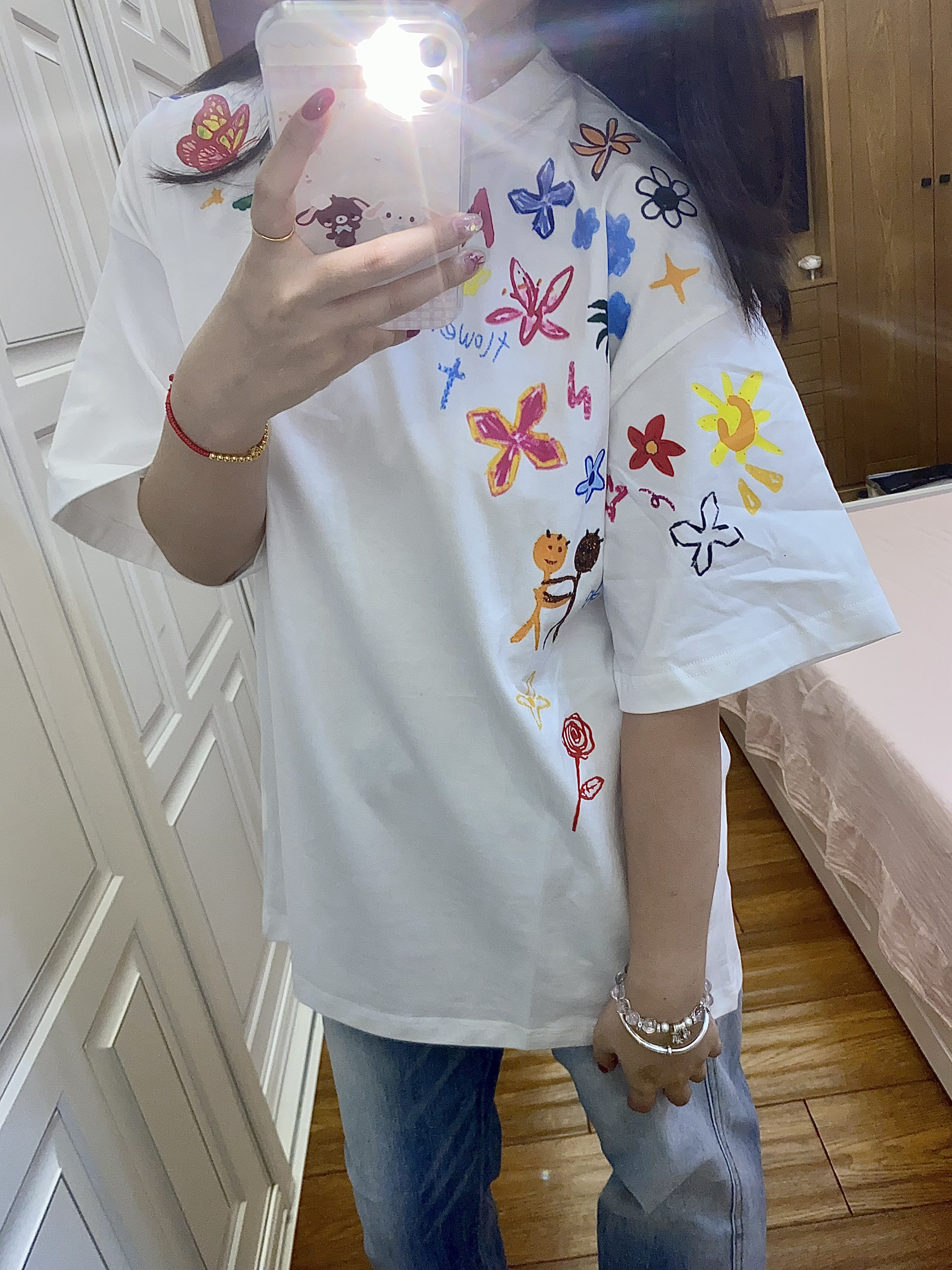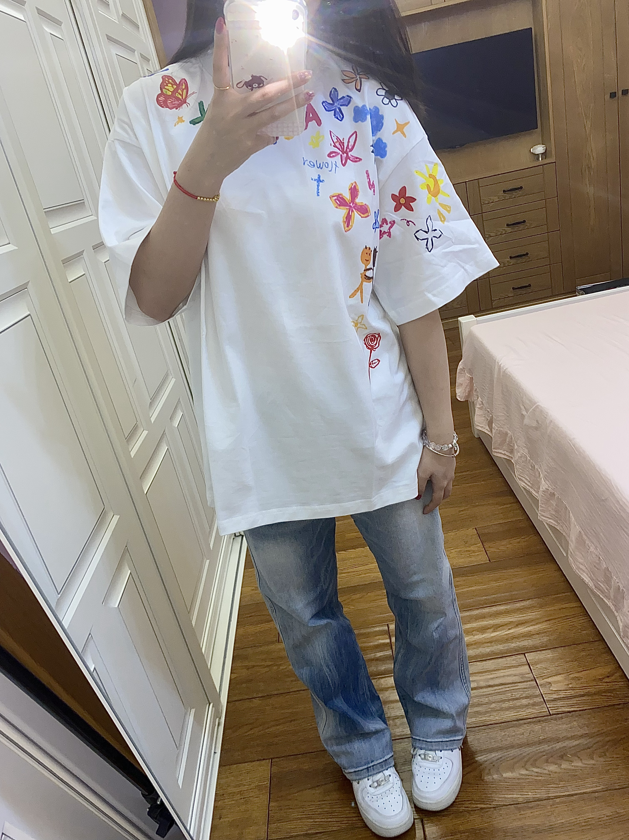 今日份穿搭分享来啦! 今天上衣出穿的是 A chock 家滴 白色搭配涂鸦滴设计很有夏日活力! 衣服版型是宽松的 很百搭 夏日随便搭配一条牛仔裤也是很好看滴 衣服面料也很舒服 夏日穿真的太舒服啦