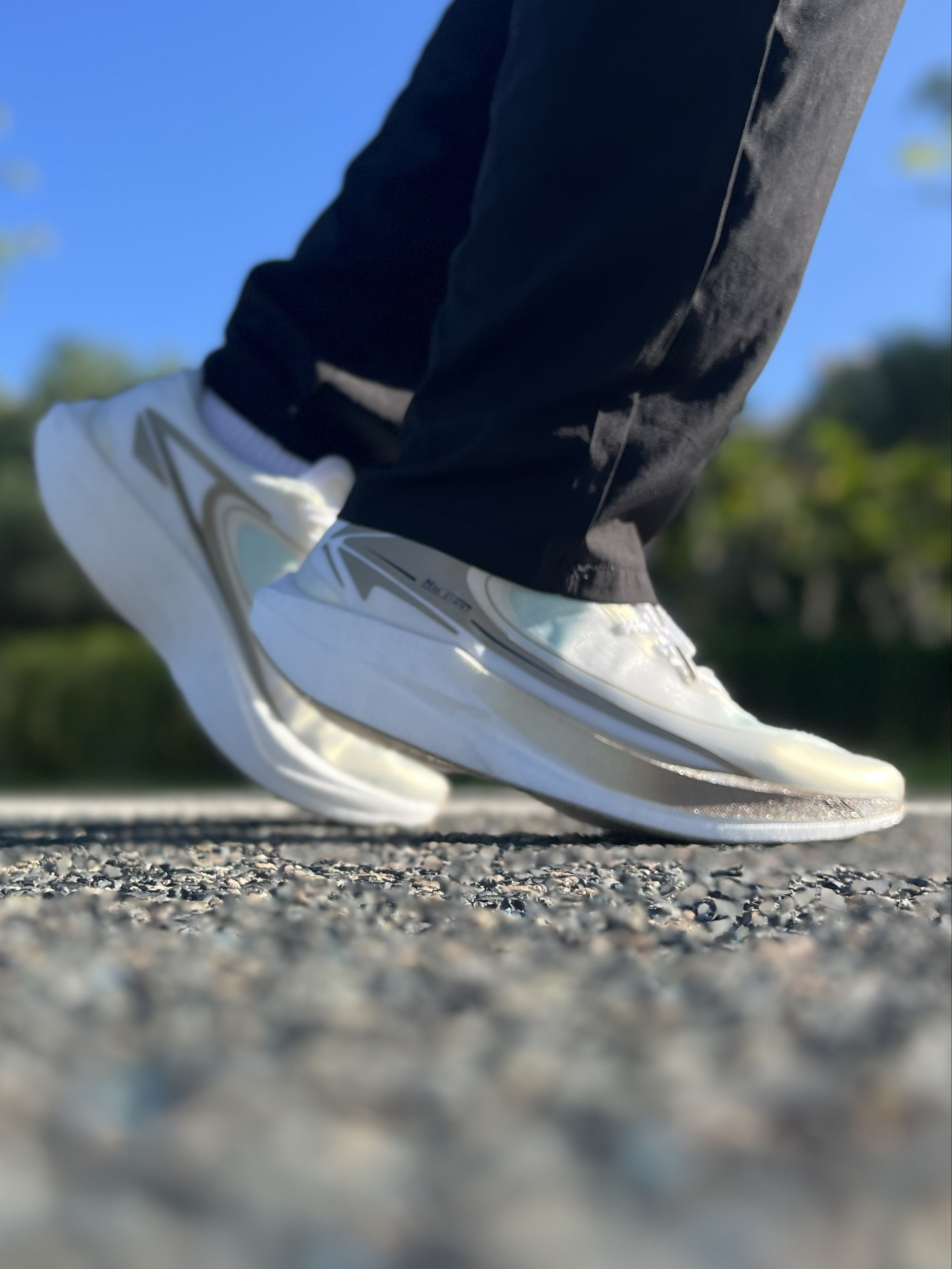 星火力 这双音速1.0 Pro,收到上脚之后,真是给我弹迷糊了,就加了10块钱鞋垫换成了申赛麒麟超临界和超临界发泡中底这搭配的脚感再次得到升级,而且中间的超大纯碳板抗扭片提升了整体的稳定支撑性,颜值我也觉得蛮不错的,下面我们一起看看吧🧐
