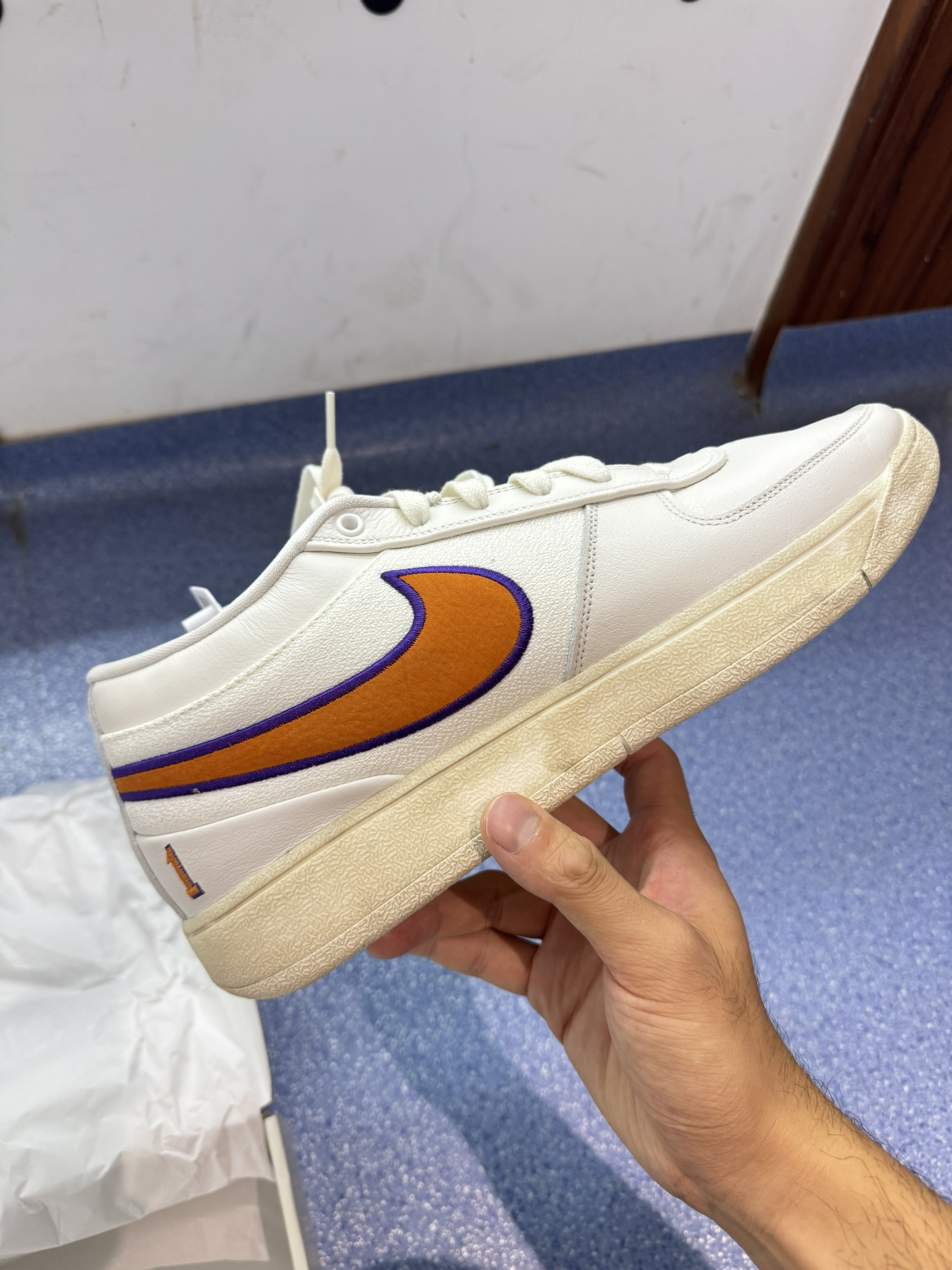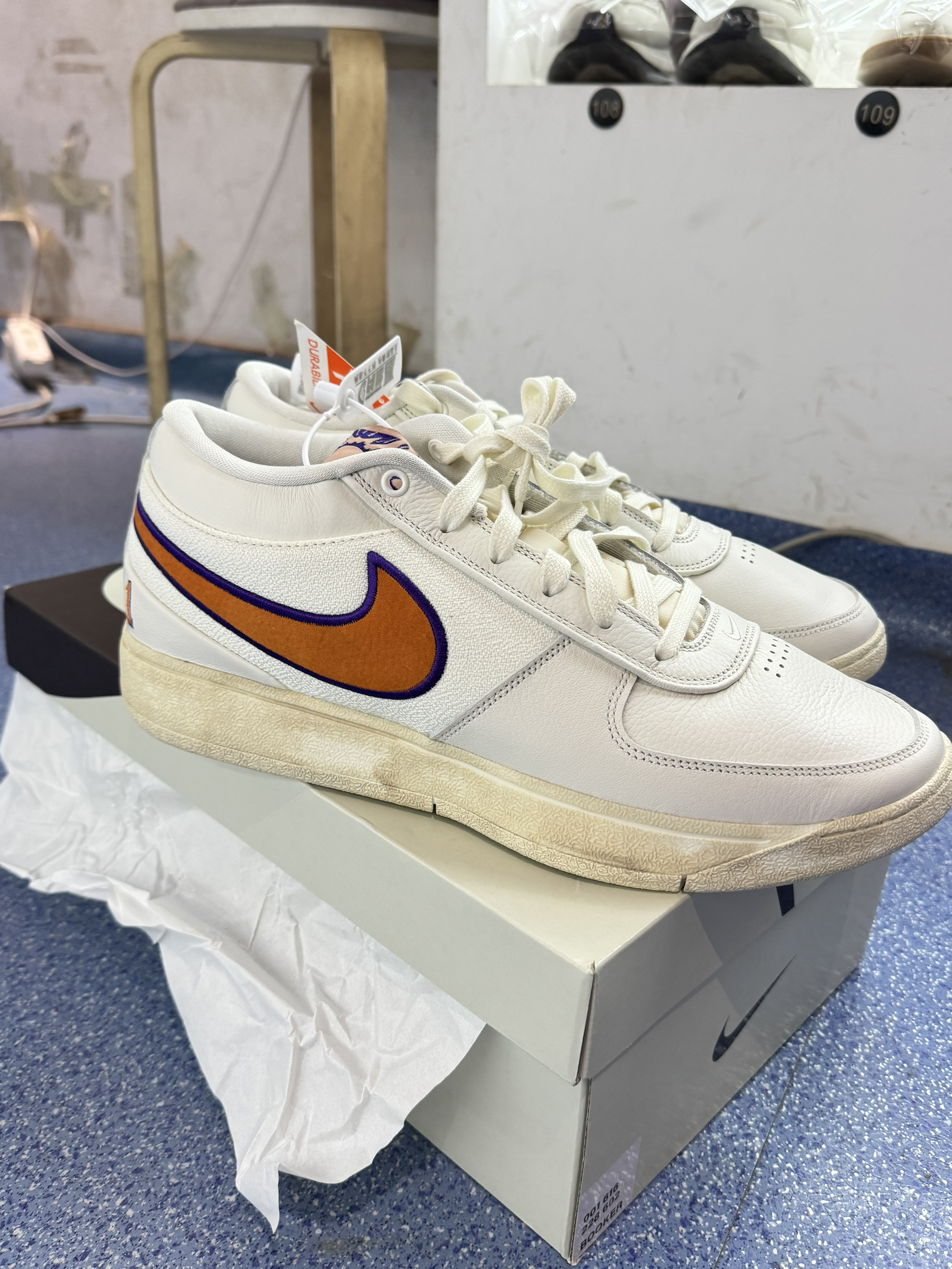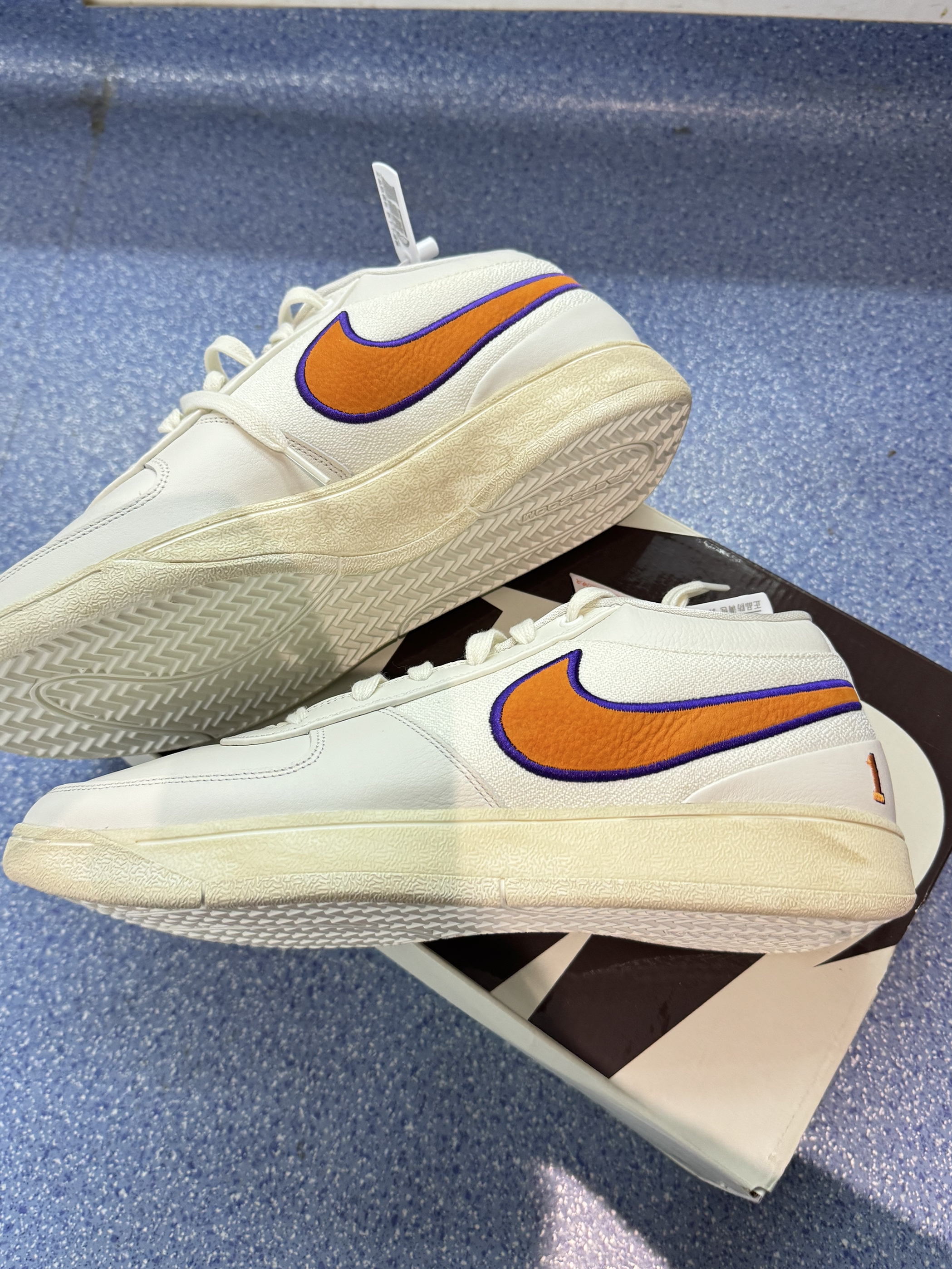 打开鞋盒一瞬间满脑子想的退款,怎么这么脏,肯定是退换货的,后来查了才知道是故意做旧 买的第二双了,这个配色比之前阿甘更有签名鞋的感觉,阿干也很经典,更多的是在致敬,橙色的钩子配色个人元素,新出的这些配色把人拿捏住了 脚感上来说白开水,前掌不硬,后掌的气垫很足,有明显的回弹,但是足弓处设计的有问题,又软又没有保护,容易外翻,喜欢突破的会发现登不上劲 购买建议:追求外在的传搭时尚属性的,轻度的养生局推...