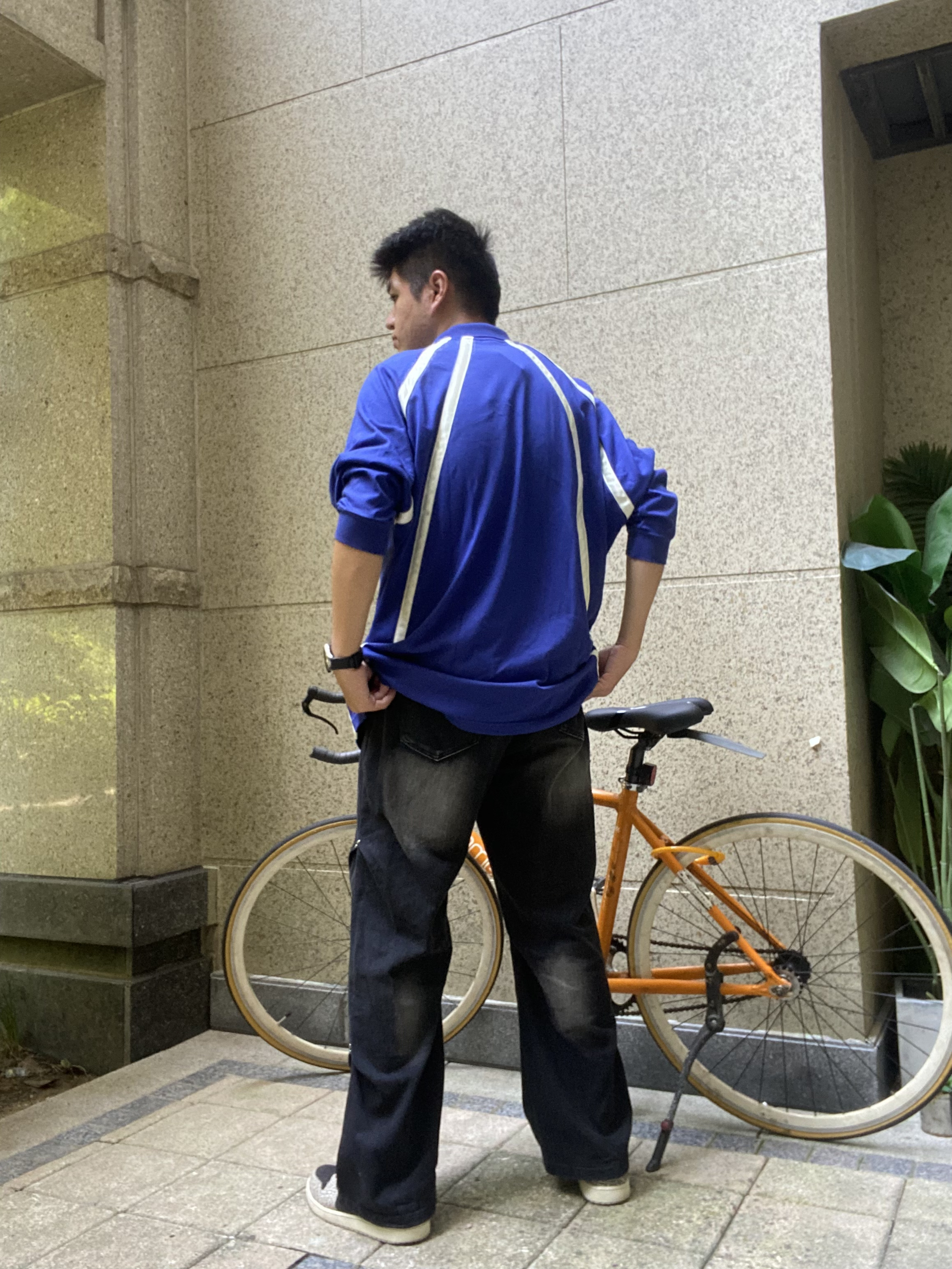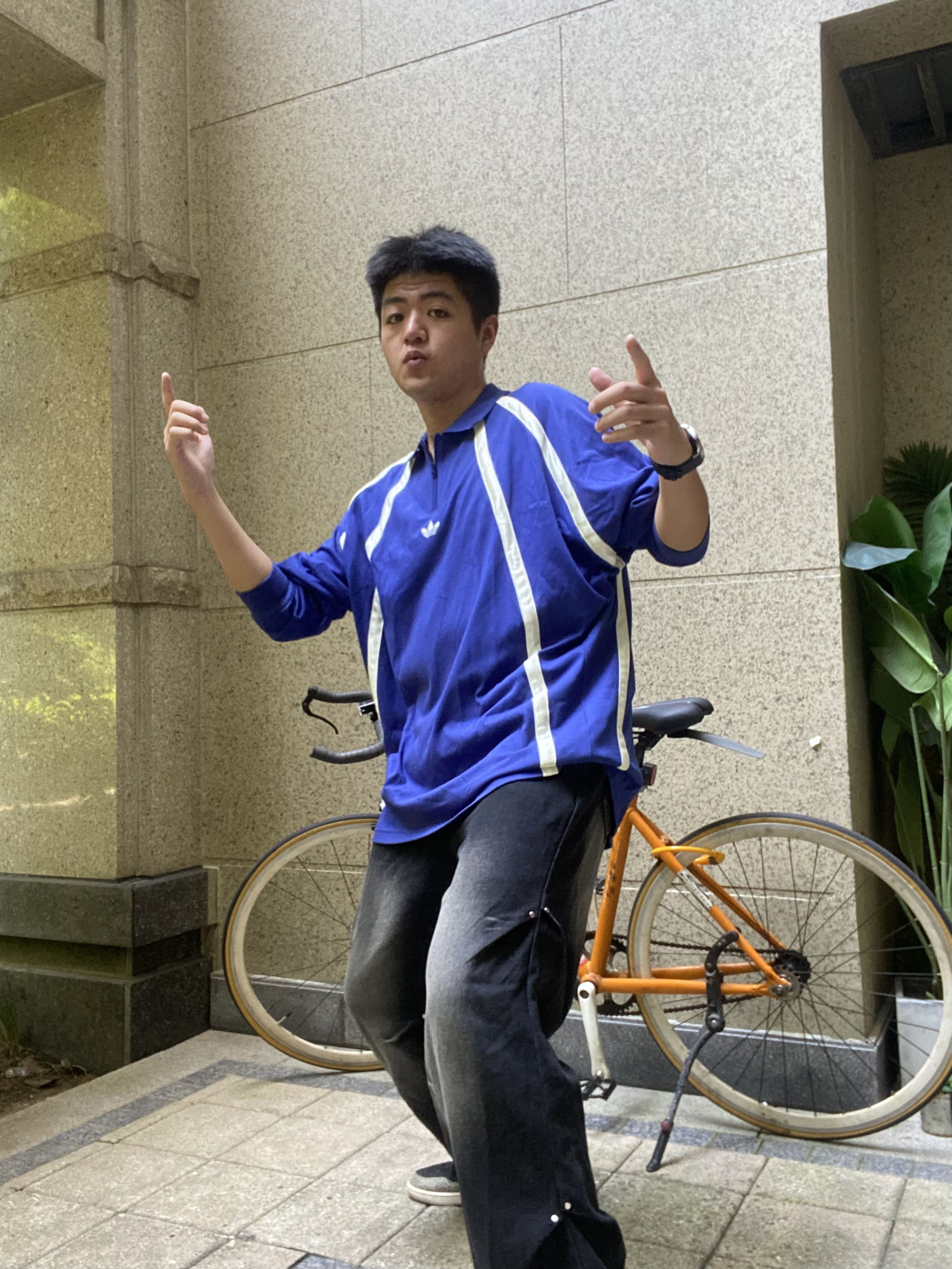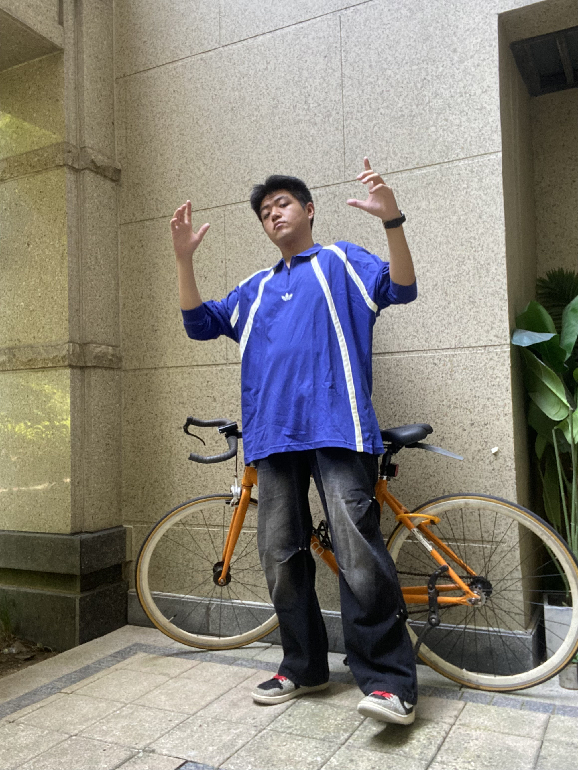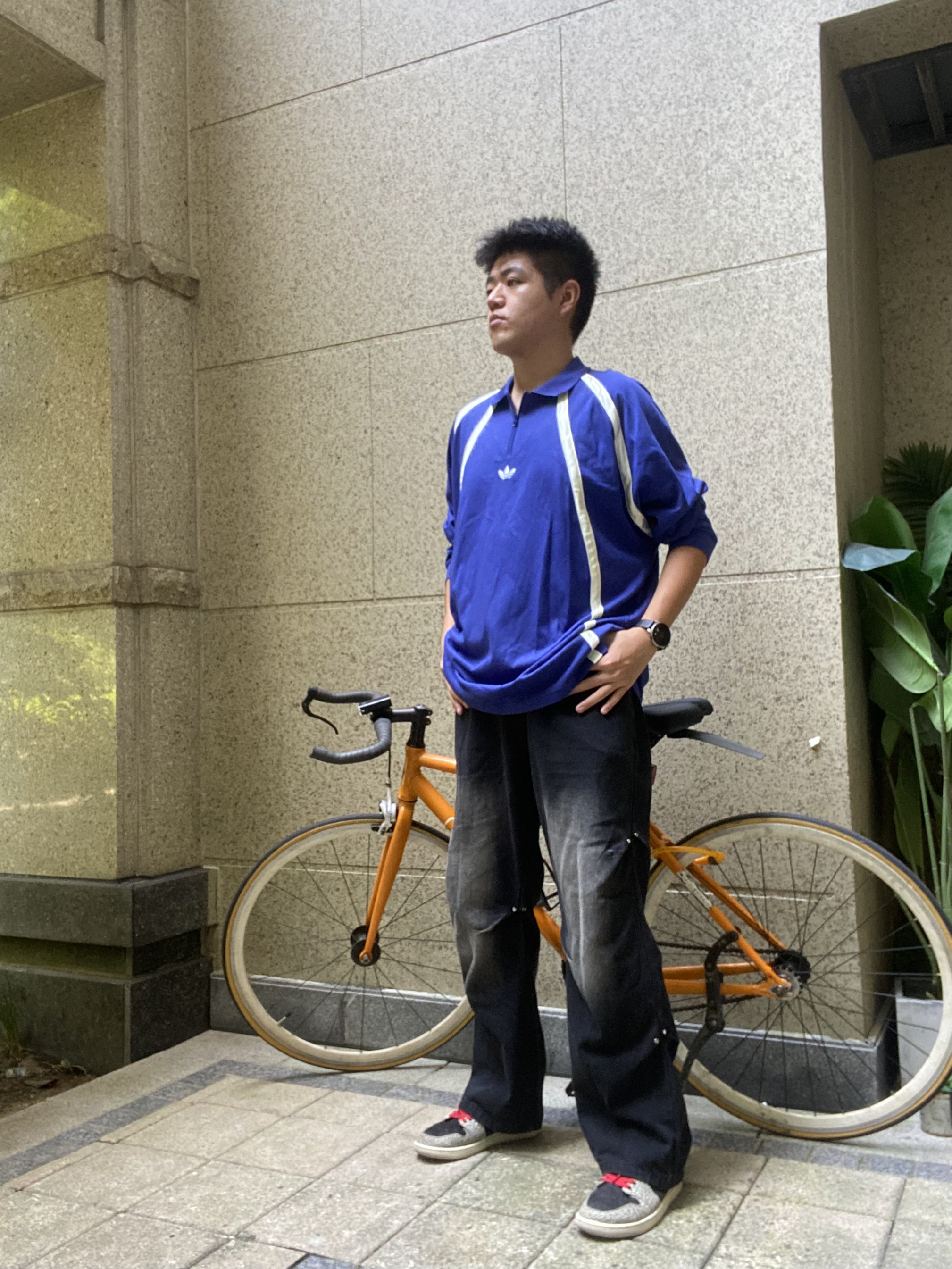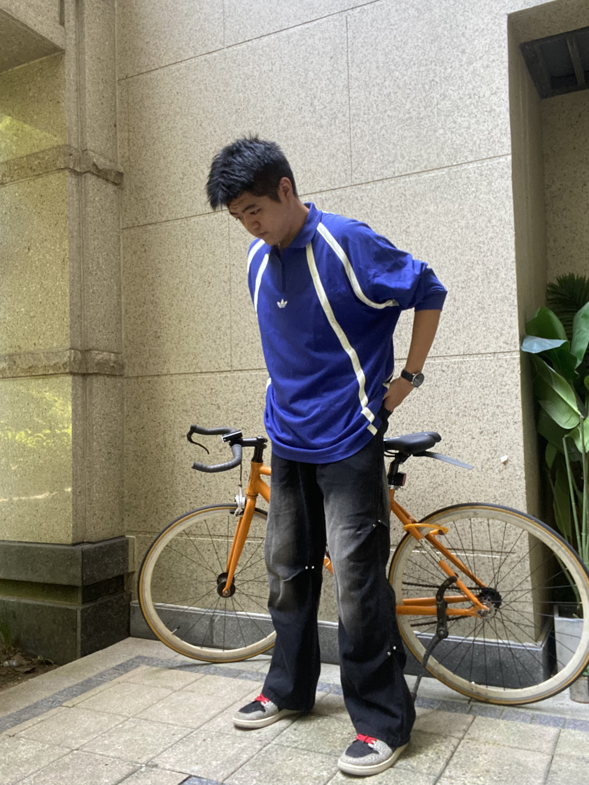 秋冬才是我穿搭风格的主场 上身的是adidas复古风格长袖 卡莱茵蓝的配色搭配黑色牛仔裤 脚上穿的aj1爆裂纹的点缀 潮流风十足