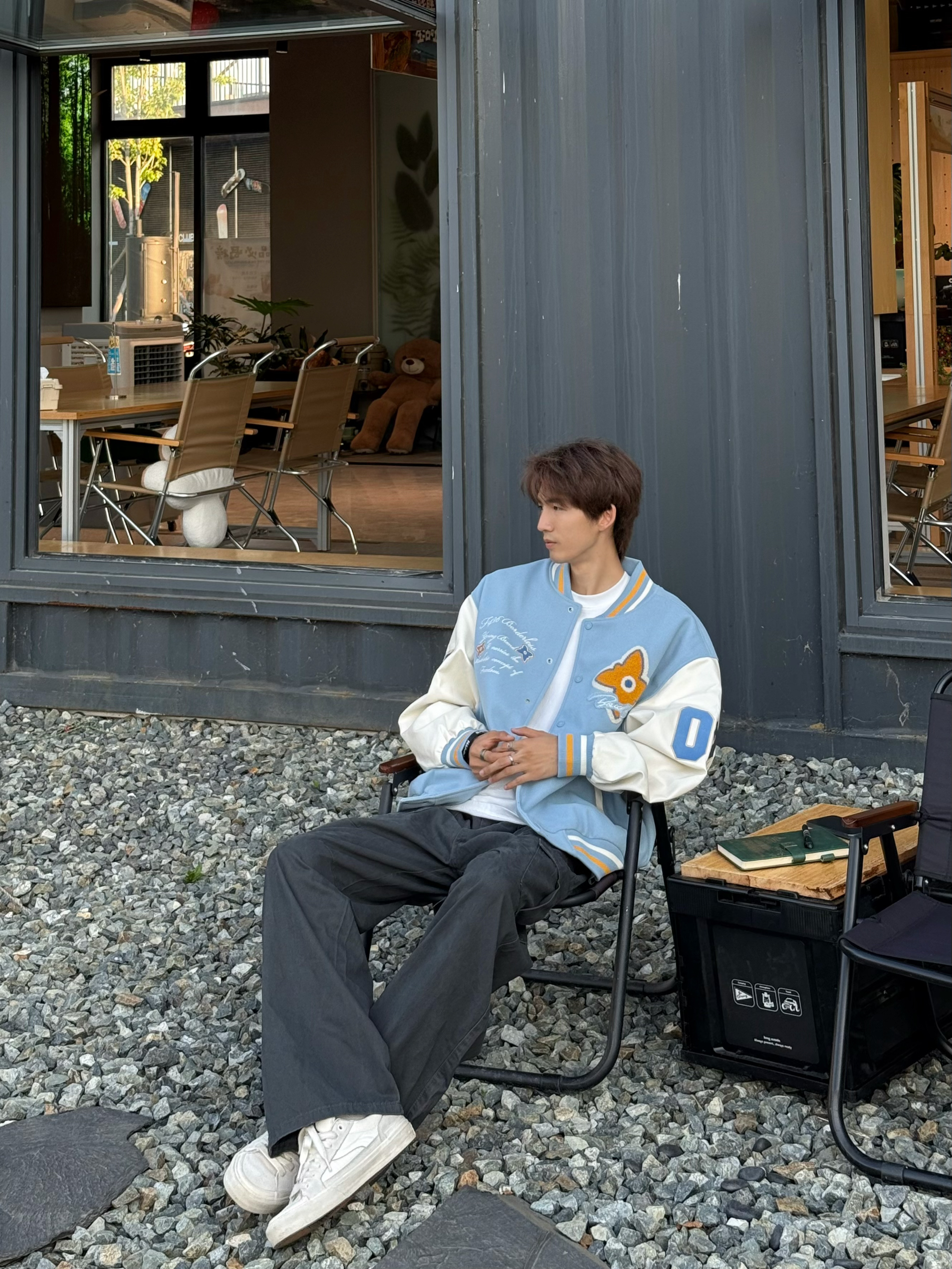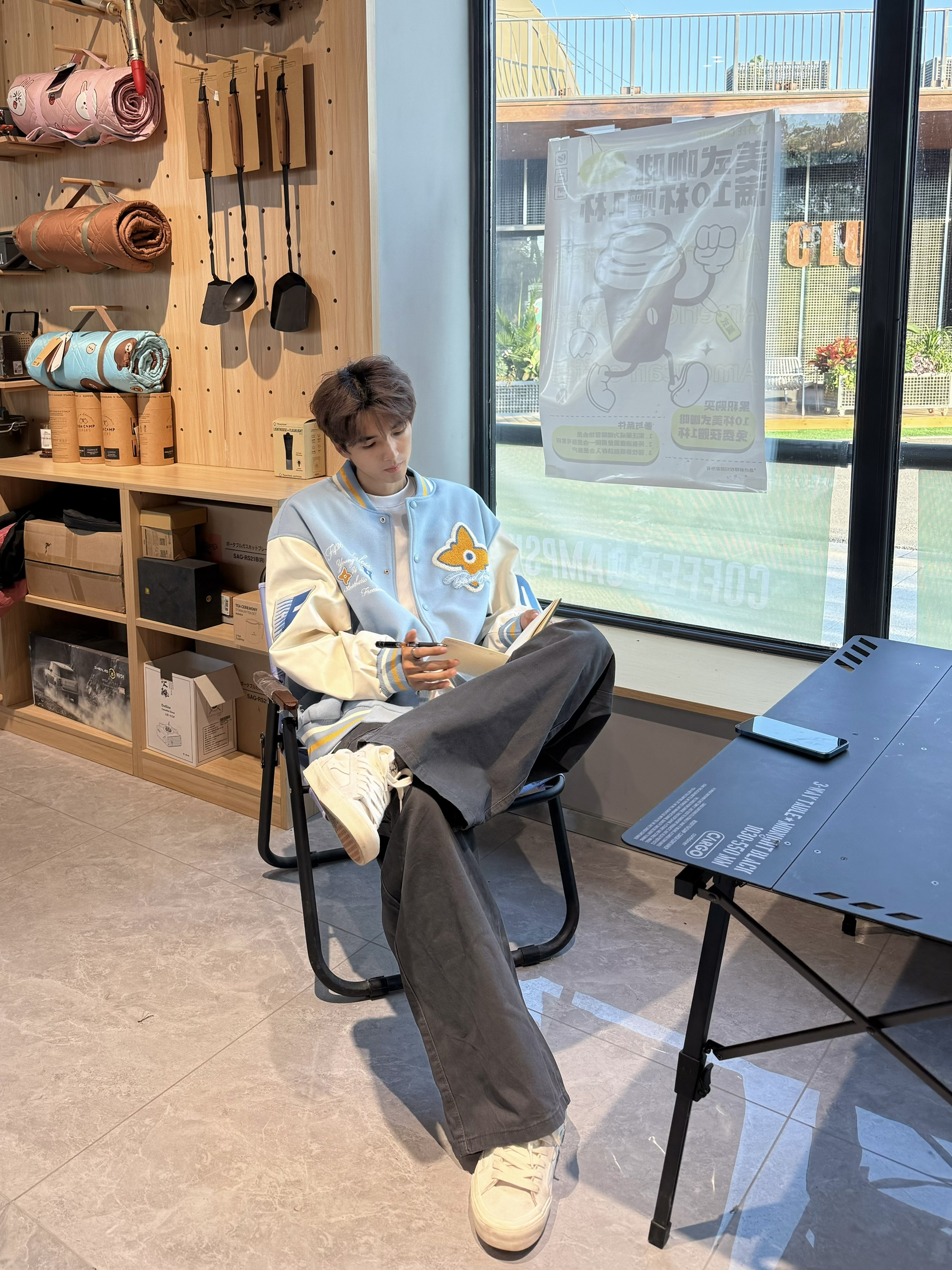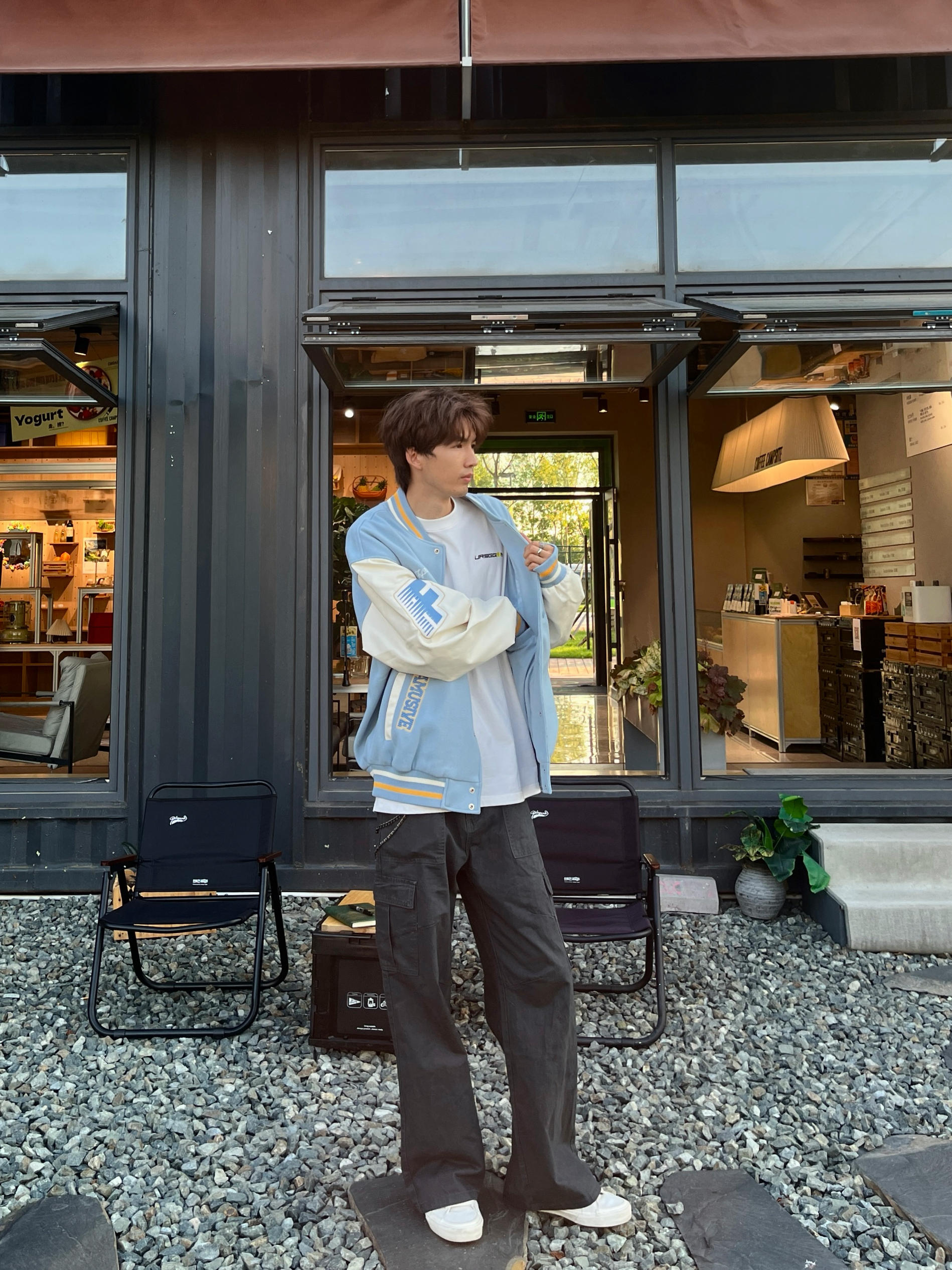 本想着最近去露营BBQ的🍖 奈何这两天赶上暴雨 给我一种快要入秋的即视感🌧️ 趁着下午忙里偷闲 出来整了杯咖啡✌️ 今天棒球服配上灰工装裤 美式潮流和重工基础碰撞 别说 还挺和谐☺️发现这种蓝白搭上浅灰还挺好看 可以说灰色是真的百搭 每天穿点自己喜欢的颜色 真的能开心一整天🤗