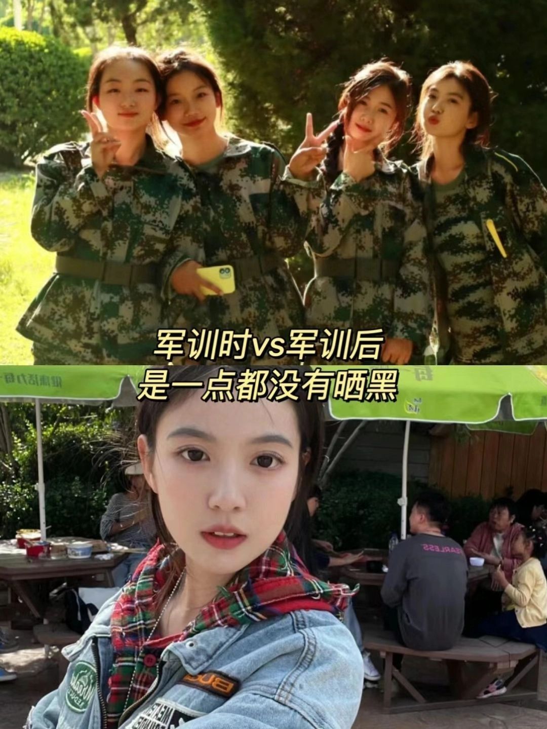太喜欢这张军训被抓拍的照片了 “有种被光选中的感觉 美好又恬静” 军训半个月一点没被晒黑 反而肤色还亮了几个度 当然是有我自己的“秘诀”啊哈哈哈 给宝宝们分享一下吧 ①多喝水 一到休息时间就立刻补水,军训强度太大了,容易脱水 ②规律作息,泡泡脚 早睡早起,每天泡泡脚,放松一下会睡得更好 ③不吃垃圾食品,饮食健康 。三餐尽量规律,荤素搭配,不要挑食 ④一定要记得涂防晒霜 防晒霜是军训必不可少的,我...