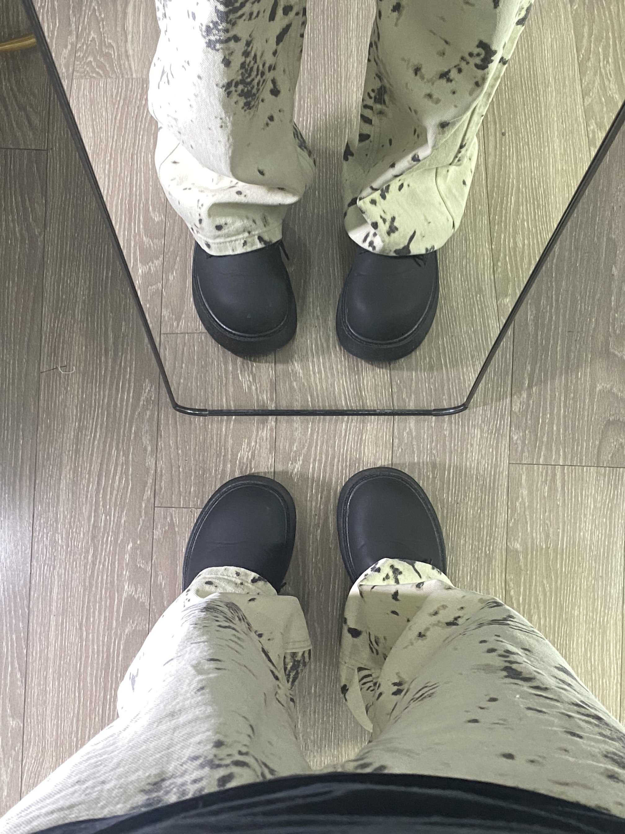 TLONELY1 牛仔裤不只是黑白蓝色才能搭 豹纹牛仔裤刚上身就超级超级绝 没穿过真的不知道有多好穿 搭配德比大头鞋 穿搭太百搭了