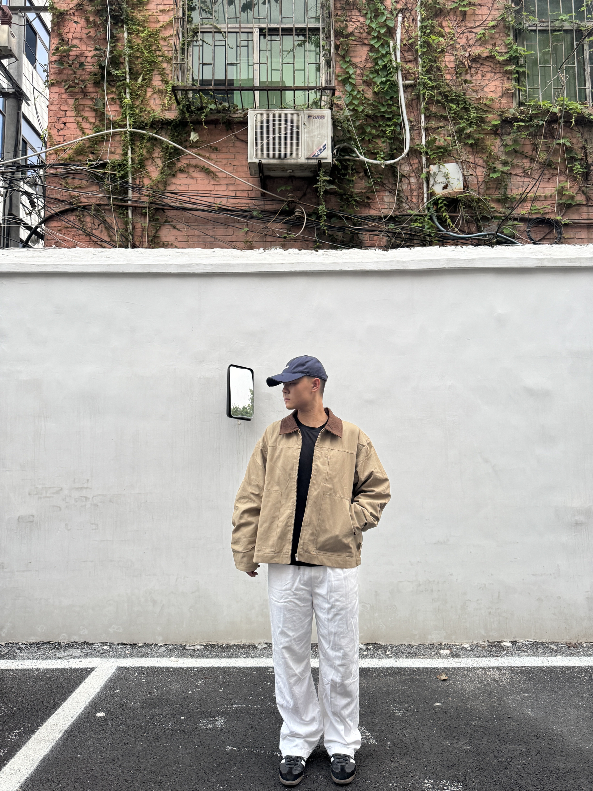 这款夹克上身之后感觉很帅啦 宽松的版型,真的很显身材 走线设计做的都很精致 经典百搭的颜色搭配白裤子都很出片 拿捏松弛感的一天 我身高180体重80kg穿xl码