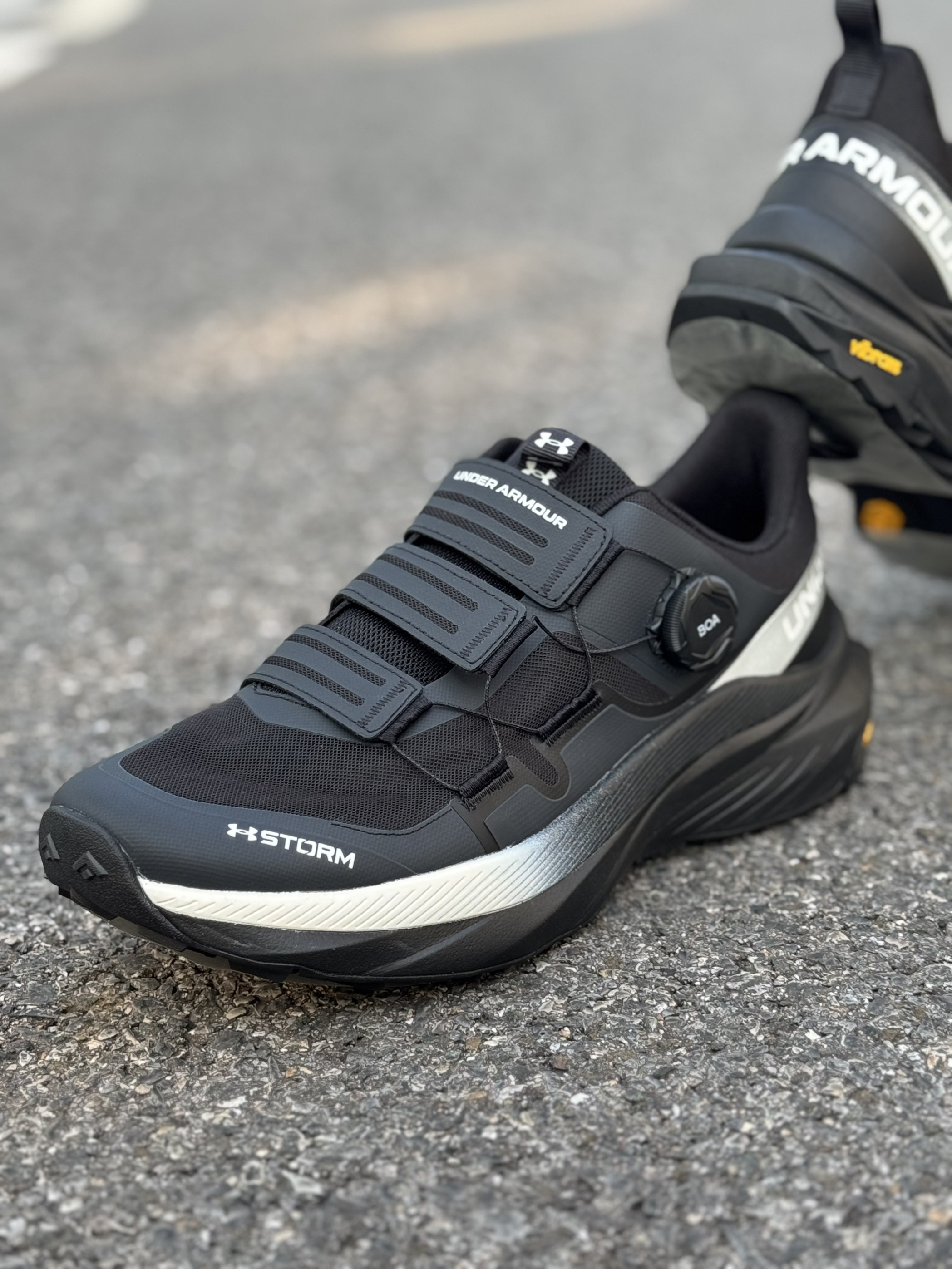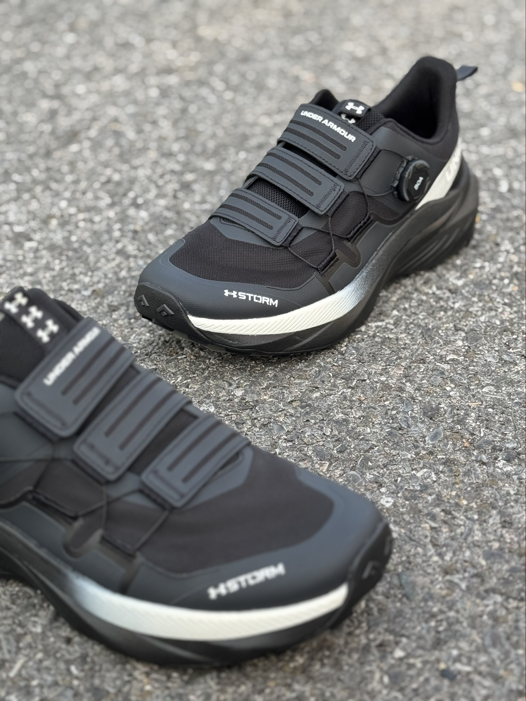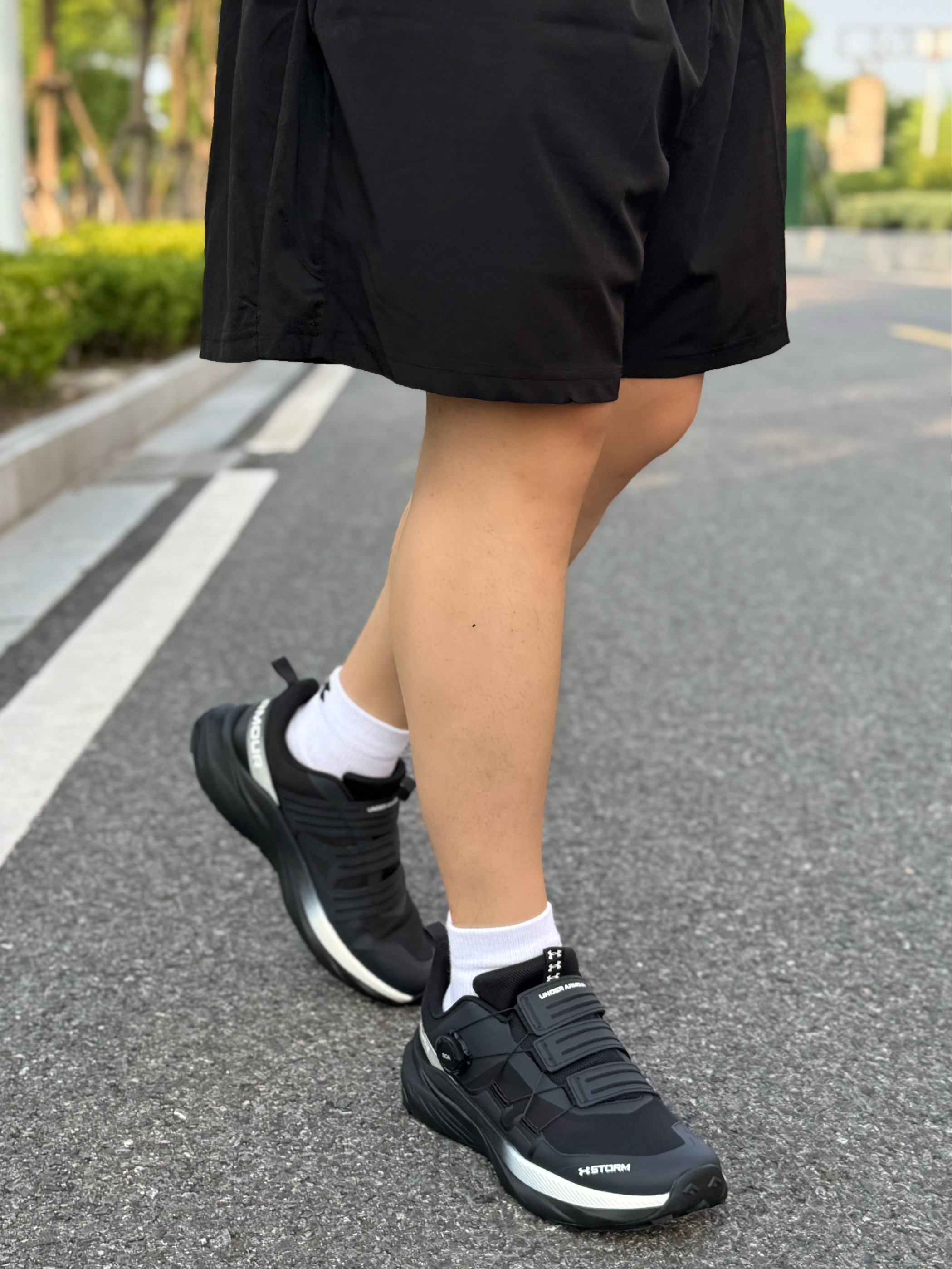 hello,这里是坏蛋小玖 这双安德玛是我最近常穿的跑鞋👟 黑白熊猫配色的外观,经典又百搭~ 鞋侧旋钮扣➕鞋身品牌名和logo的设计 带有一丝时尚感和辨识度✨ 同时穿脱也比较方便,不卡脚踝🦶 鞋面采用网面➕合成革拼接打造 结合织物的内里,夏天透气性得到保障🌬️ 4公分的发泡中底➕Vibram橡胶大底 穿着缓震回弹性以及户外抓地防滑表现都还不错👍 对了,这款鞋作为日常通勤也好搭配 休闲裤、牛仔裤、短...