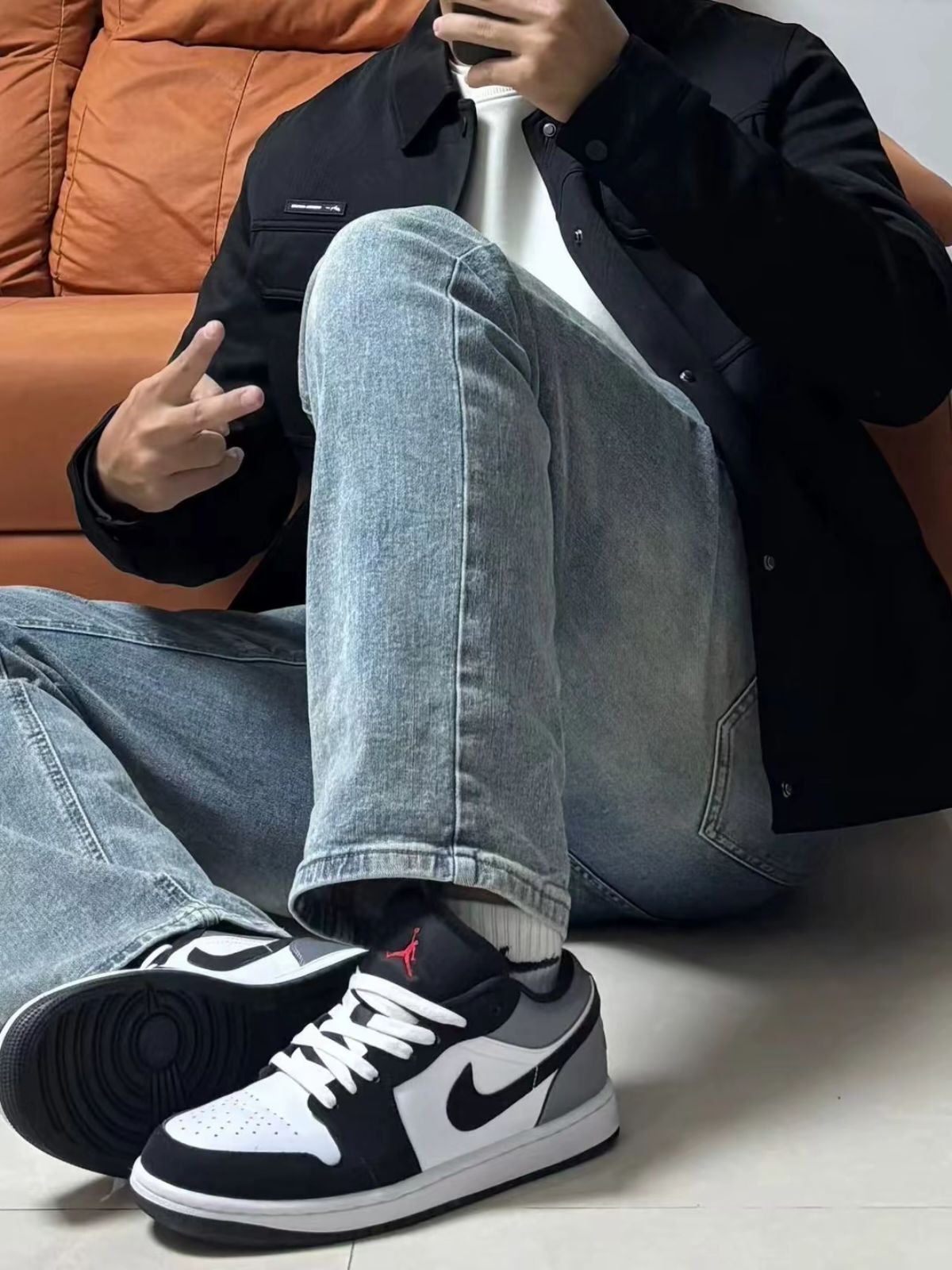 好喜欢这种松弛感 蓝色复古外套 搭配 #Double dealer 牛仔裤 宽松版型 很修饰腿型 搭配蓝色鲨鱼鞋 少年帅气感拉满~