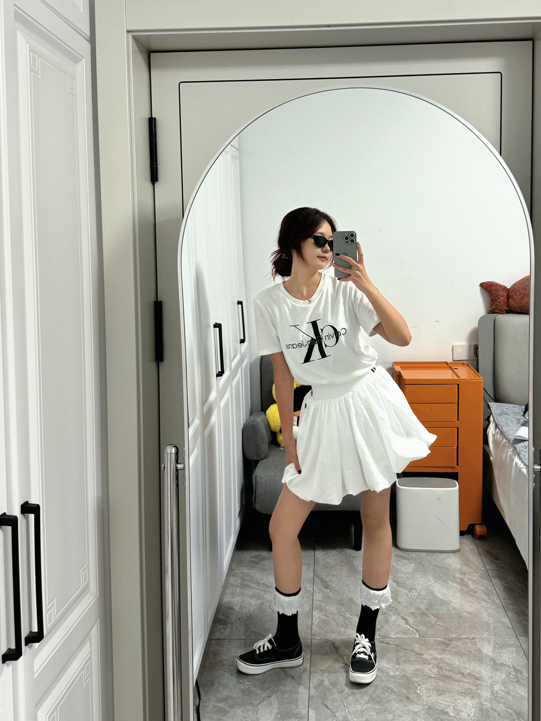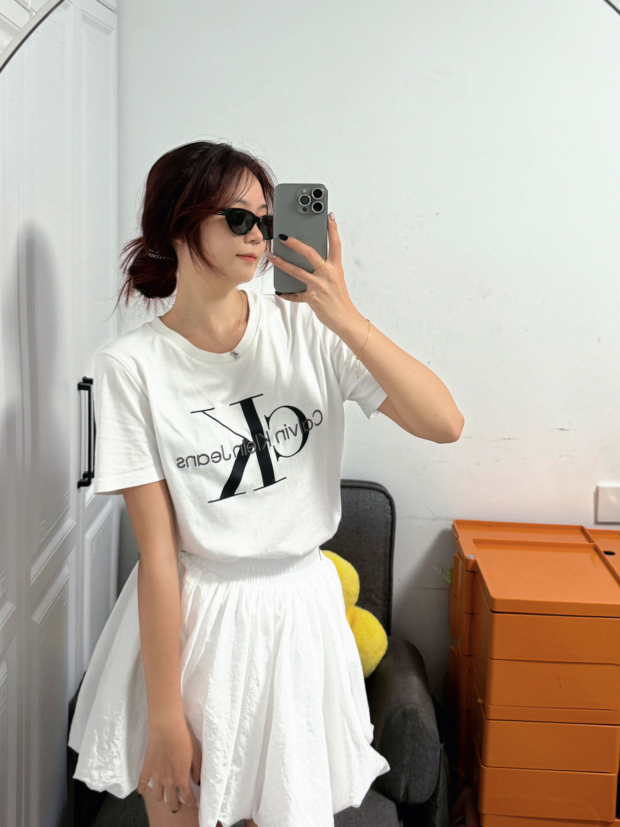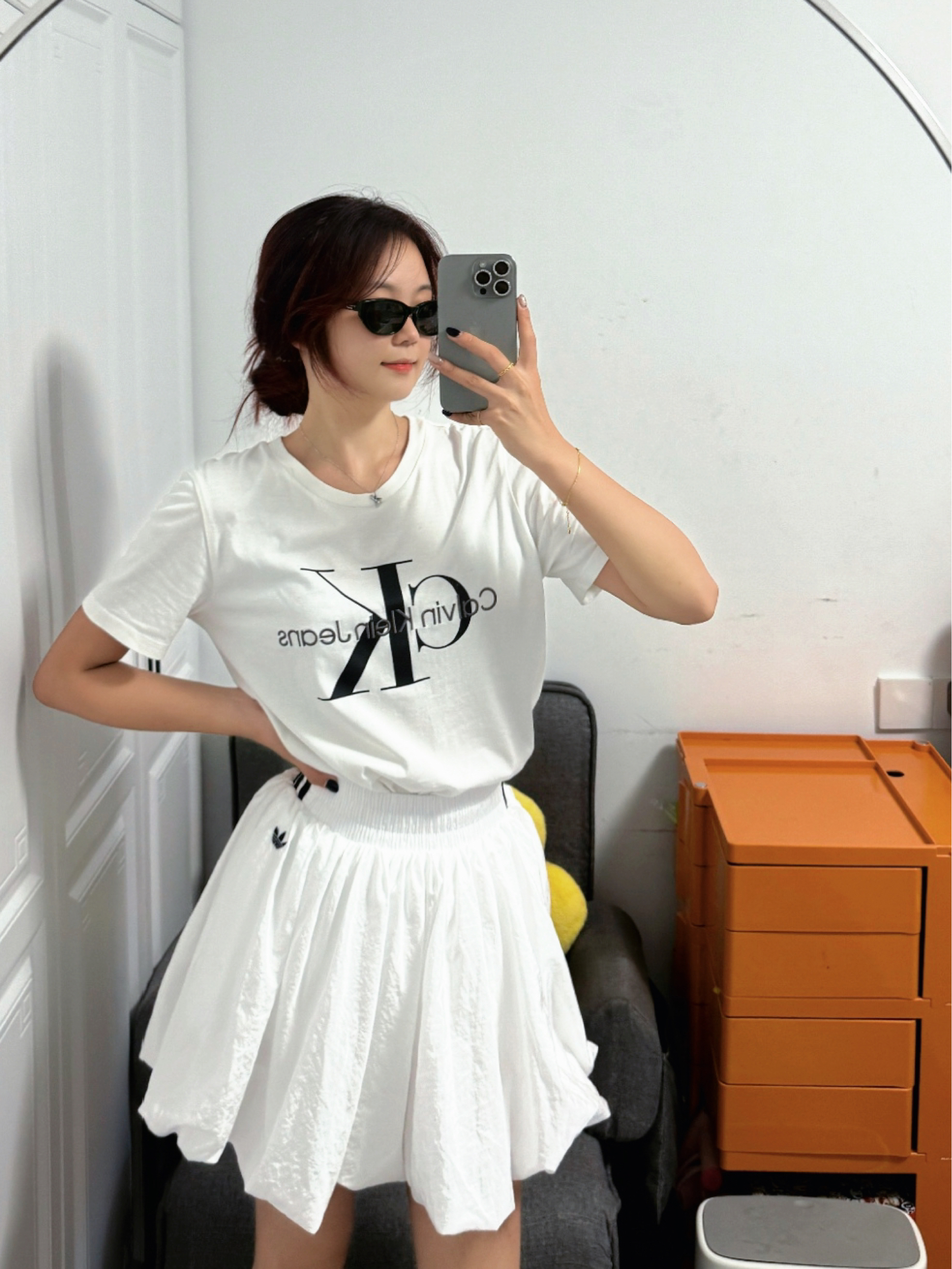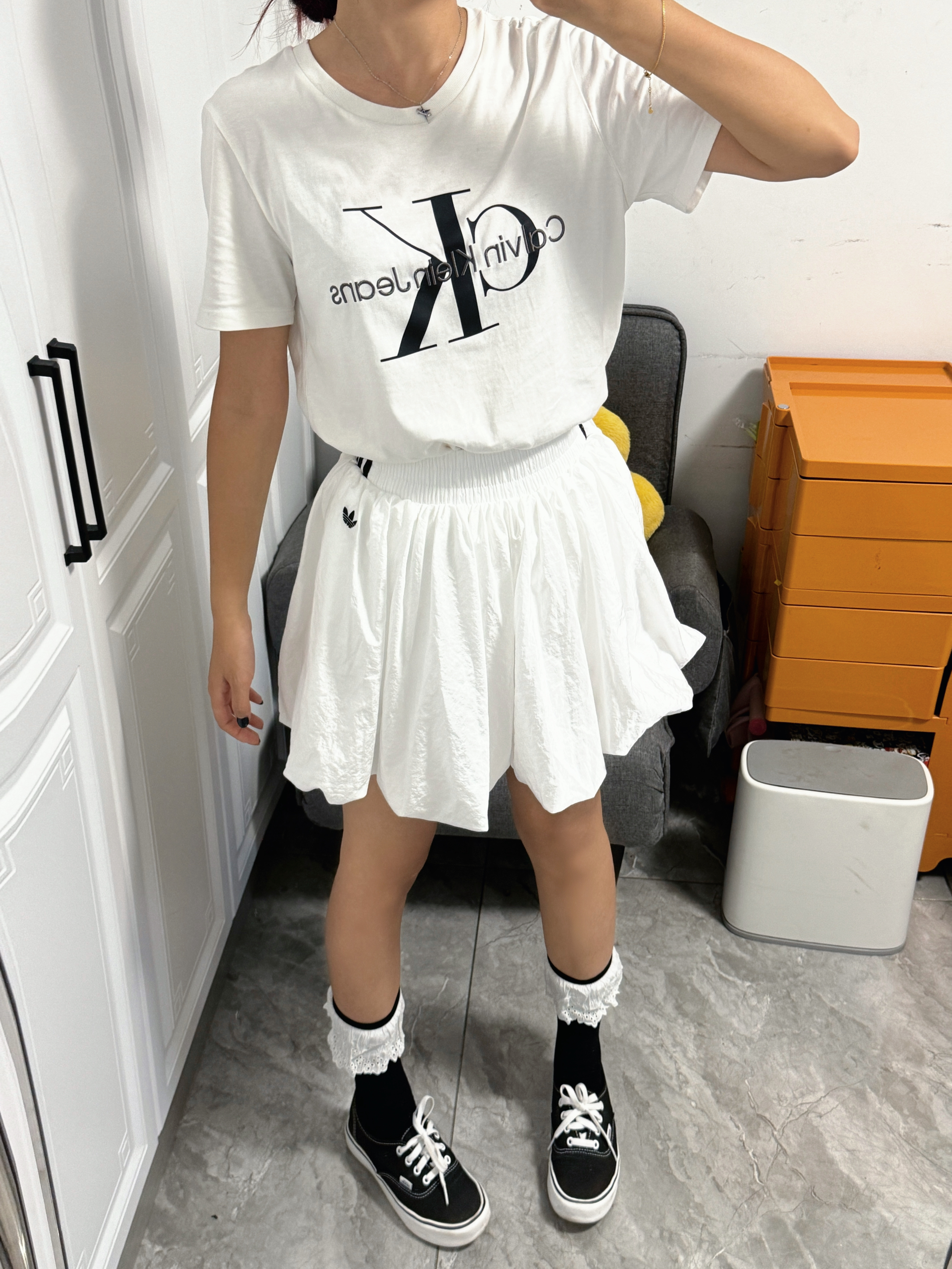 ck和阿迪达斯简直就是绝配! ck经典白色短袖搭配阿迪达斯白色蓬蓬裙🤍简直不要太合适,上身一整个温柔可爱小公主即视感,面料也很舒适,版型也敲显瘦哒~ 日常不知道怎么穿的姐妹可以试试这套穿搭哦~