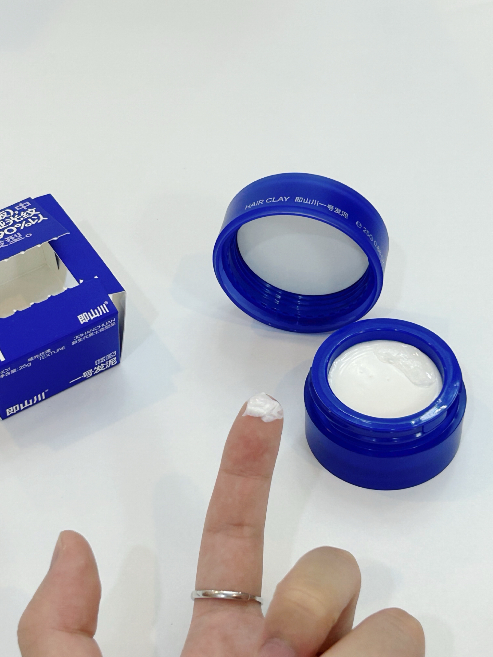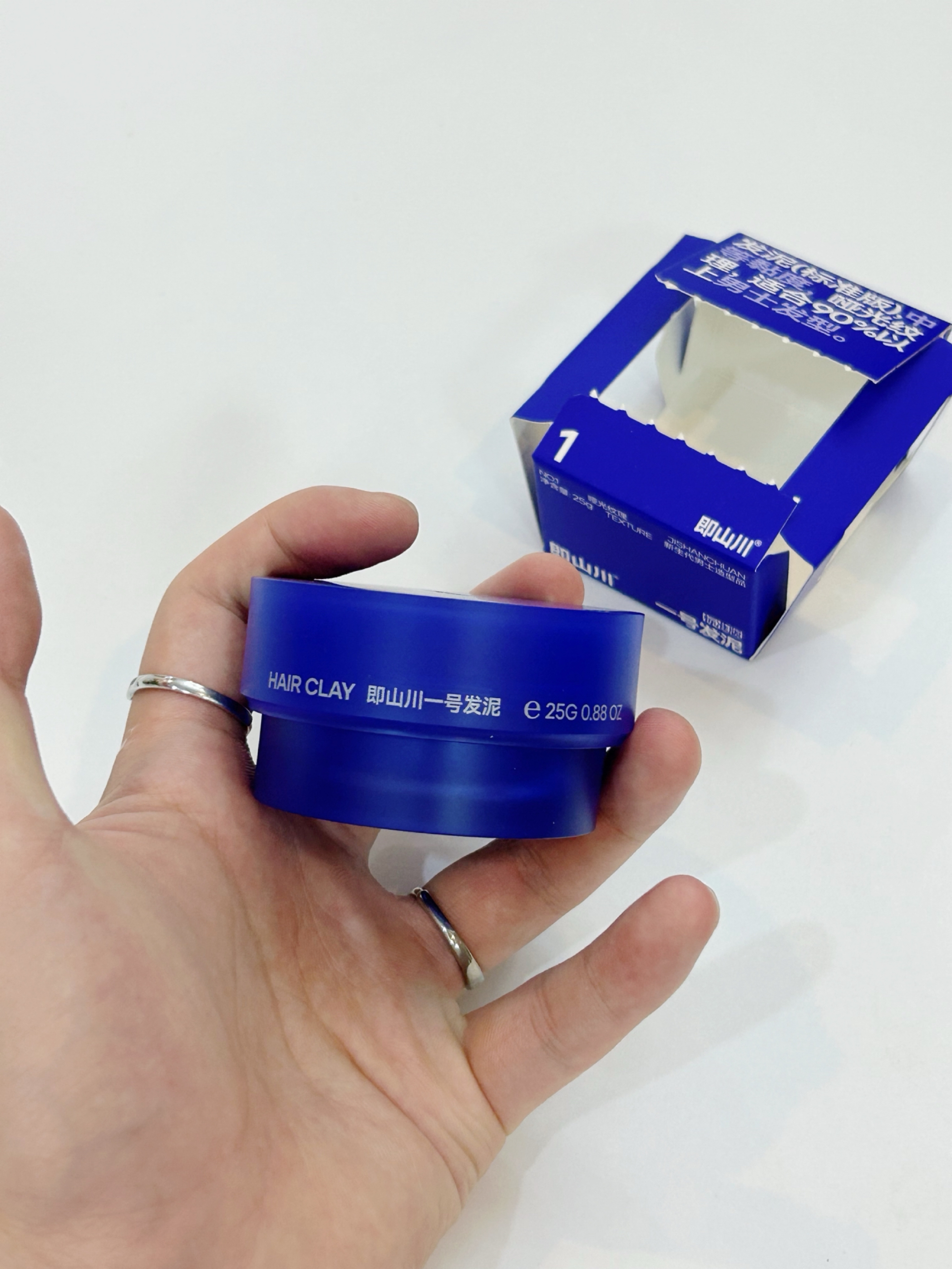 细软塌的发质每次出门真的很没精神 最近买了 即山川 的纹理发泥 蓝色包装很精致 小巧易携带 容量也很够用 质地是白色 很细腻 每次出门前抓黄豆粒大小的发泥到手指 搓开抹在发根 抓出自己喜欢的发型 很快就可以风干 风干后不会粘腻 也很自然 想要什么发型随便抓 特别方便 塑形的效果也很好 自然活动一天都不会乱!