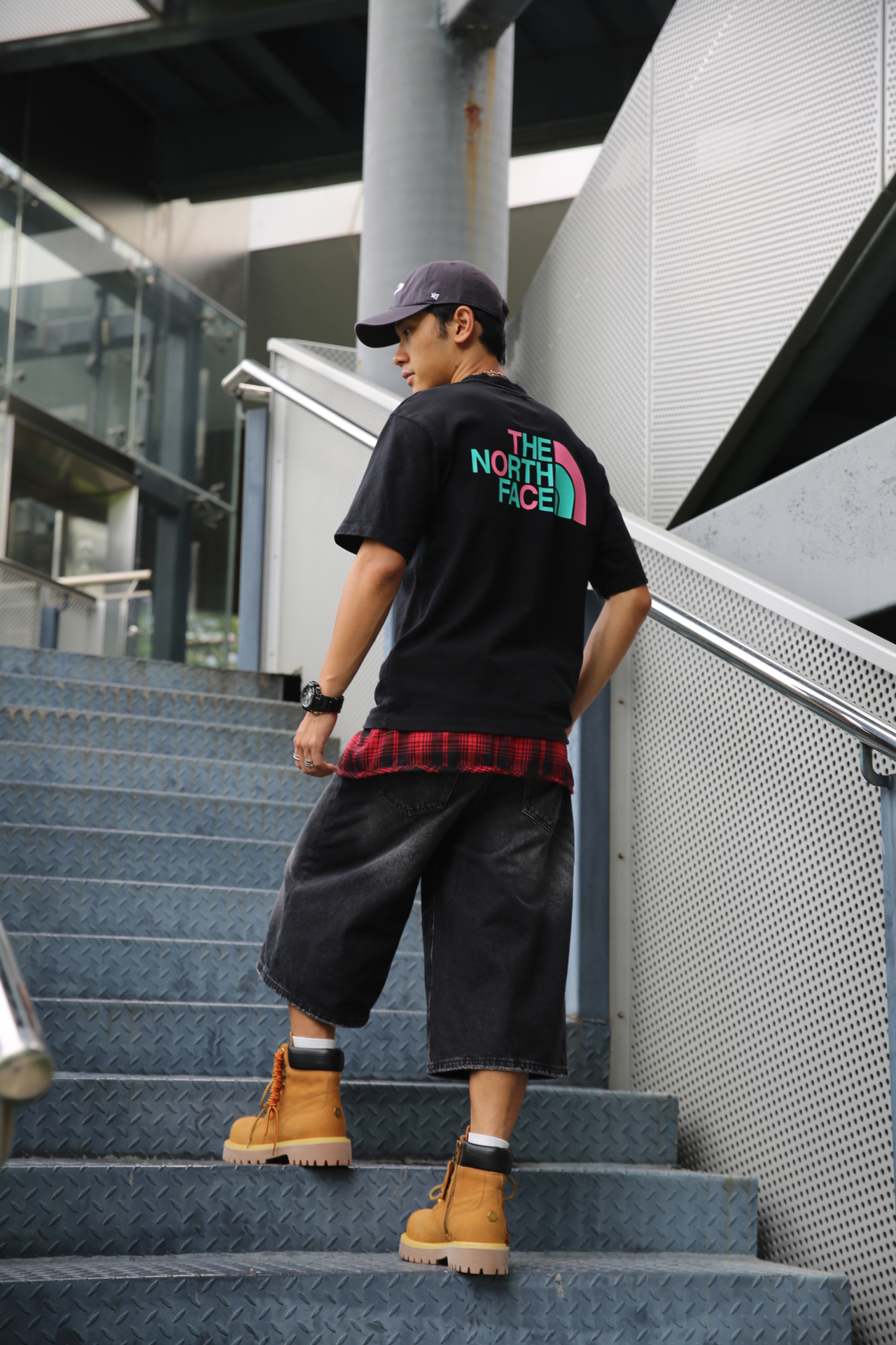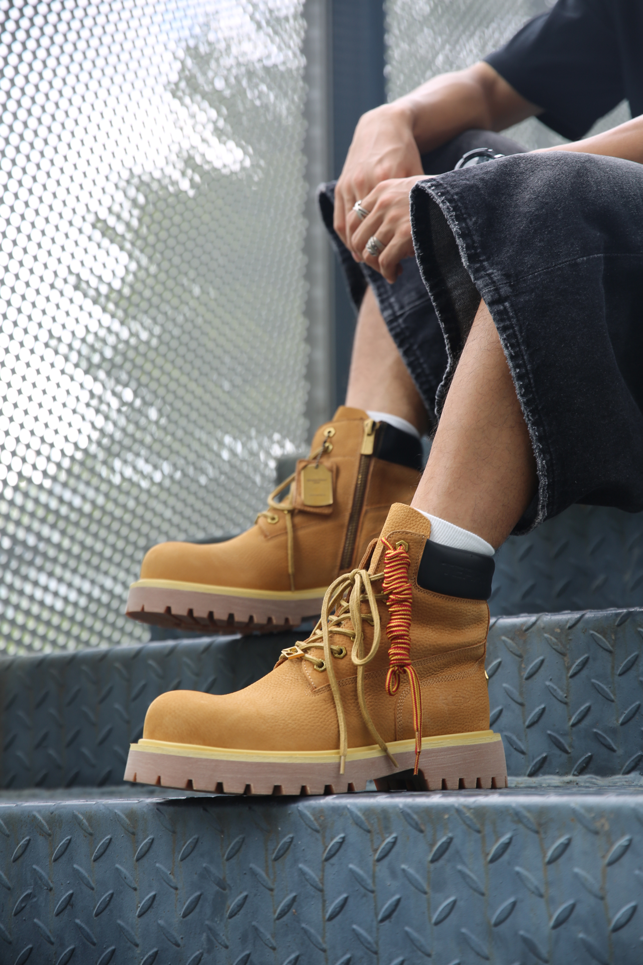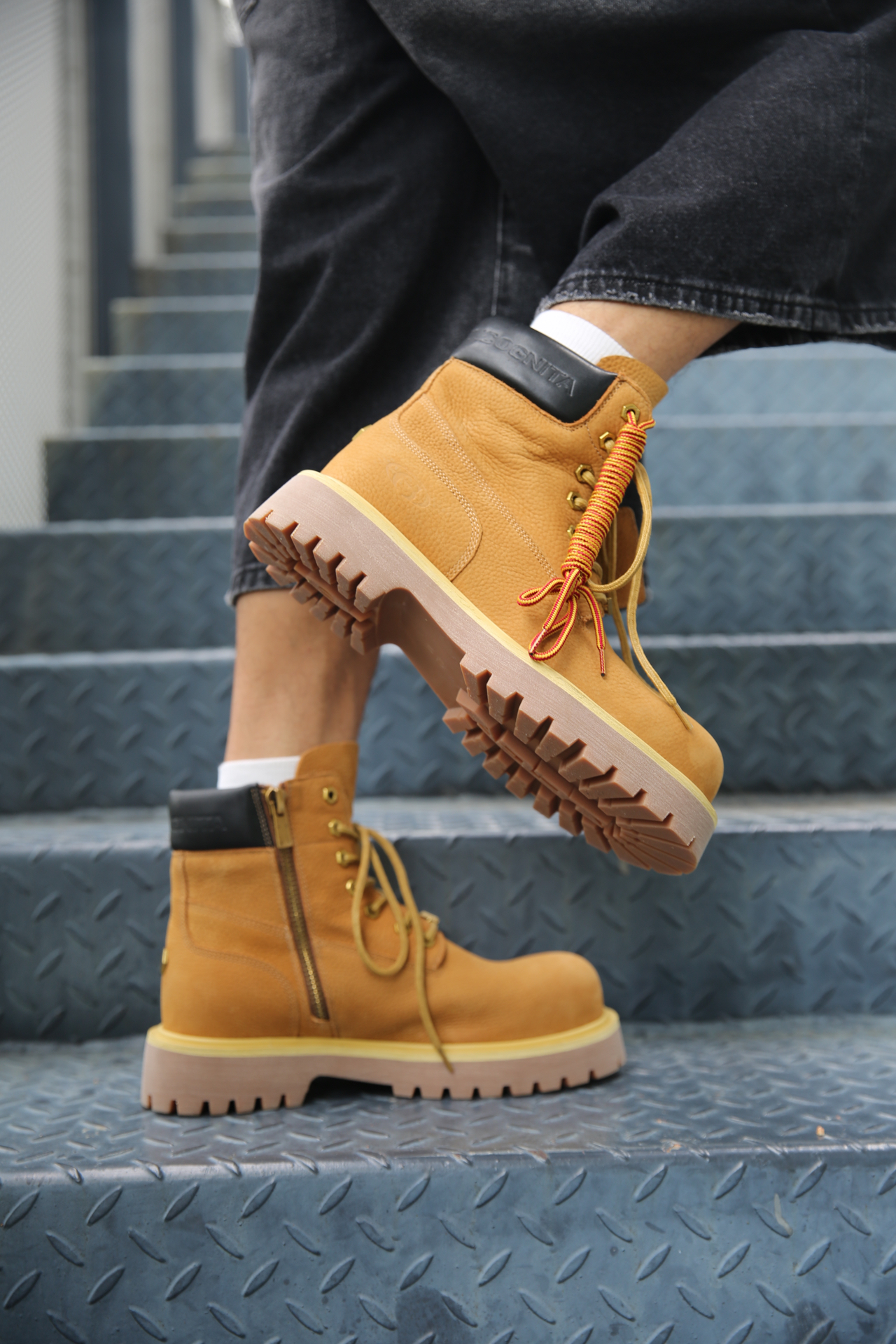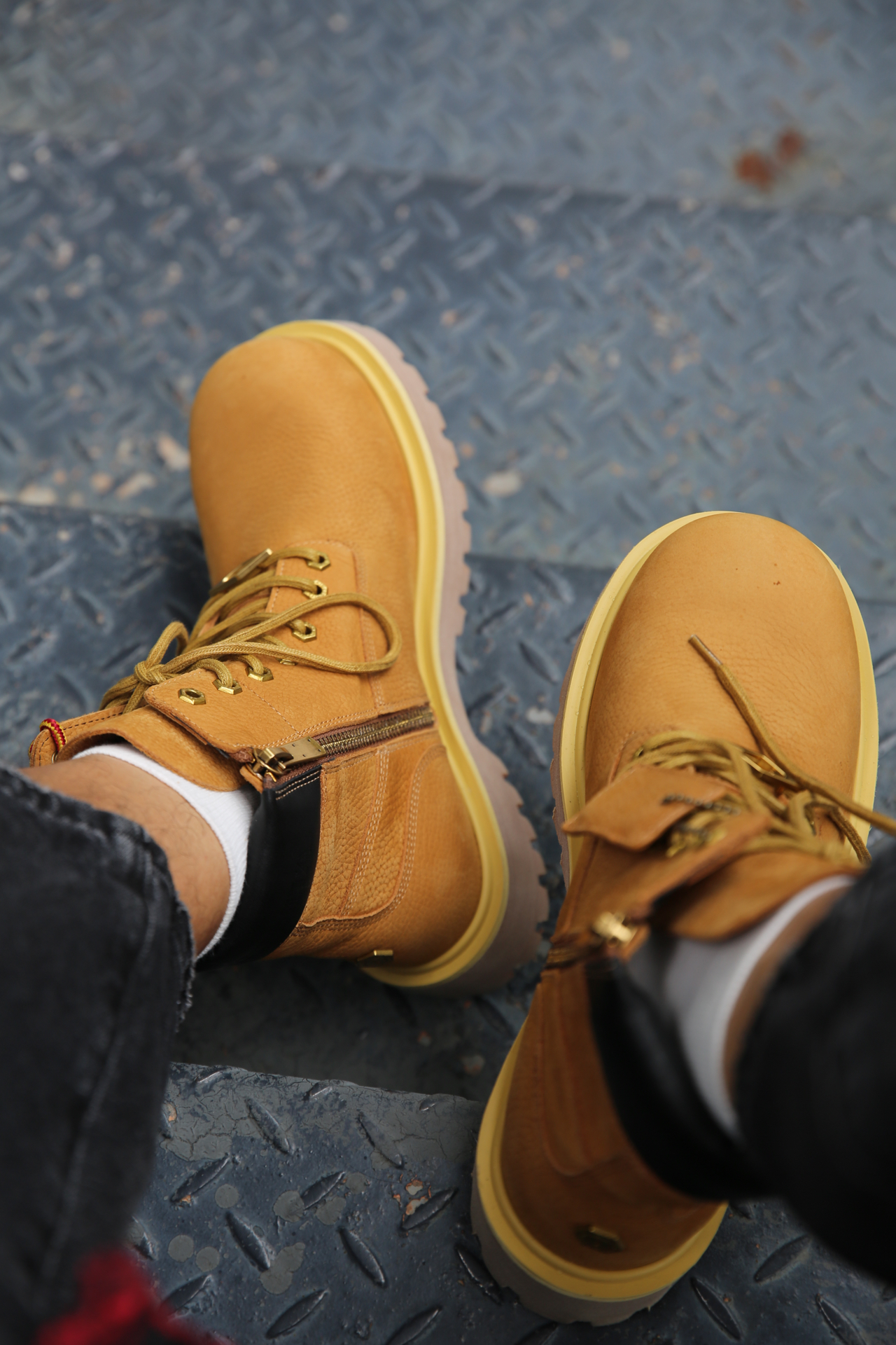 🔸黑T配复古七分牛仔,再叠一件黑红衬衫,层次感直接拉满。 🔸脚上大黄靴稳住全场,棕黄配色经典到不行,质感也够硬核。侧拉链设计是真方便,懒人一脚蹬就能出门。 🔹整体街头味儿十足,走哪儿都是氛围感担当! #今日份出片ootd #今日份宝藏百搭牛仔裤穿搭 #预热一下秋冬穿搭 #户外牛子裤穿搭分享 #秋冬叠穿法则
