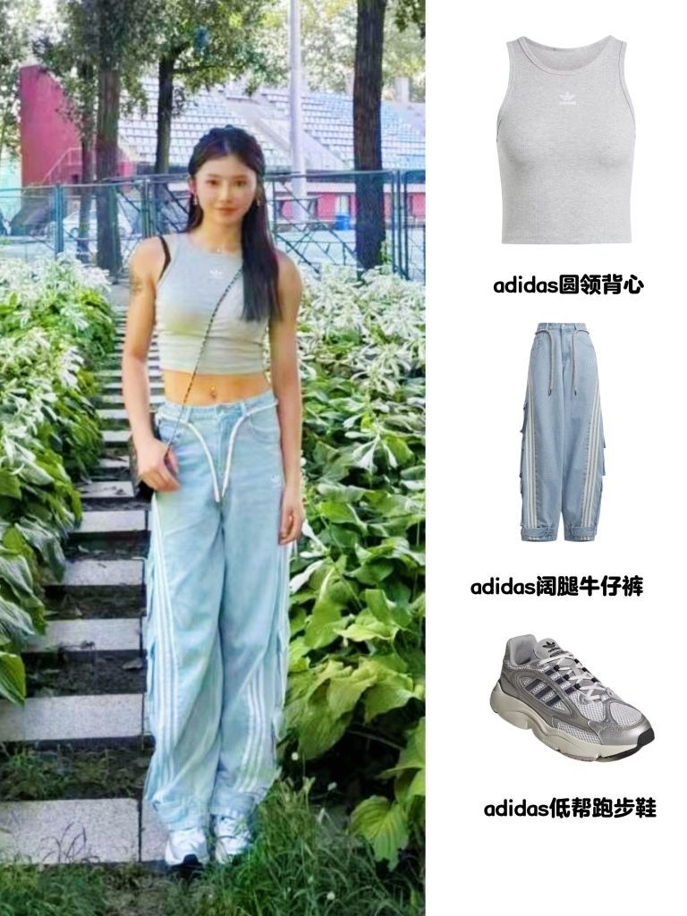 •【adidas圆领背心】侧腰镂空细节暗藏心机 显瘦同时散热满分💨 •【adidas阔腿牛仔裤】遮肉神裤+垂感高腰设计藏住假胯宽 155穿出165既视感👖 •【adidas低帮跑步鞋】踩屎感+轻量化双杀 Cloudfoam中底缓解冲击力 暴走两万步不累脚👟 🔥短top+高腰阔腿裤=教科书级比例优化公式 松紧结合凸显腰线 运动单品混搭出街照样slay