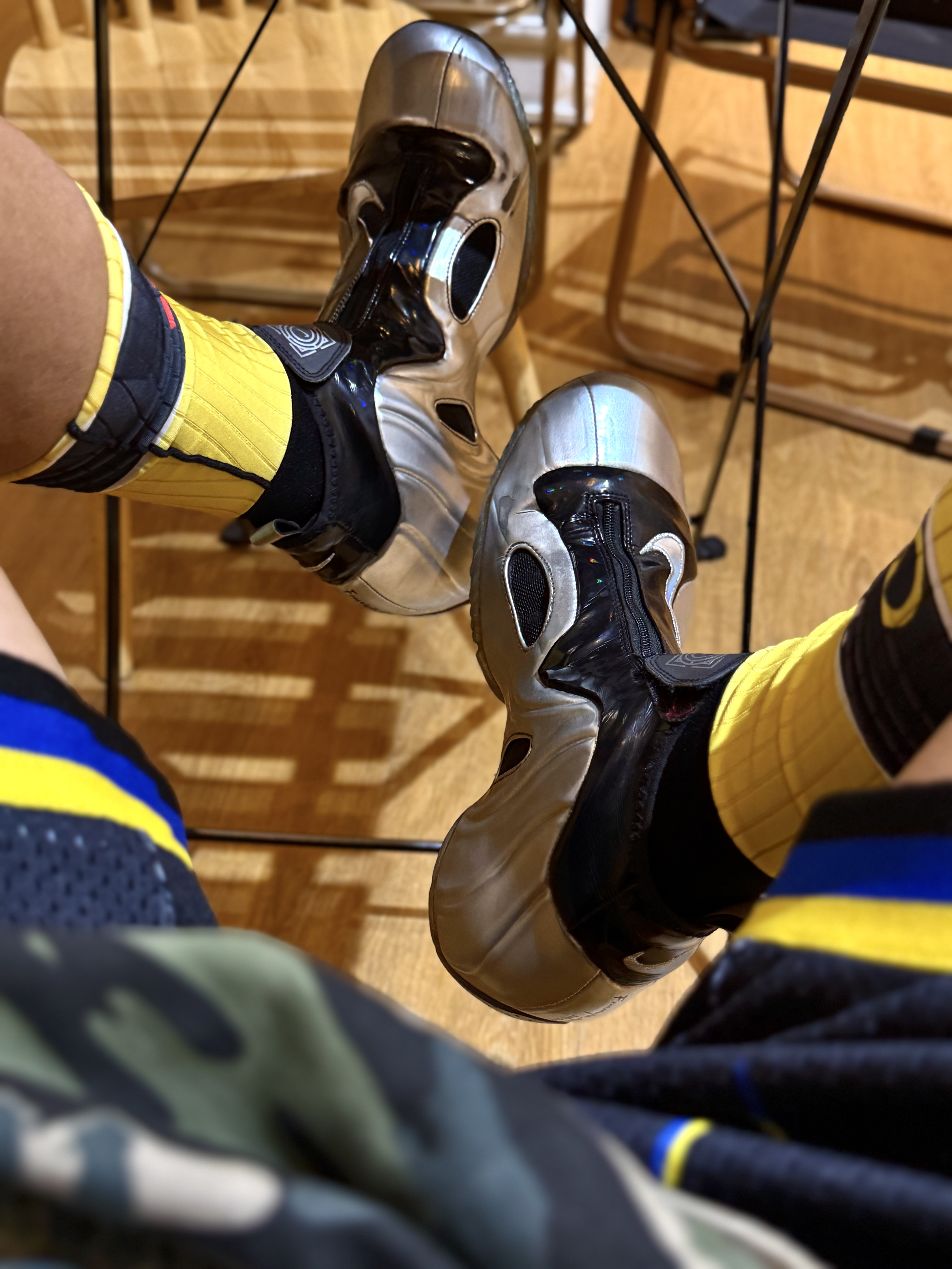 heybro 这里是小熊的球鞋日记👟 尝试用黑黄骑行袜搭配球鞋 做到一双鞋拿捏街头 钢铁战士银色风一本身就十分帅气和美式 🧦搭配黑黄骑行袜 更有黄撞银的色彩碰撞之感 上身穿迷彩美式t恤+下身黑蓝美式短裤 一整套美式感轻松拿捏 但球鞋依旧是穿搭亮点 这样搭配穿这双鞋出街 吸睛度和亮眼度直接max💯 骑行袜与球鞋的搭配 日常你会进行尝试吗❓ #一双鞋拿捏街头 #今日球鞋打卡 #分享宝藏篮球...
