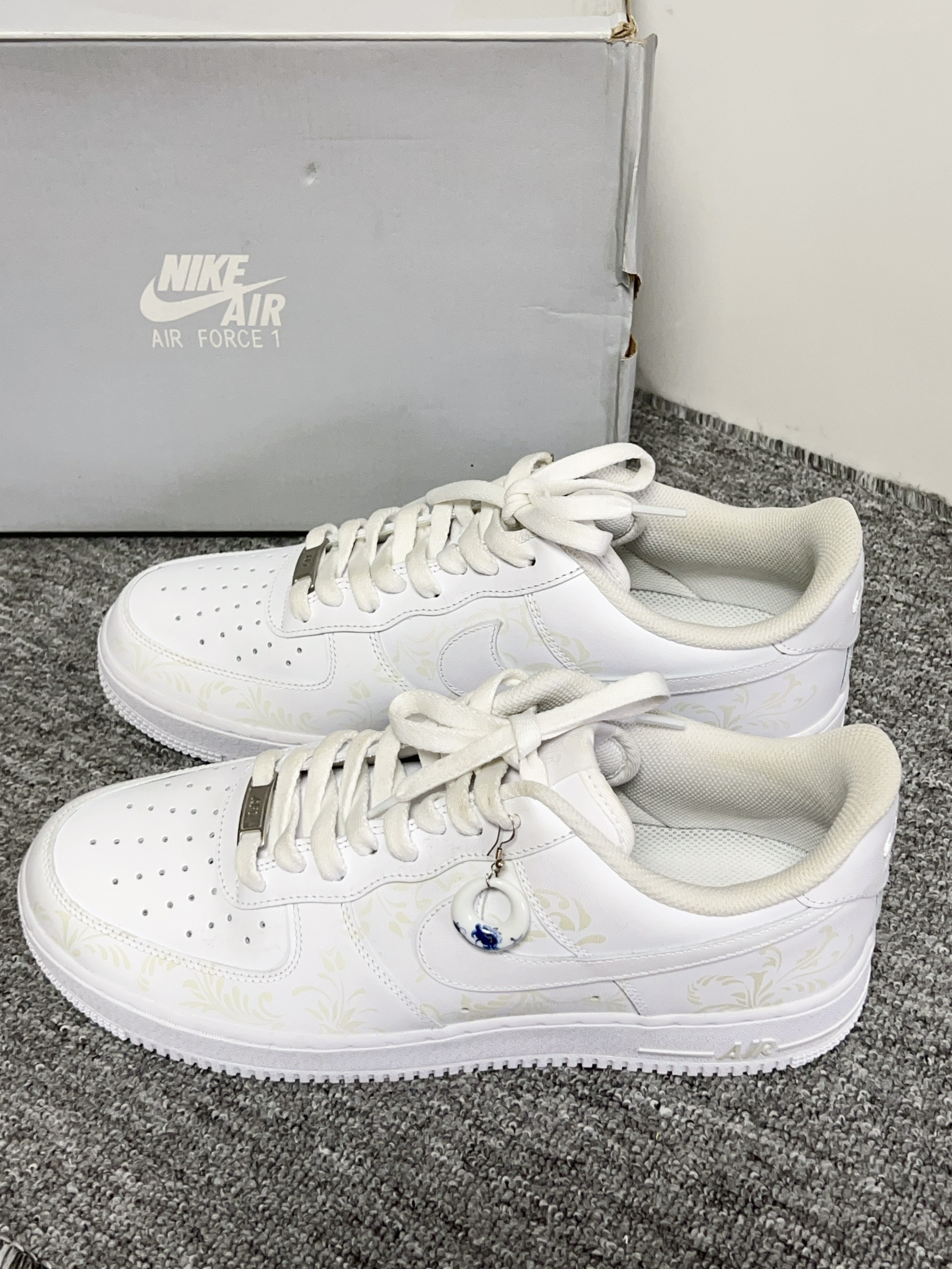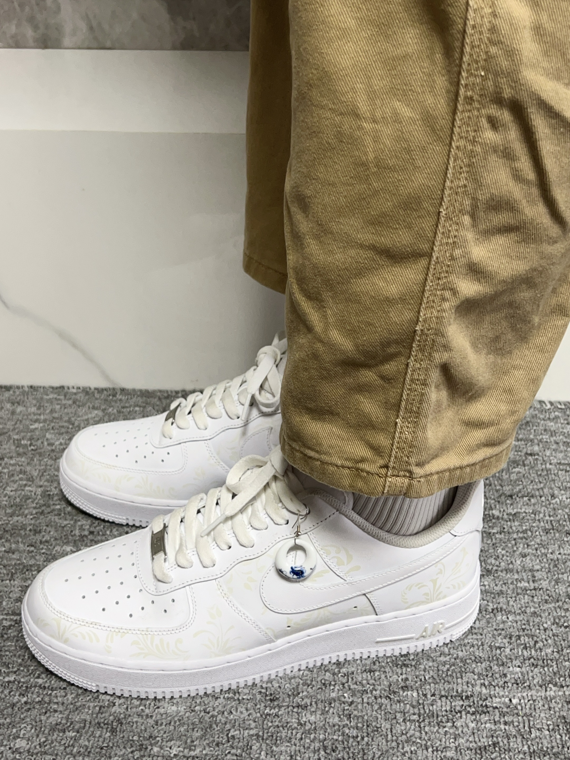 嘻嘻嘻秋天来了天气比较凉快啦 当然要安排新的鞋子穿呀 我觉得Nike定制款的温变青花瓷小白鞋好好看啊 白色鞋面搭配青花瓷印花还蛮有特色的 温度的变化上面的花纹也会有颜色变化 上脚穿蛮舒适的我感觉鞋底软不厚重 搭配牛仔裤 休闲裤都可以不挑 男生女生都可以穿 尊嘟耐斯