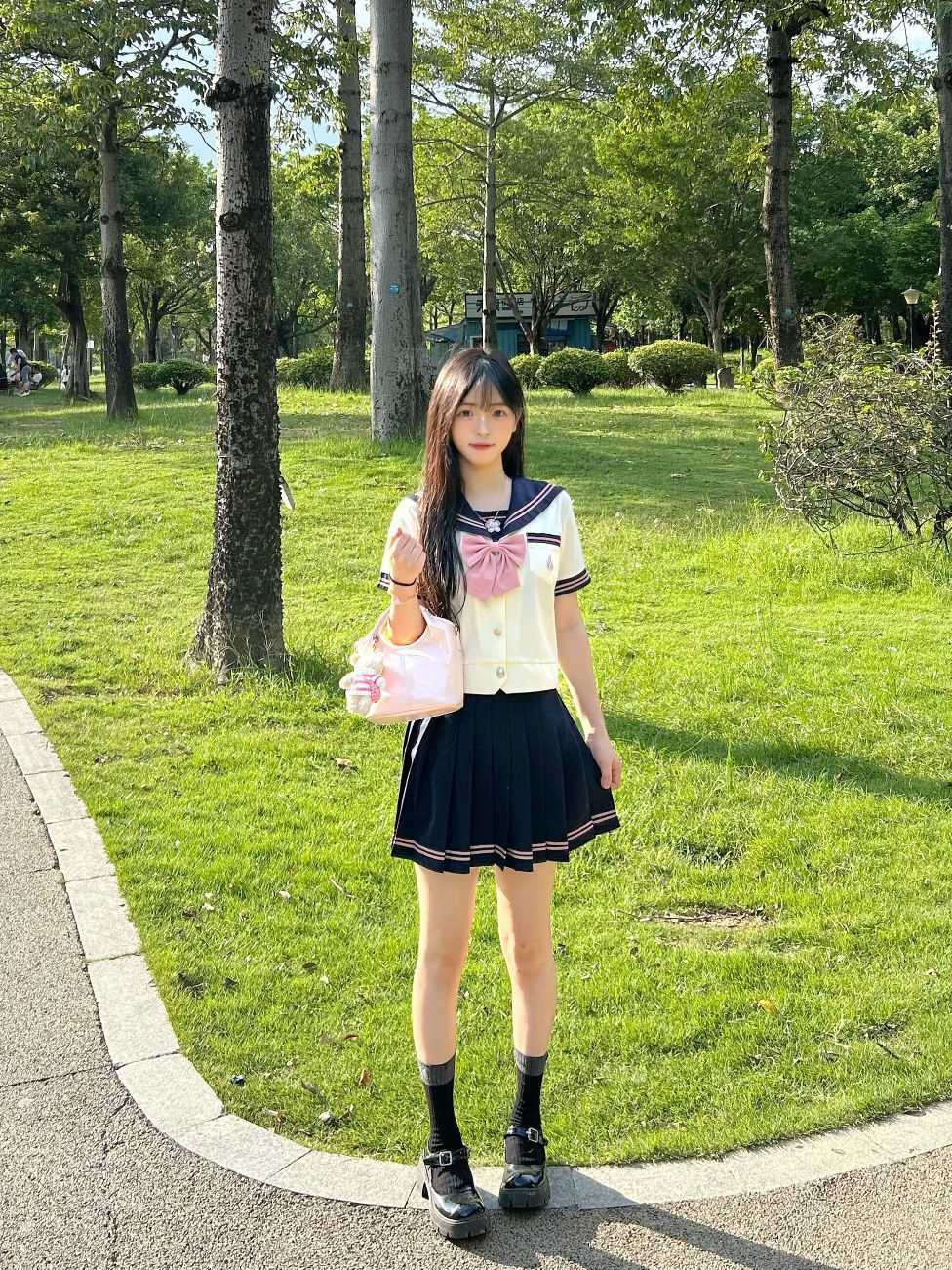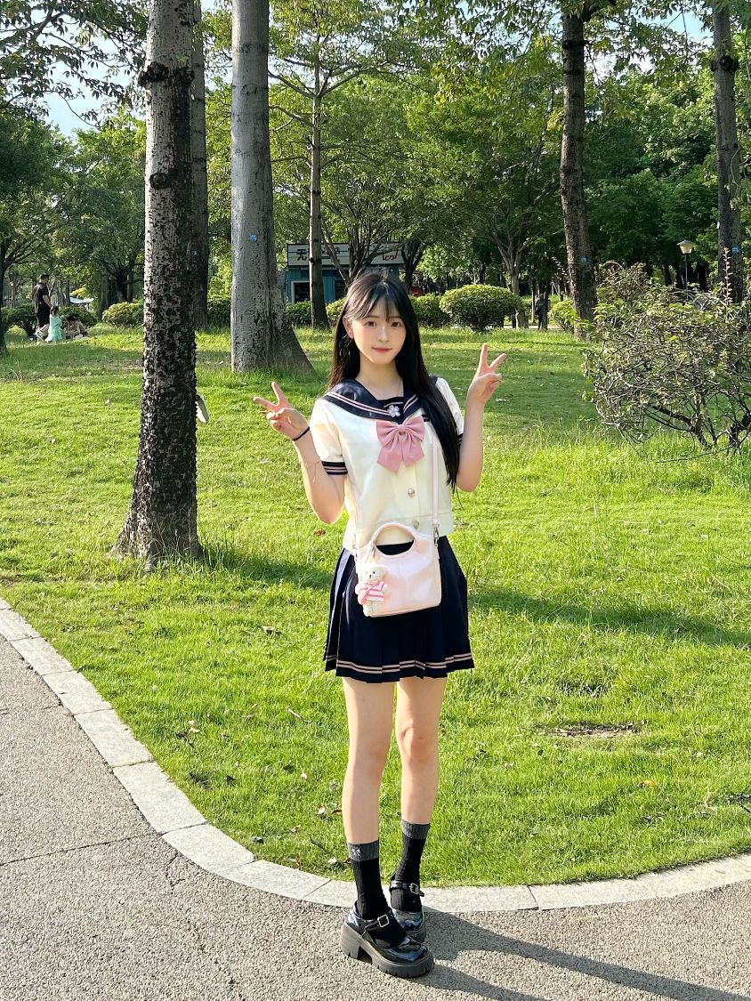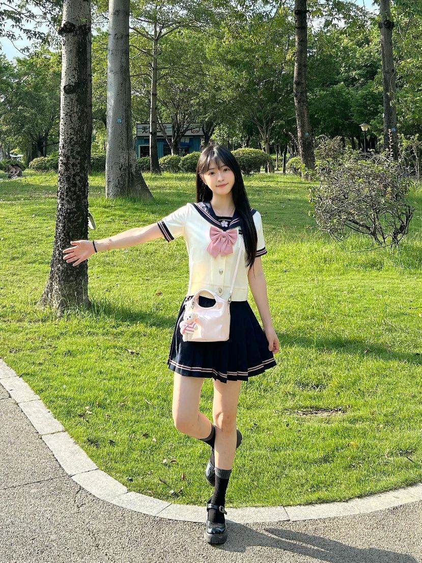 哈喽,家人们,今天的穿搭分享来啦,是一套户外少女感包包👜穿搭分享~ 水手服上衣+粉色蝴蝶结🎀+黑色百褶裙+黑色玛丽珍珠鞋+粉色篮子小方包(可以手提、单肩、斜挎) 一整套户外少女感包包👜穿搭氛围感直接拉满~ 尺码参考: 身高、体重:160、90 衣服:m裙子:m鞋子:36 篮子包:三福