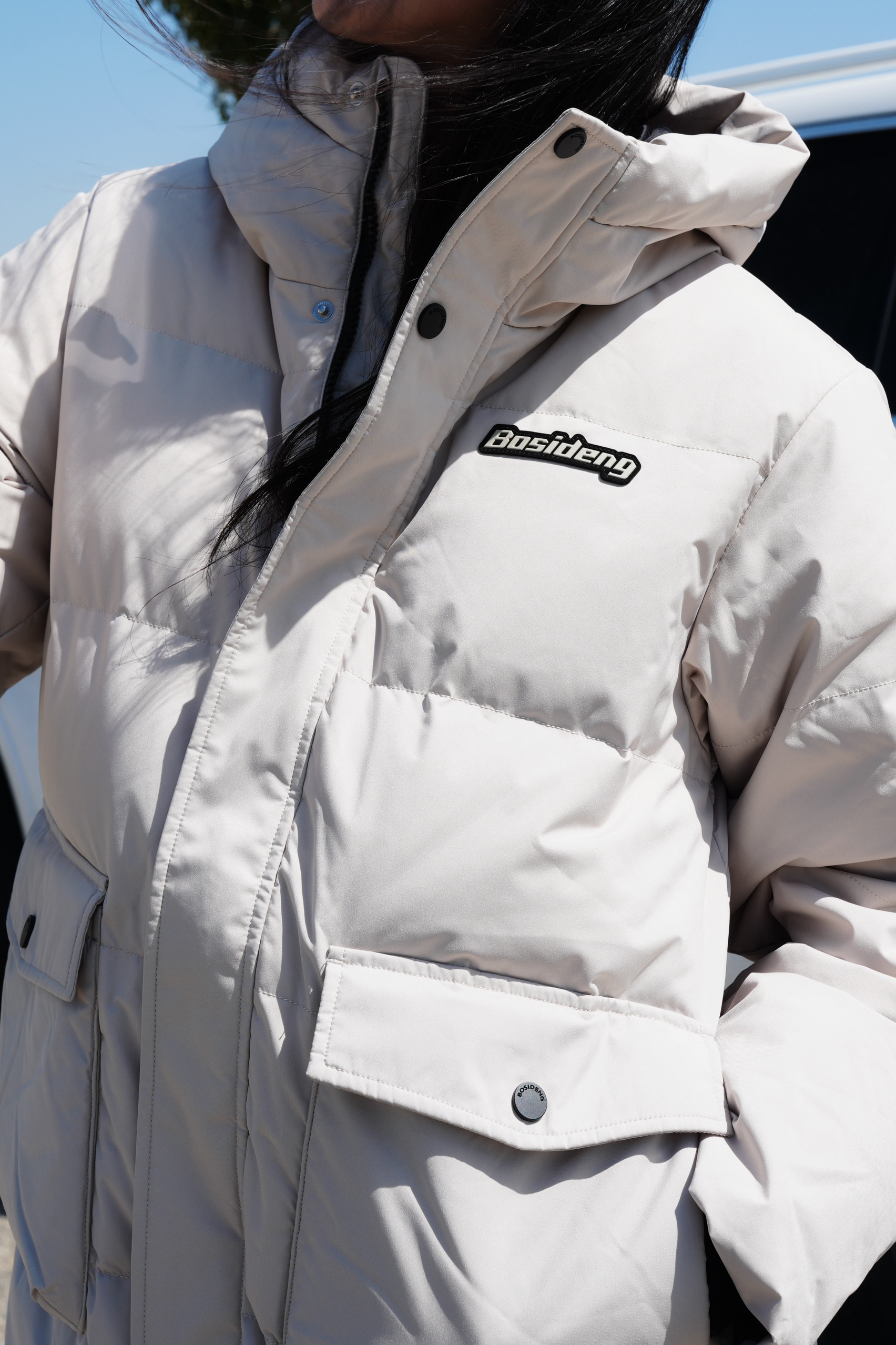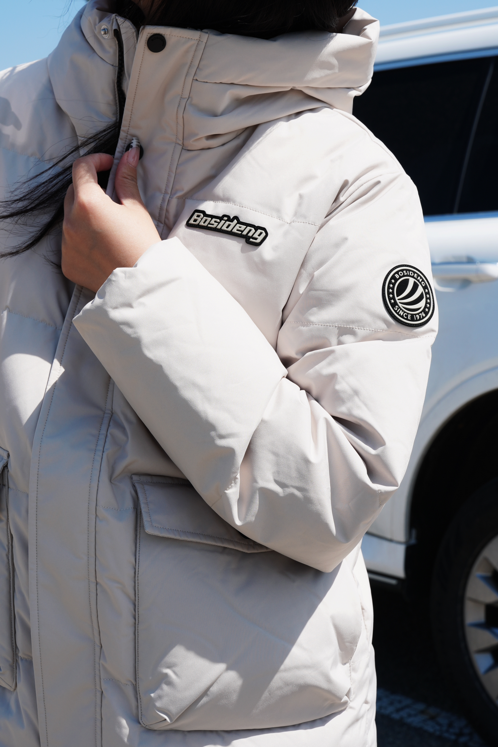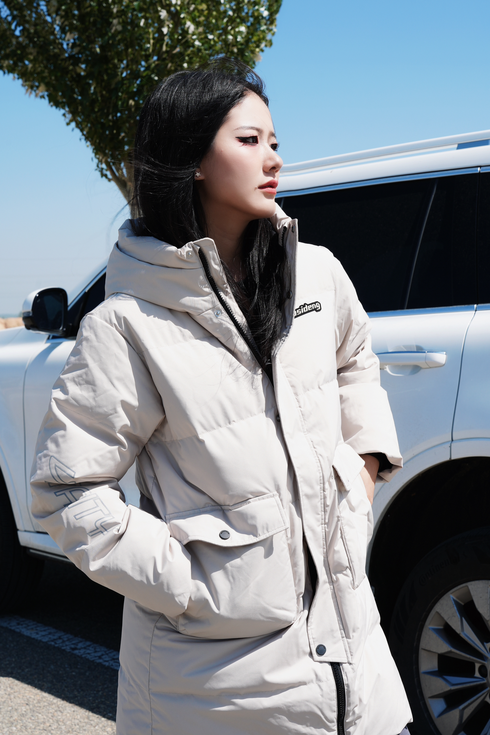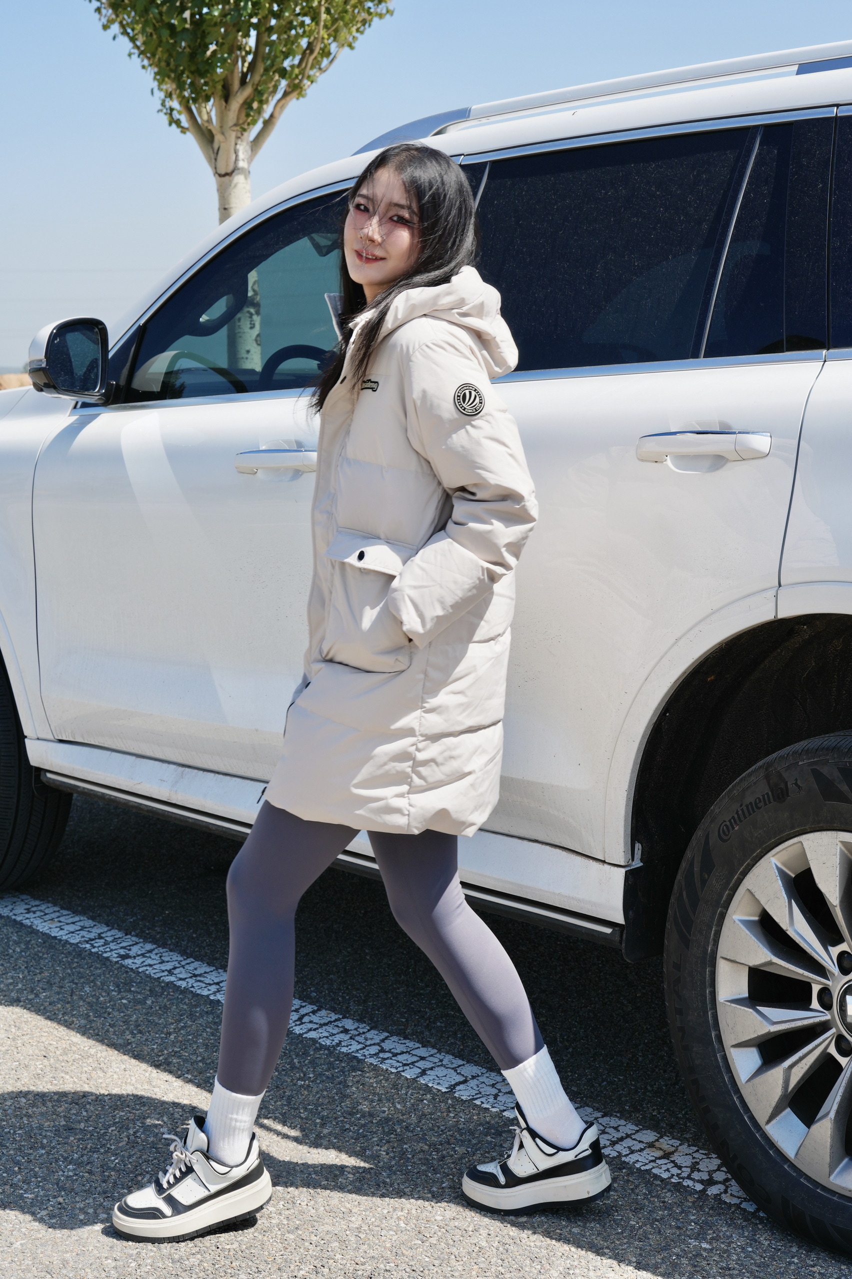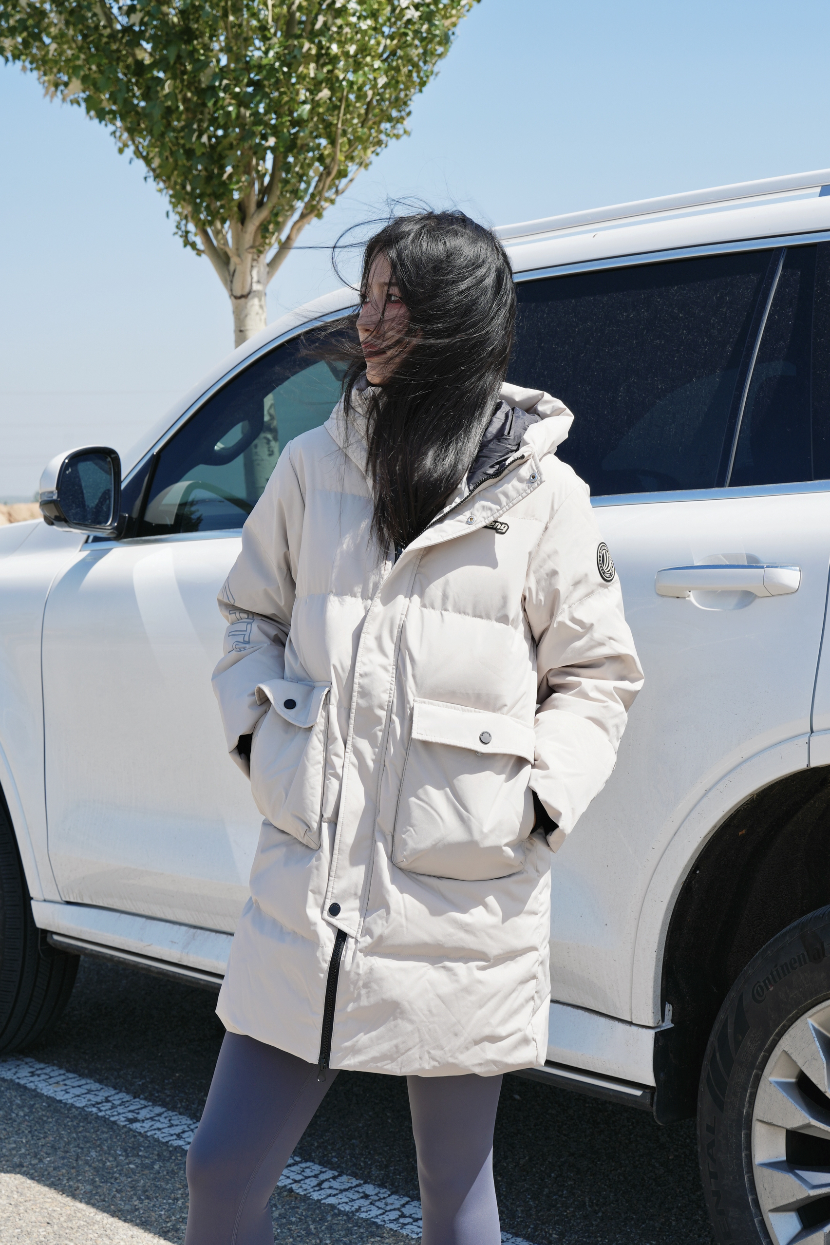 中长款羽绒服是衣橱必备款啦 米色系也是最百搭的配色 防风拉链满满安全感🌬️ 搭配灰色鲨鱼裤清新又好看 连帽拉链防风又保暖 黑白撞色板鞋也超级搭 是这个冬天会很爱的款咯~ ————
