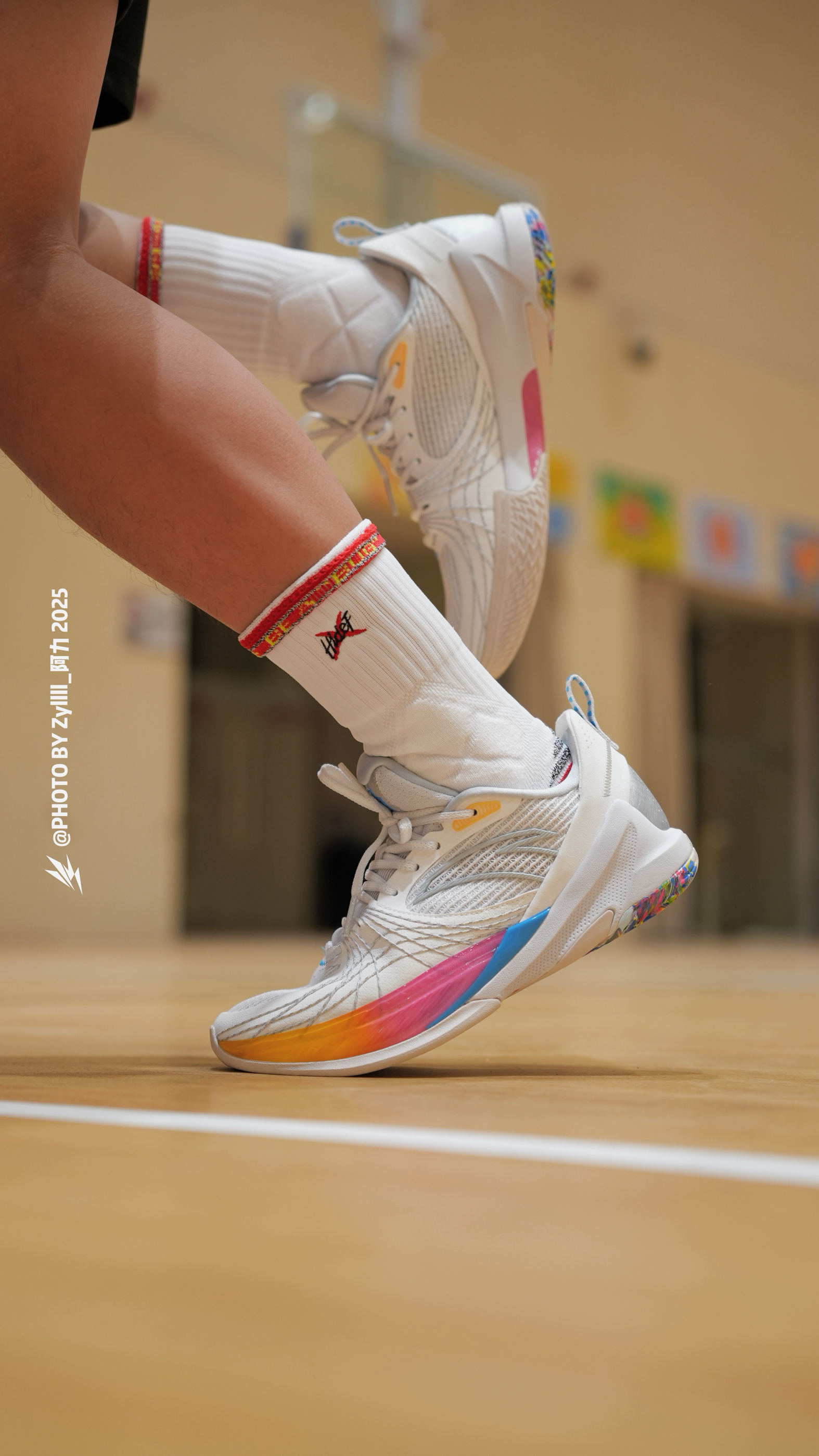 全掌氮科技的速决6你值得一试 白色的主色调搭配侧身黄粉蓝渐变的TPU,颜值的确还不错 而且鞋底后跟还有彩虹🌈配色,我觉得有点好看 中底偏韧弹,蹬地反馈还不错,大体重的缓震可能不够,适用于80kg以下 外底耐磨属于上乘,水泥克星的橡胶大底,防滑也还不错,指哪打哪,没有出现抓不住地的情况 主要是搭配 hidefxxx 家的逆虹篮球袜,颜值真的很在线,而且据说袜子采用了进口nano防滑纱,实际上脚脚感...