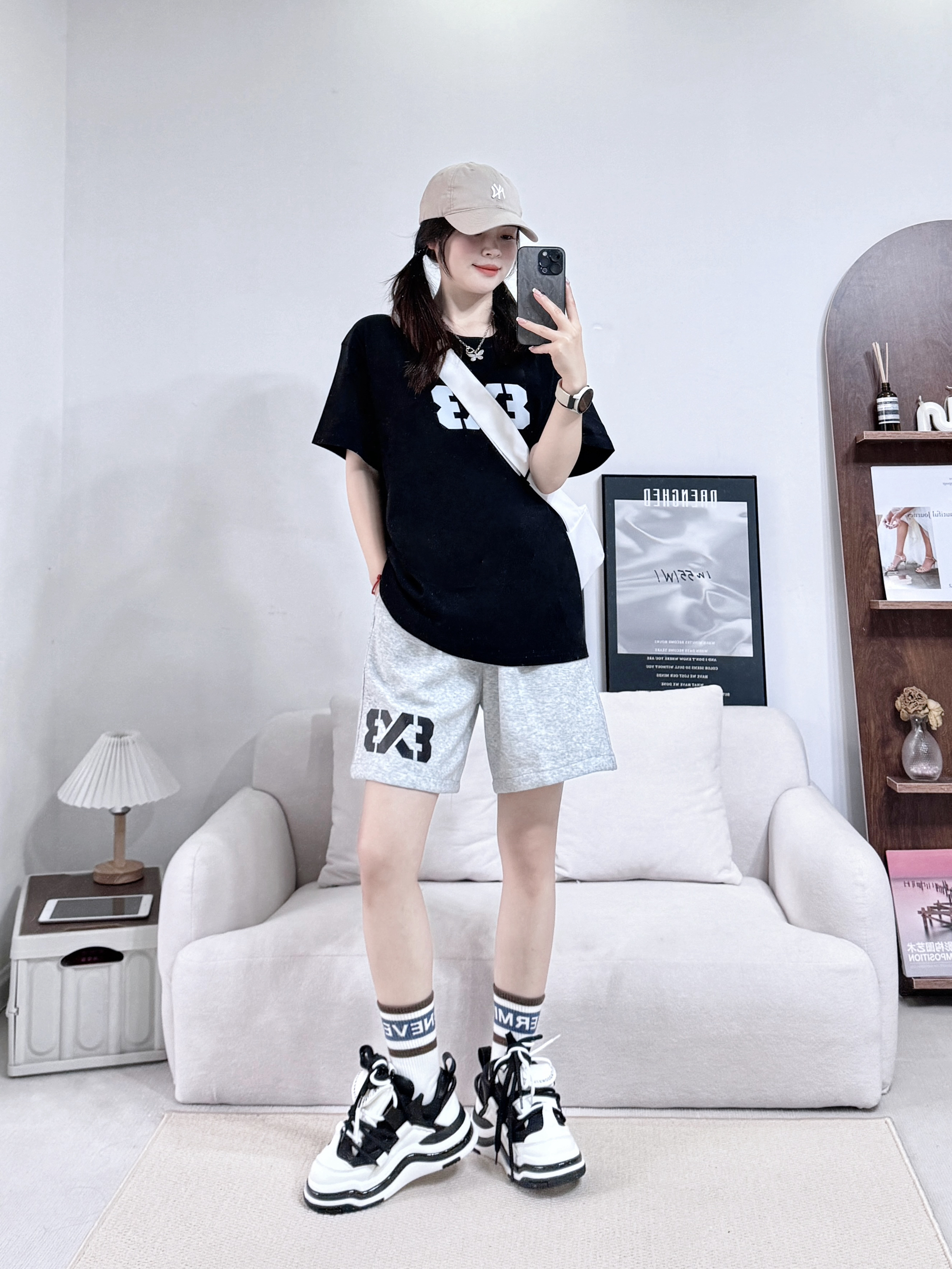 天气渐凉 短裤🩳已经穿不住了 刚好适合还能穿上短袖👕的初秋 弯刀裤👖的版型特别的百搭 搭配运动风🏃🏻♀️,老钱风💰,休闲风🚶🏻♂️,美式高街风👨🏻🎤 都hin好看👀