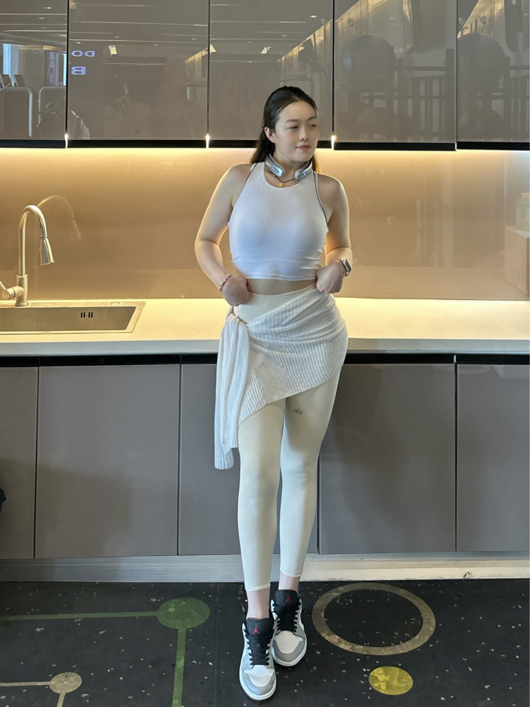 🧍♂️穿搭简介: (鞋款上脚感受,穿搭场景分享,风格分享) 👟球鞋:AJ 烟灰色 👖裤子:alo 瑜伽裤 真的很适合运动训练的穿搭✅