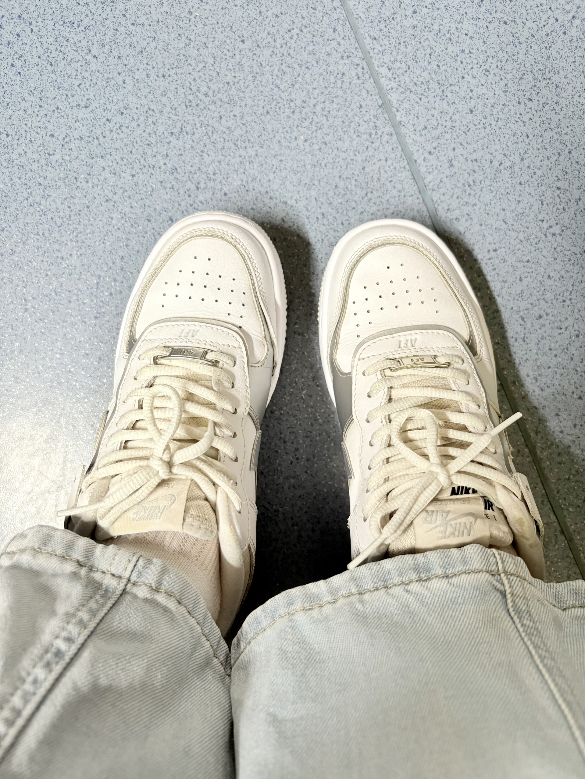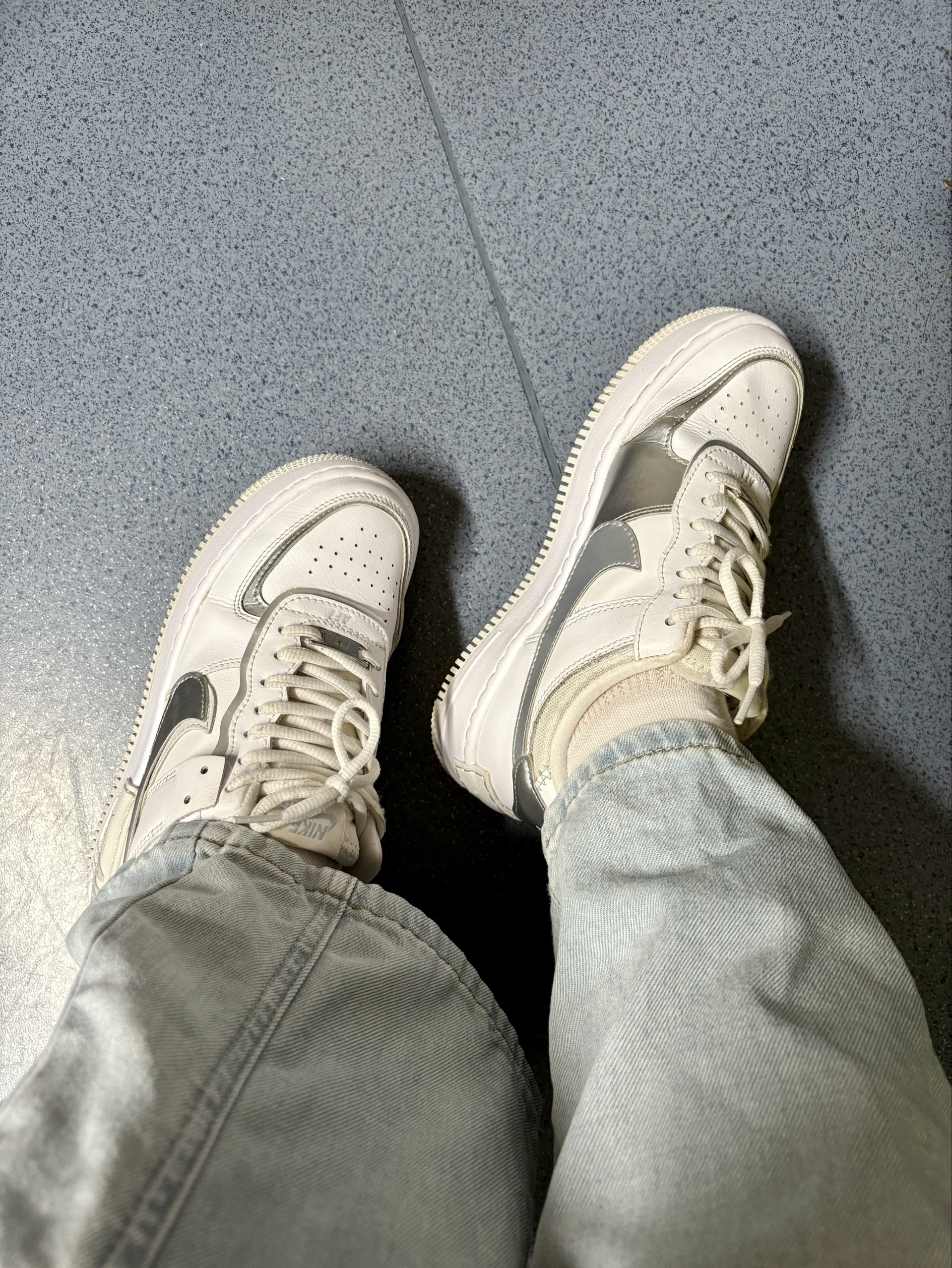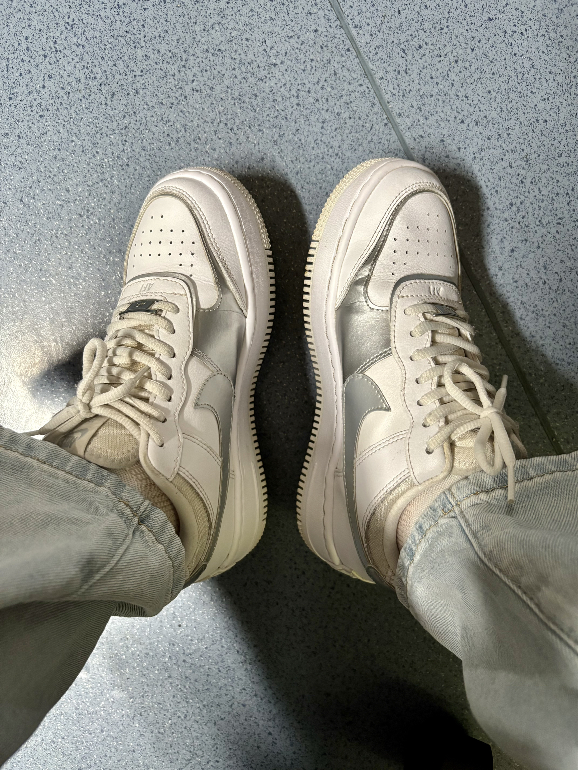 这双板鞋是我近些年来最满意的天双鞋子👟 AF shadow 相较于经典的空军一号,这双脚感更好更轻,就算是刚穿上也没有夹脚或者鞋底偏硬的问题😊 我的这双是白银配色,很好搭配衣服,休闲裤小裙子都可以😙 鞋面是皮革材质,很好打理,穿的时候不用特别小心,我的这双已经穿了三四年了,还是很新,除了鞋底有磨损外其他都还很好👌🏻 很喜欢这种性价比高,又可以穿很久的鞋子👍🏻