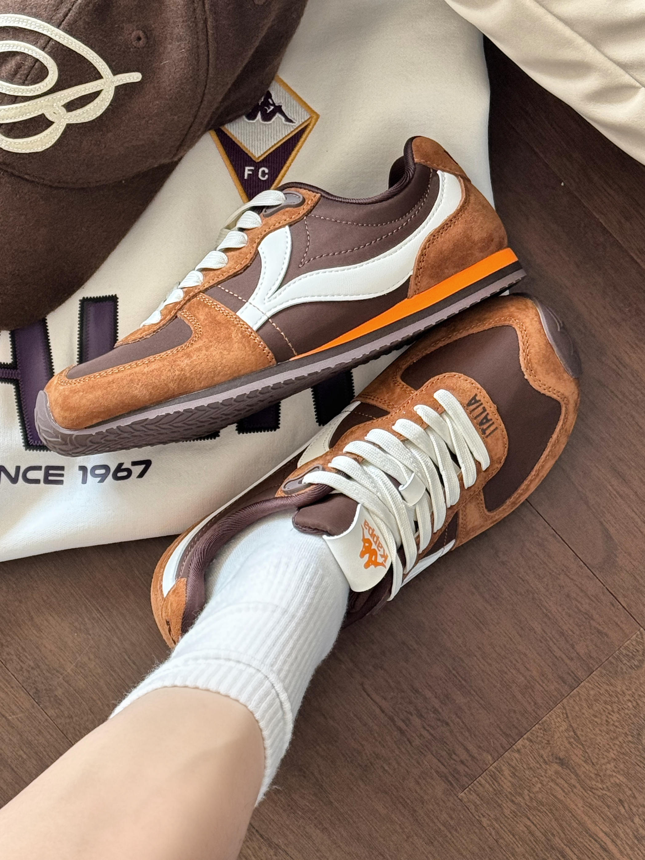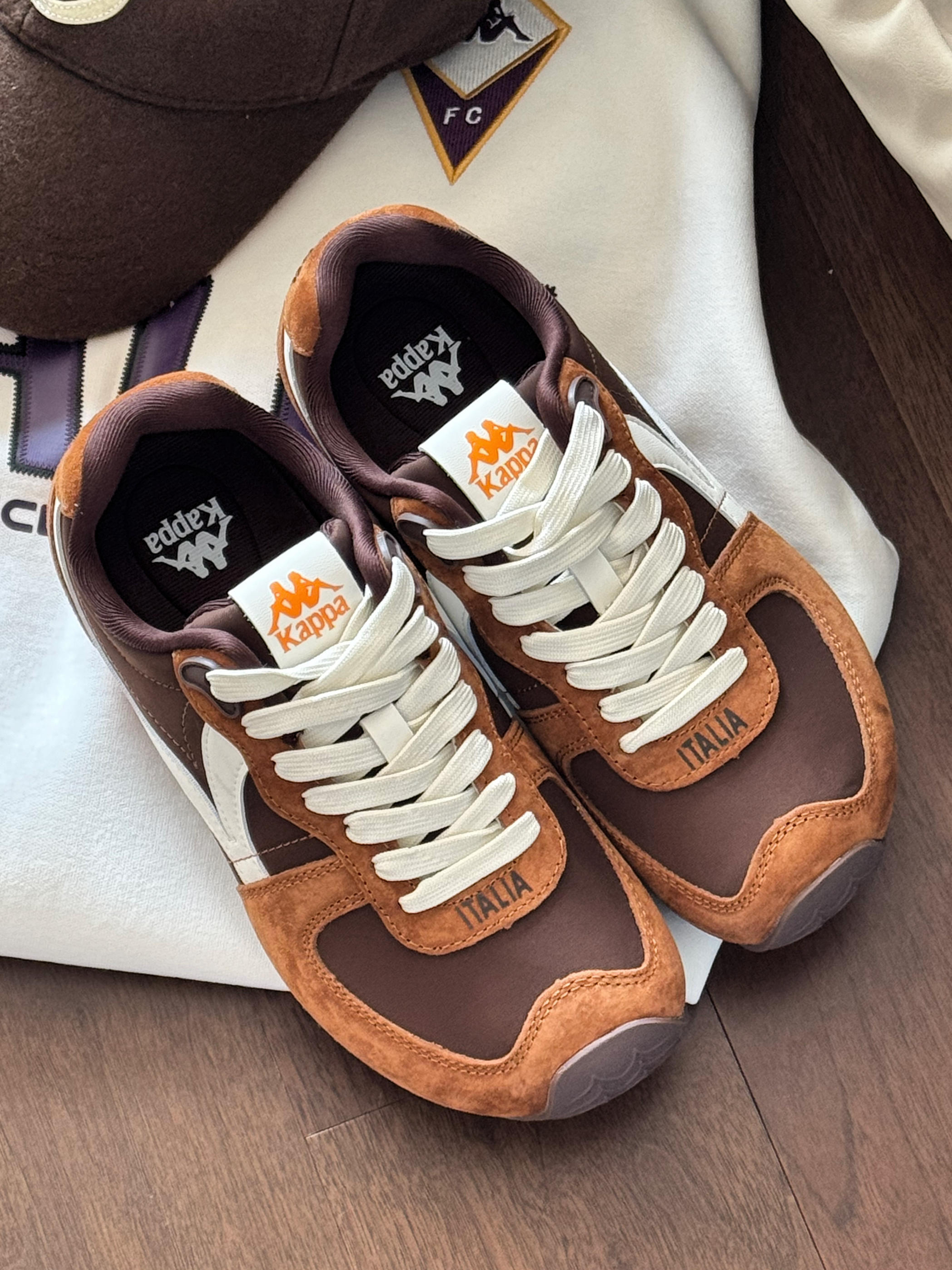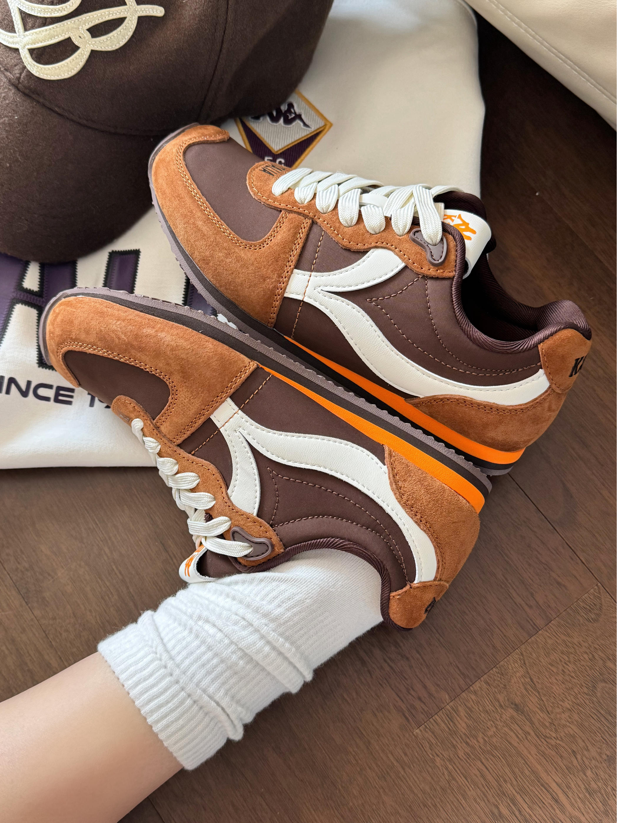 5G入秋的美拉德风穿搭,从这双鞋开始!🍂 Kappa漫游记这个配色简直就是一块行走的糖炒栗子派🌰! 圆乎乎的鞋头超可爱,暴走一天都不累脚! 这双早秋复古感直接拿捏👟