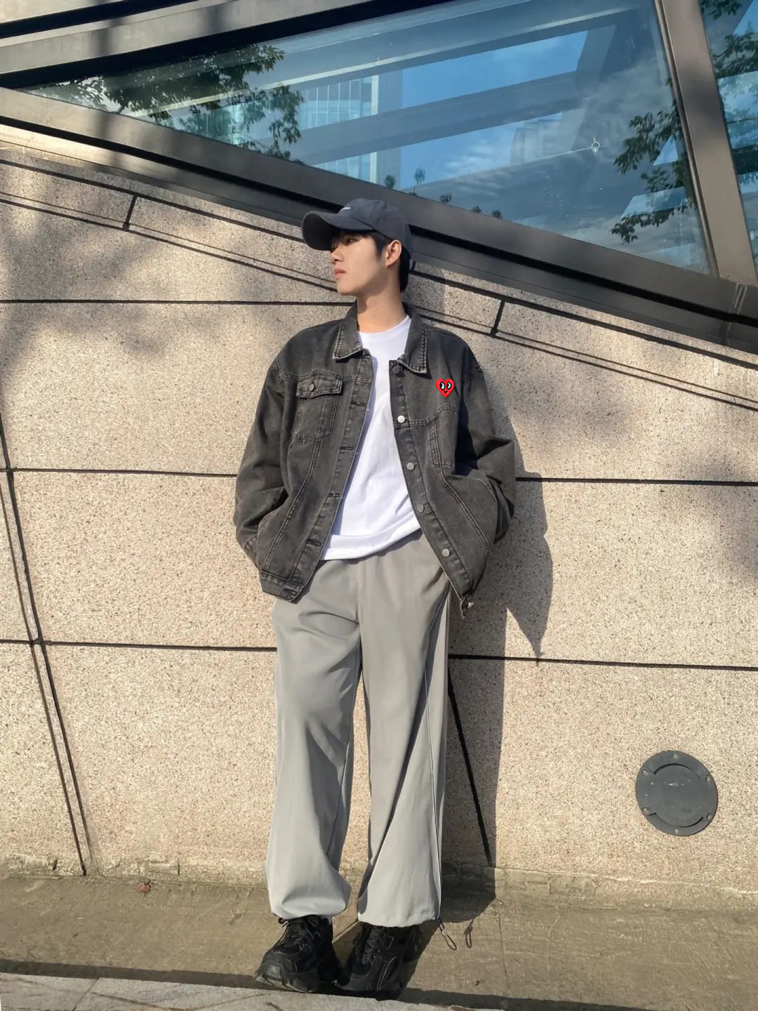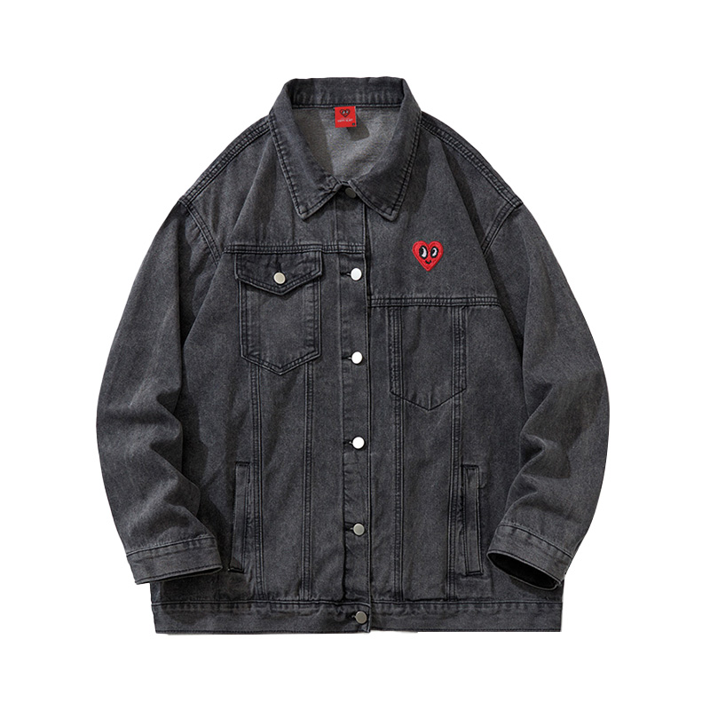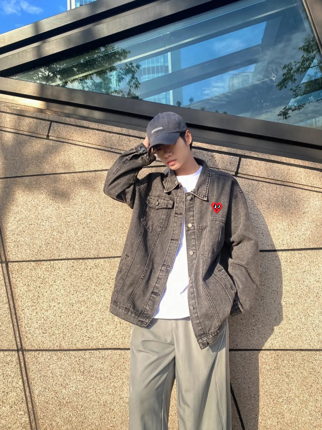 被这件查尔斯桃心复古水洗牛仔夹克圈粉了!经典深灰色百搭到尖叫,不管是搭 T 恤、卫衣还是休闲裤,都能轻松 hold 住~