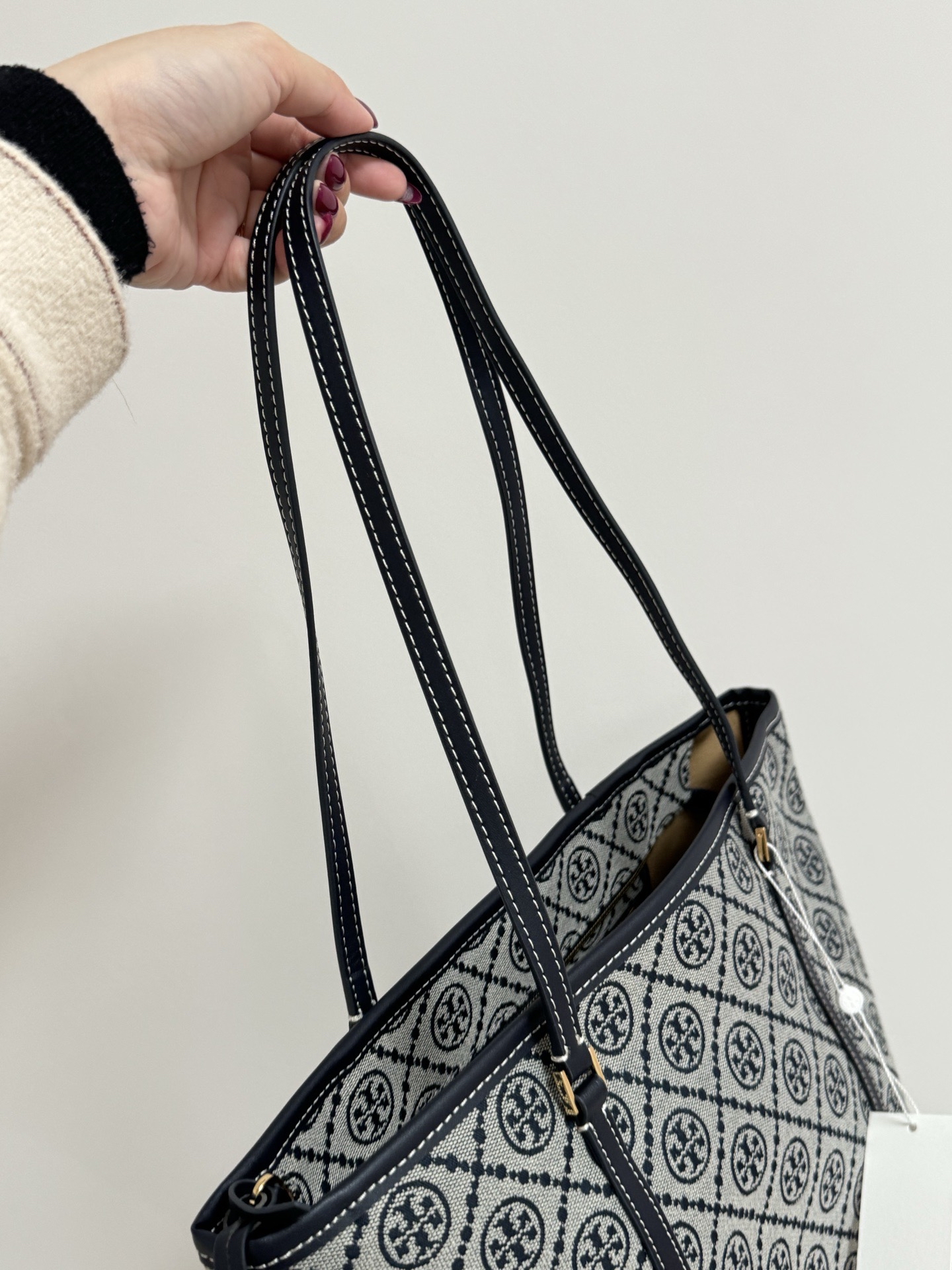 实物比我拍的好太多!我亲测实物是让你越摸越喜欢的!照片是表达不出来的!真正知道它昂贵的地方也是在的外表,TB经典刺绣,复古又大气,还是最实用的托特!