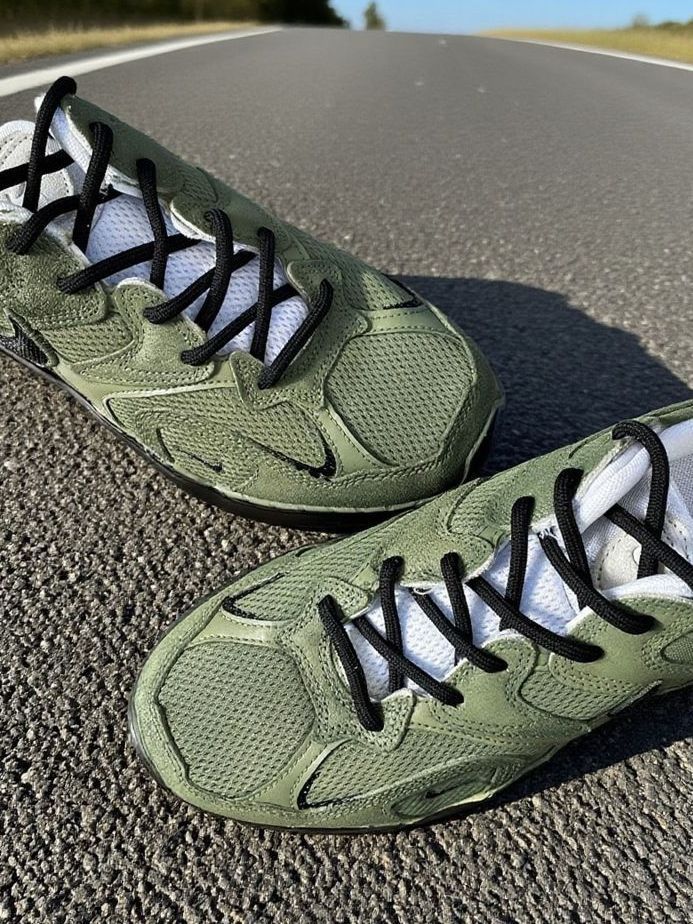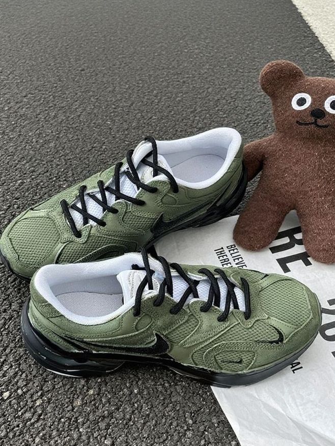 这双橄榄绿运动鞋,简约中带着复古感 网面透气,麂皮拼接,颜色搭配很舒服 穿起来脚感一般,不算特别软,但胜在百搭 日常出门随便套上就走,超方便 像我这种懒人太爱了~