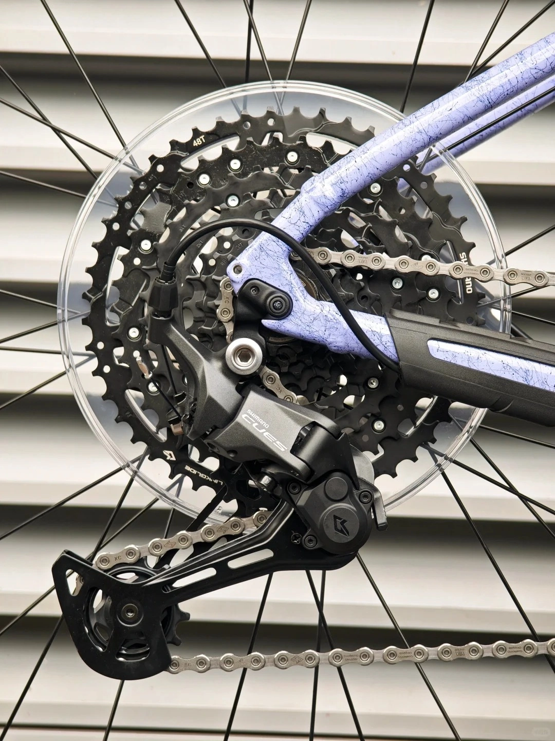 入了这辆山地车啦😎!薰衣草紫搭配冰裂纹的涂装超吸睛,阳光下超美✨。铝合金车架轻,ROCKSHOX前叉减震牛。内走线整洁,禧玛诺传动灵敏。不足是价格稍高,但性能颜值在线,值了! 💖
