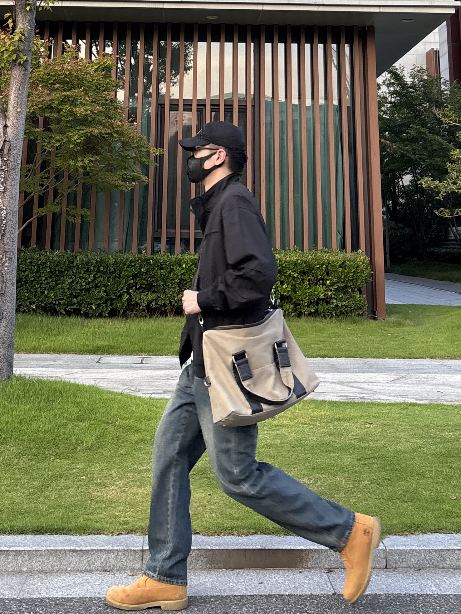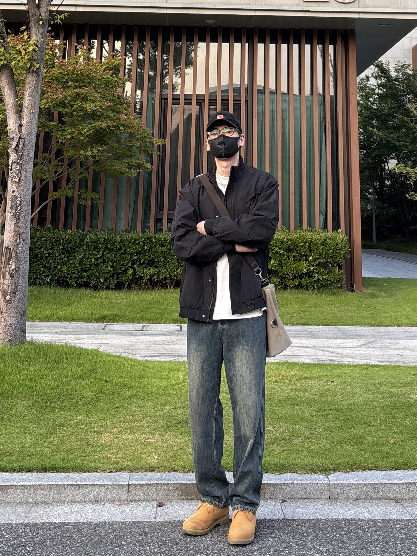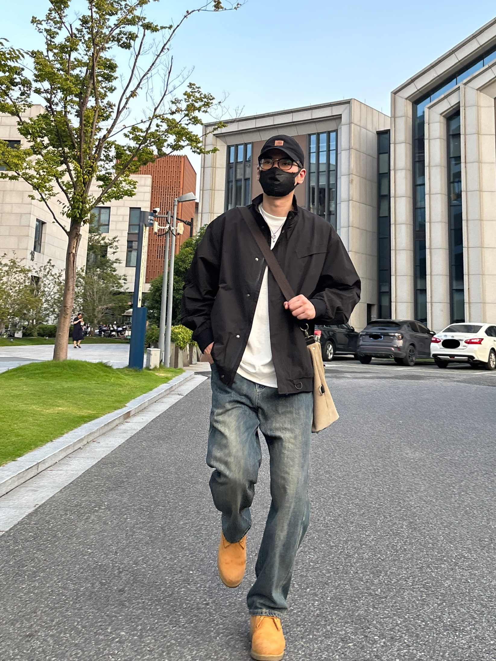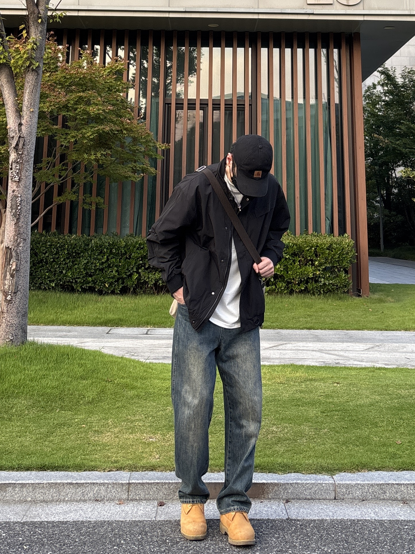 今天这套上衣穿了一件黑色宽松阔版防风立领工装夹克 ⬇️ 裤子选择不挑腿型的蓝色直筒水洗复古牛仔裤 ⬇️ 鞋子上脚硬汉必备的timberland工装靴 ⬇️ 最后背上卡其色帆布拼接手提斜挎包 - 今日搭配 衣服裤子:NICE LILI 鞋子:timberland