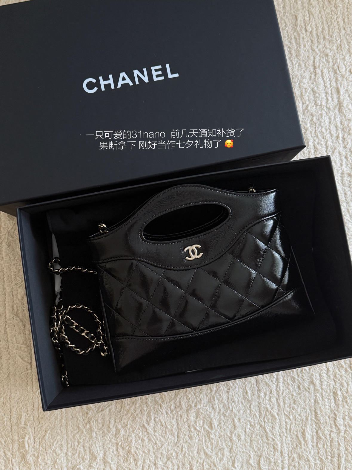 本篇笔记关联了Chanel/香奈儿 鹅卵石清新留香紧肤护手霜 柔嫩肌肤补水滋养送女生礼物 清爽型、【邓为同款】Dior/迪奥 经典花纹多用护手霜 滋润修护保湿送女生礼物 基础款、Chanel/香奈儿 31bag 24S Nano 迷你 长形横版抛光小羊皮菱格穿链金扣链条单肩斜挎手提包 黑色等商品,为用户提供真实的使用体验和购买参考。