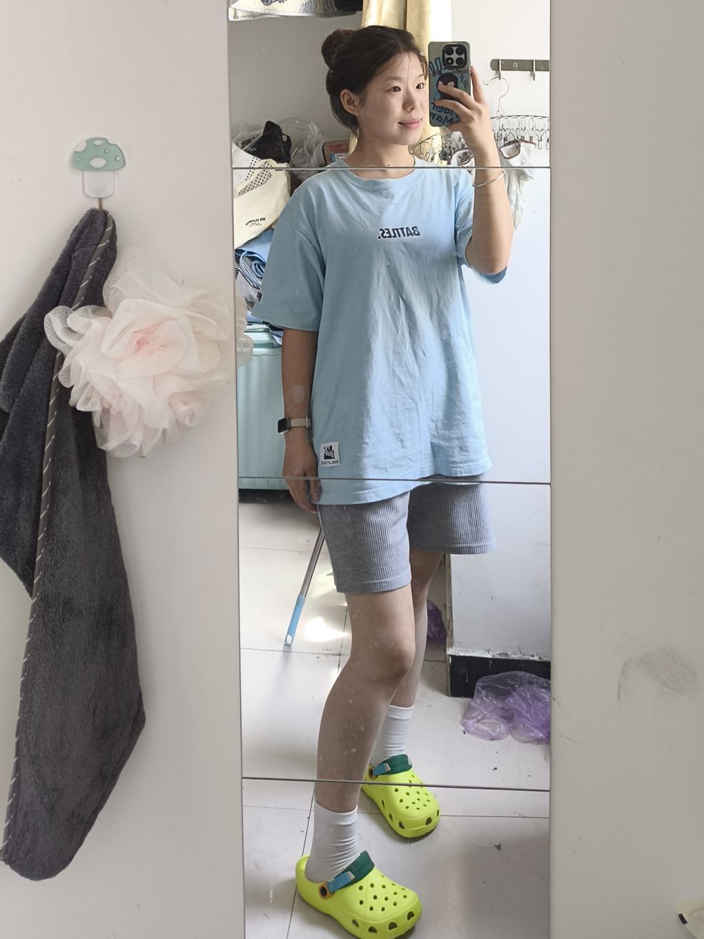 Battle这个短袖颜色好几种,我身上的是天蓝色,颜色非常适合夏天很清新,面料纯棉面料透气不闷特别好看特别舒服!