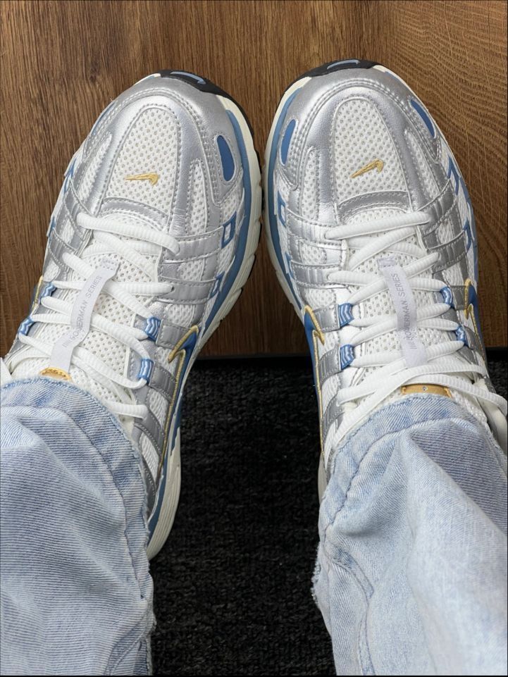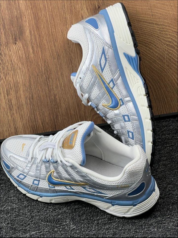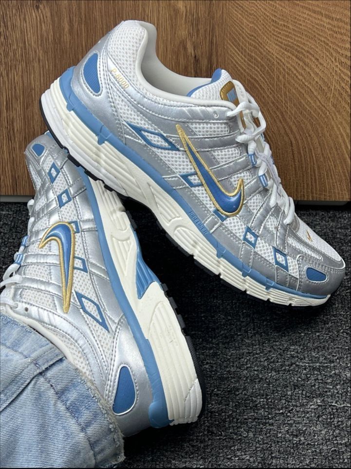 这双Nike P-6000,堪称穿梭城市的“银蓝闪电”。外观上,银蓝主色调搭配金色勾标,复古又吸睛,低帮设计利落清爽。 💜💜 穿搭方面,简直是“百搭小能手”。走复古风,配做旧牛仔外套与直筒裤,瞬间拉满年代感;走休闲风,搭运动卫衣和束脚裤,活力满满;通勤时,和简约西装裤、衬衫组合,又添几分干练。 💙💙 材质上,鞋面采用透气网布,脚感轻盈不闷汗,大热天也能保持脚部干爽;鞋底的缓震材质很给力,像我每...