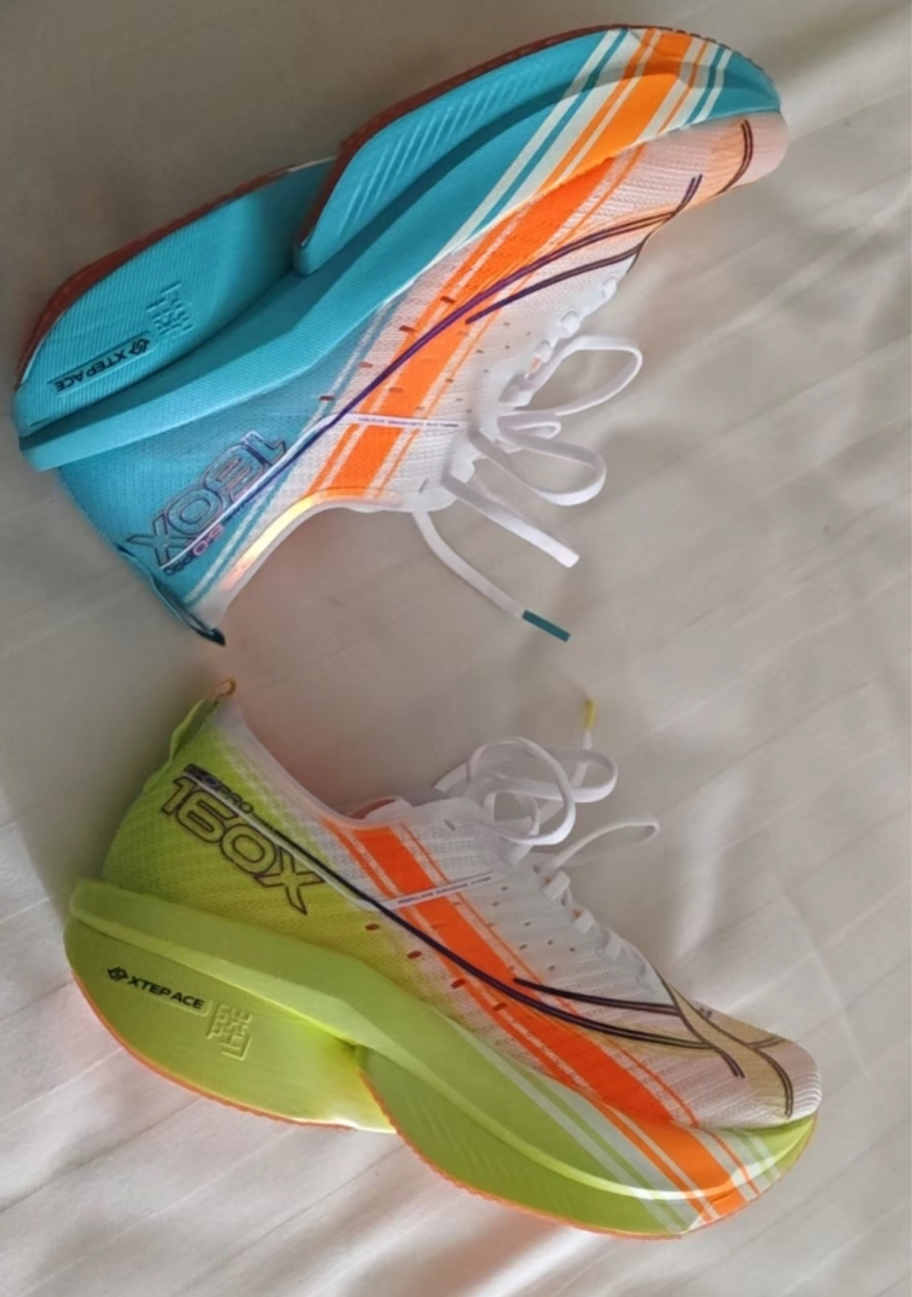 最近6张入手了特步160X6.0Pro,颜色绚丽多彩十分耐看💖,且其脚感软弹,深受马拉松跑者的喜爱🤩