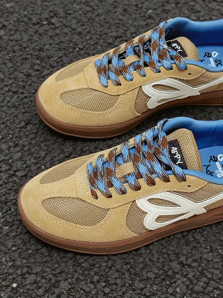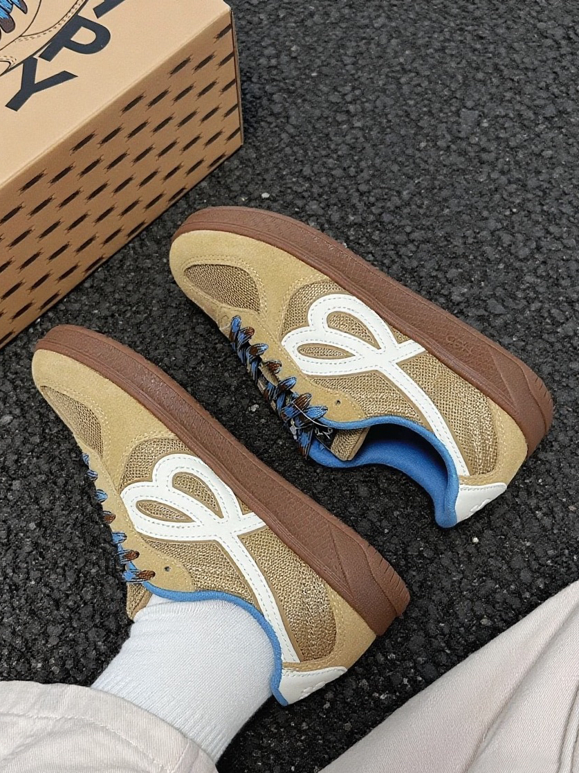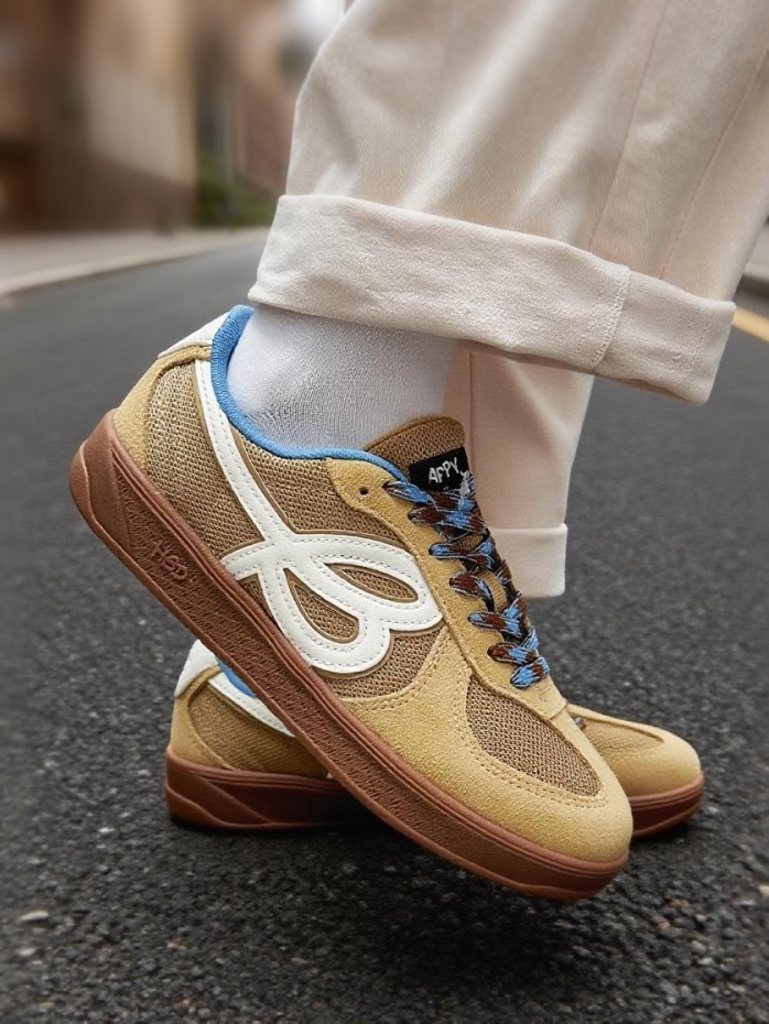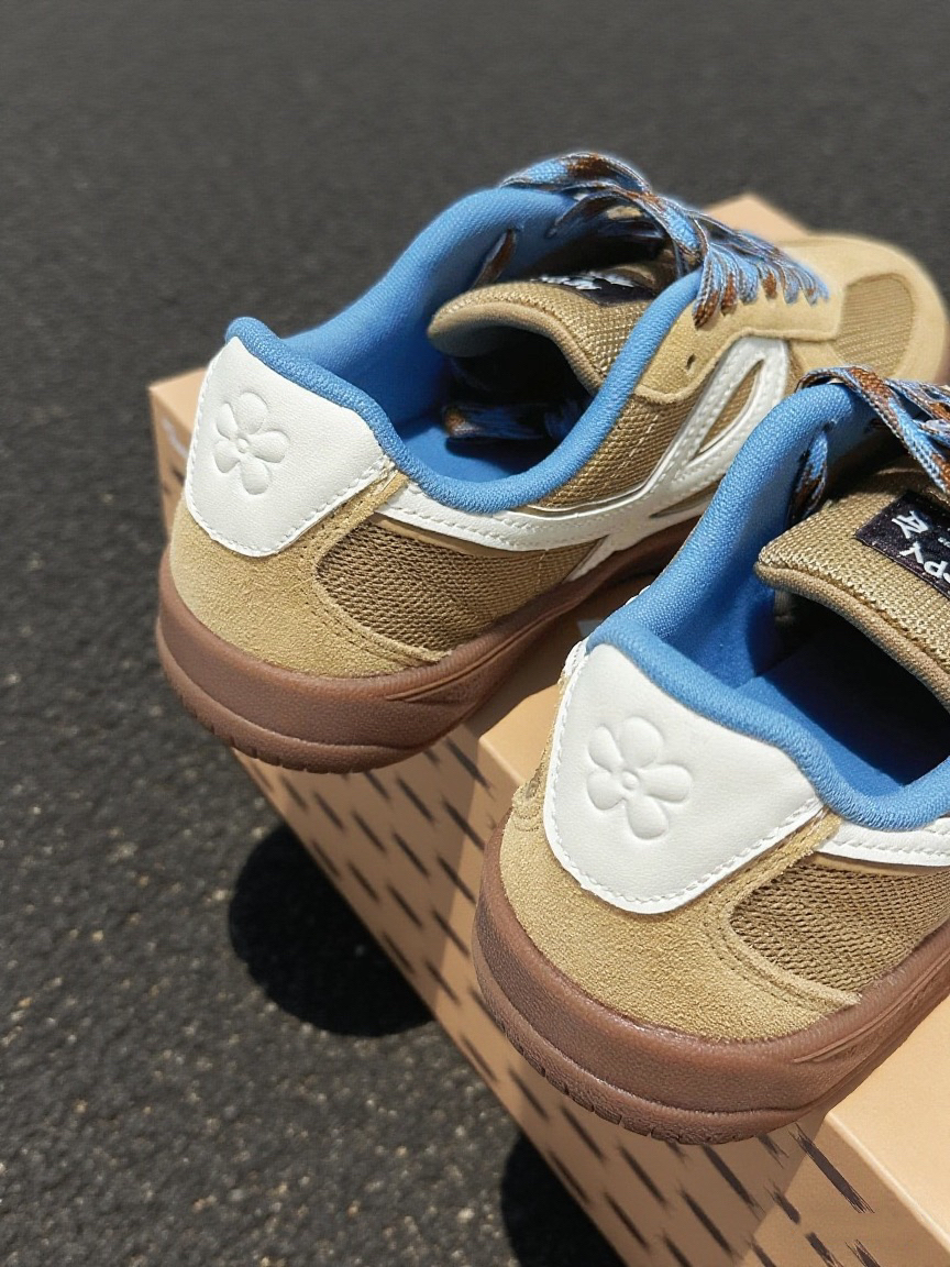 最近挖到双平价德训鞋,和大家分享下试穿体验🫣 🤫到手就穿它出门啦,网面设计太懂事儿了,我这种汗脚也不怕闷出汗了~配色是清爽卡其+蓝,搭白裤子、短裤都好好看! 鞋底软乎乎的,重点是居然还增高了4公分!小个子救星!🤭鞋带设计很有意思,自带复古感,德训鞋的经典元素全在线,又潮又好穿!