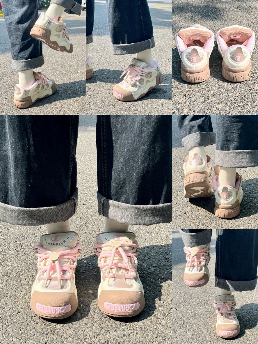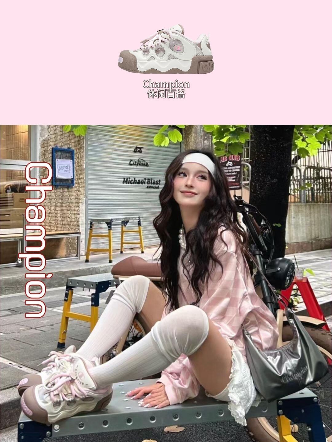 家人们!Champion 又来放大招啦🥳这次的新鞋款,直接戳中甜妹心巴~💗 瞧瞧这设计,奶白与柔粉的配色,简直是为甜妹量身定制🎀!鞋身的镂空元素,不仅让整体造型更具层次感,还自带透气属性,就算是闷热的天气,双脚也能自在呼吸~👟 再看这鞋底,波浪形的厚底设计,不仅能轻松打造出“大长腿”效果,走起路来更是像踩在☁️上一样柔软舒适,长时间行走也不会觉得累脚。 不管是搭配图中这种甜系卫衣+百褶裙的组...