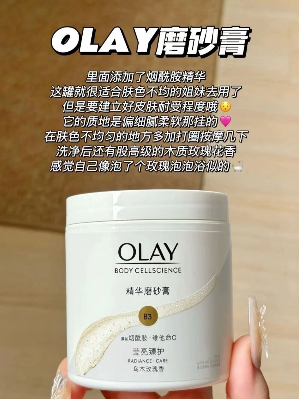 本篇笔记关联了Olay/玉兰油 去角质磨砂养肤超亮身体钻光磨砂膏 焕亮肌肤 温和 莹亮二合一 乌木玫瑰香 莹亮臻护、chillmore 角鲨烷香氛磨砂膏 200g 改善粗糙 日落柚海、sabon 芒果奇异果身体磨砂膏 嫩滑肌肤去死皮补水 白茶等商品,为用户提供真实的使用体验和购买参考。