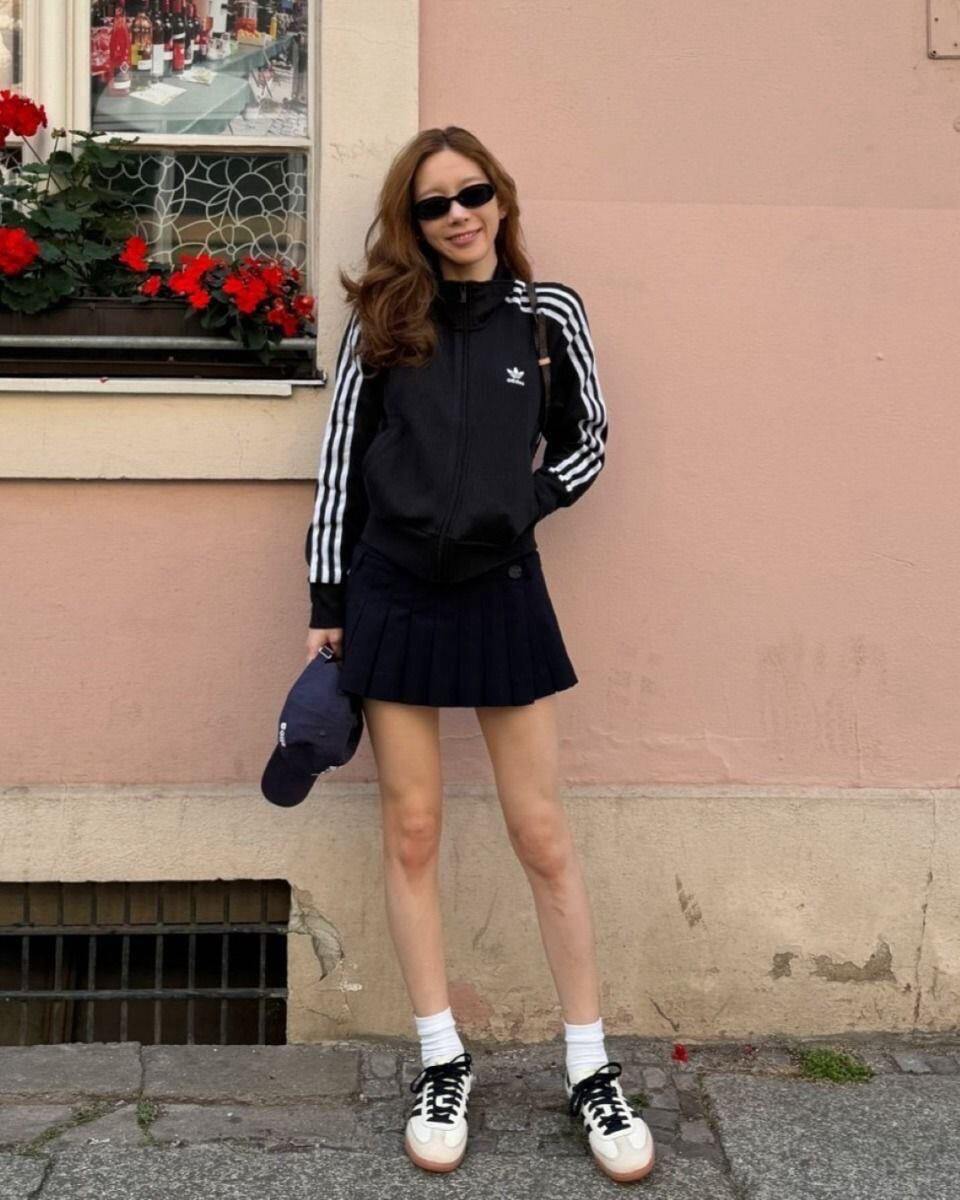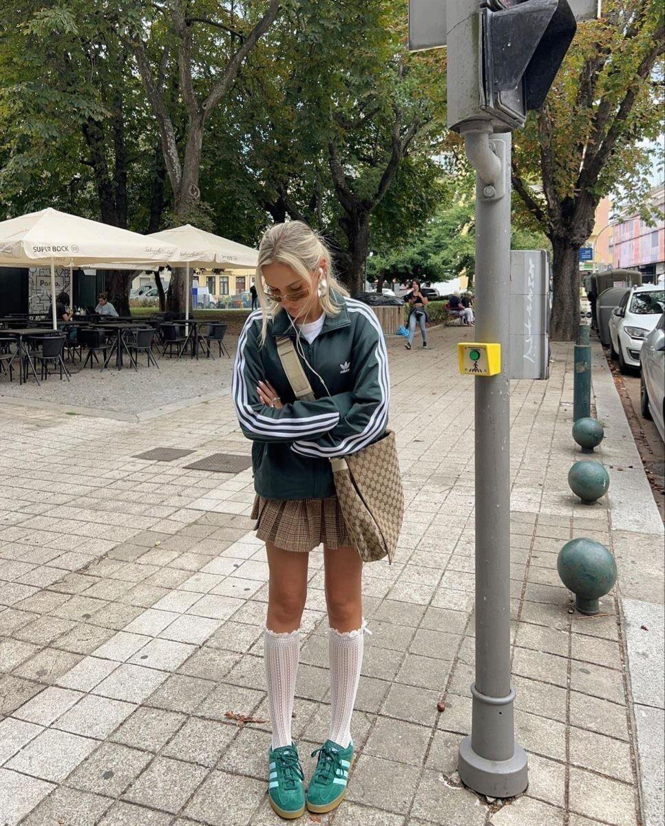 被adidas🍁狠狠拿捏的秋天来咯,不管是街头酷飒风、学院清新感,还是甜妹松弛范,都能全搞定! ✅墨绿+格纹裙:配长袜和绿鞋,文艺又清新,走在路上像日剧里的元气女主,耳机一戴氛围感拉满🎧 ✅黑色+百褶裙:墨镜+棒球帽一搭,韩系酷学姐上线,走路带风的拽姐感直接拿捏,拍照超出片🕶️ ✅棕色+卡其裙:拿着甜甜圈甜笑,甜妹氛围拉满,复古鞋呼应外套条纹,细节控狂喜🍩 ✅绿色+牛仔裤:休闲松弛感yyds,随便...